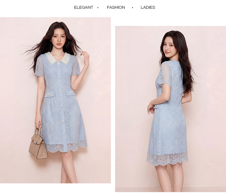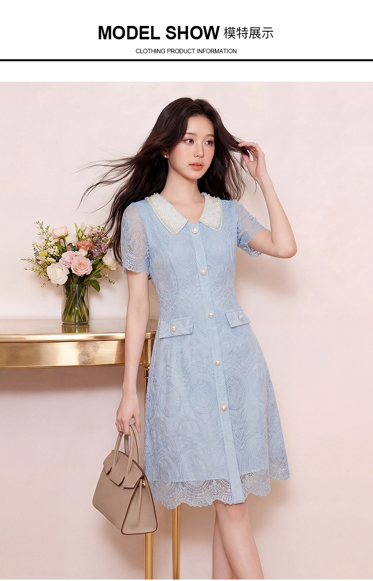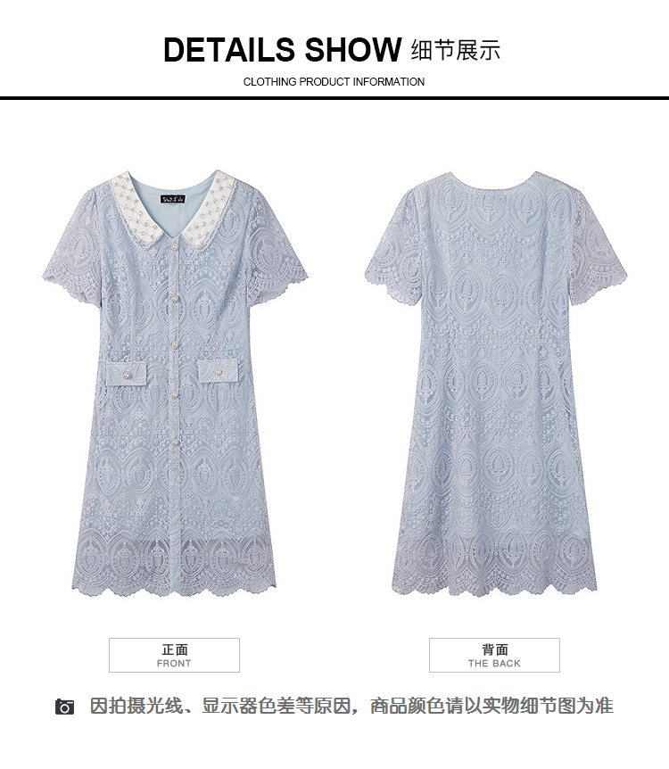 奢姿大码女装2026夏季胖妹妹时尚蕾丝珍珠领连衣裙气质显瘦长裙9962894509