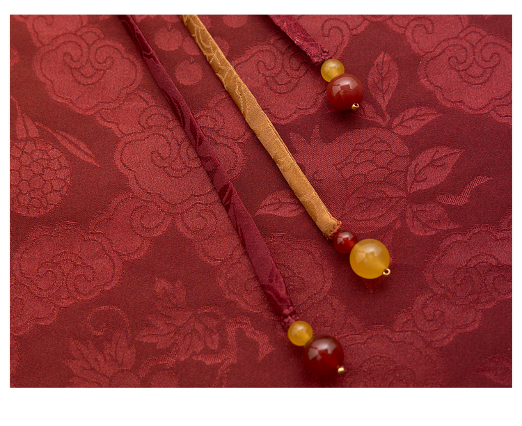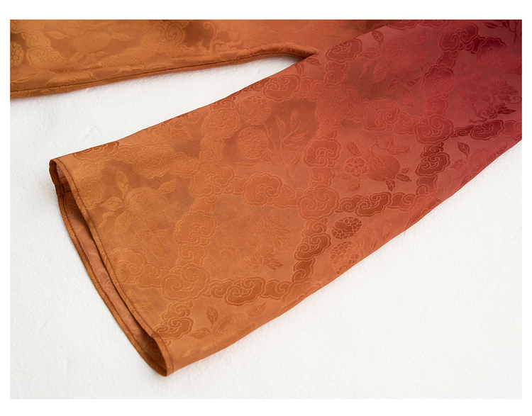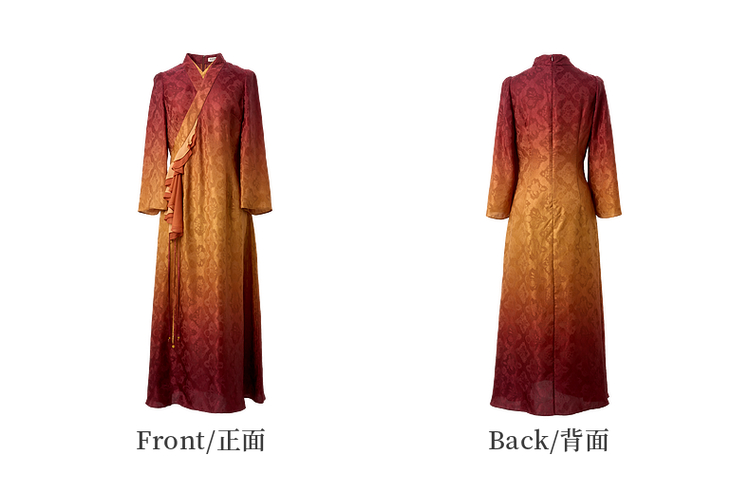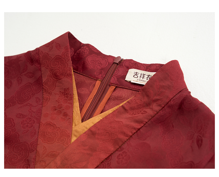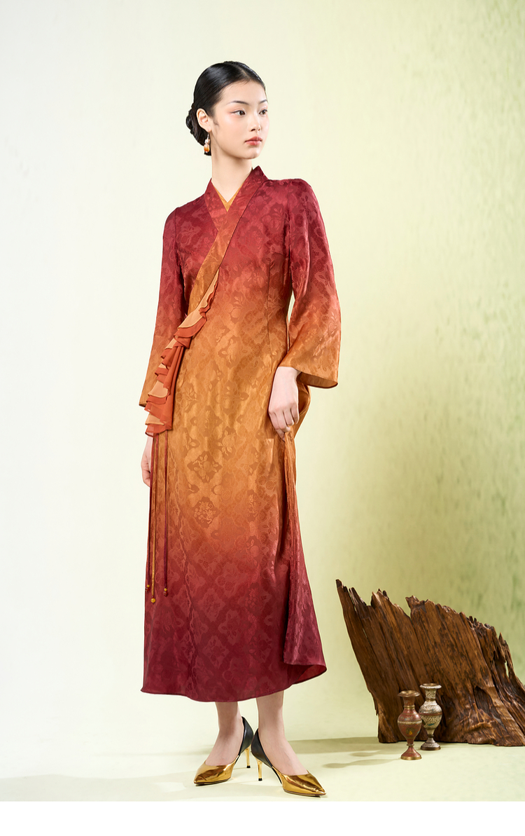 吉祥衣家新中式国风桑蚕丝气质修身女装绯云舒卷真丝连衣裙