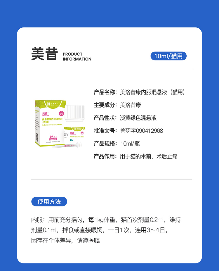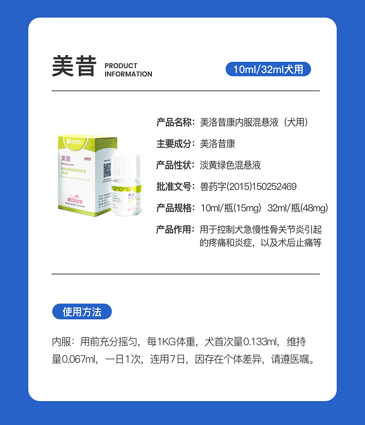 汉维宠仕美昔 美洛昔康内服混悬液10ml 32ml狗犬猫专用止疼止痛药