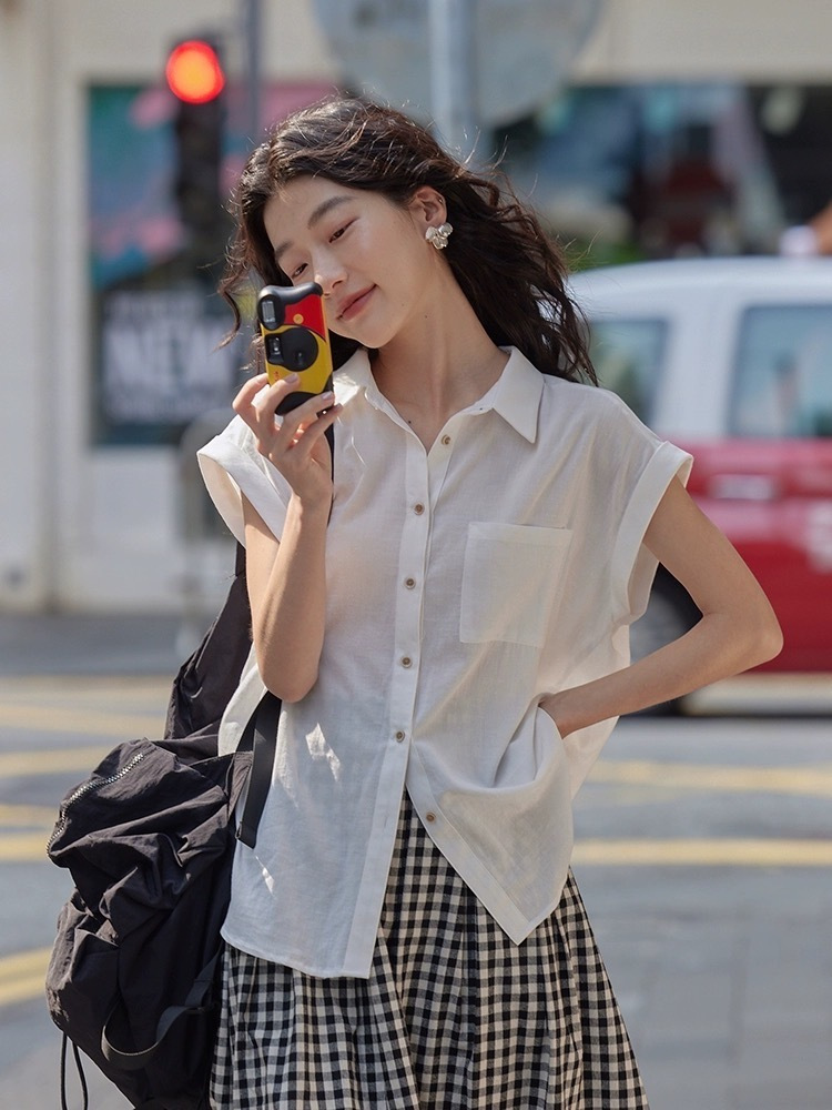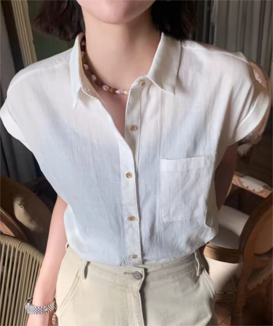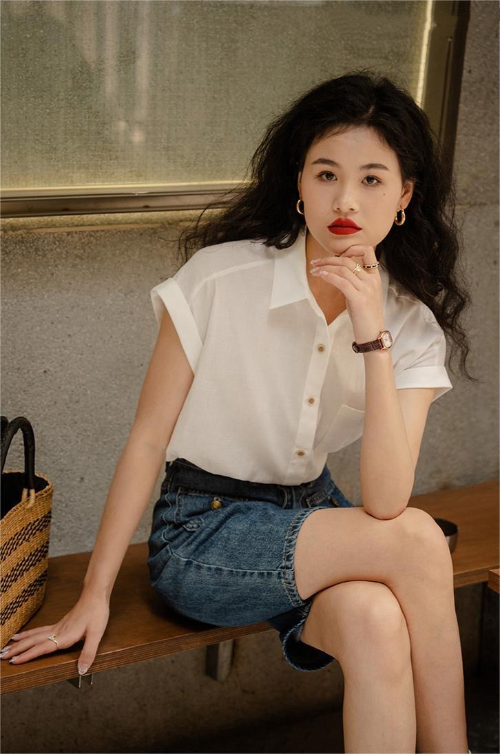 🌞夏日少女松弛感穿搭【 千吉娜Chigina.夏季新款短袖Polo领小衬衫 】好穿不闷热!