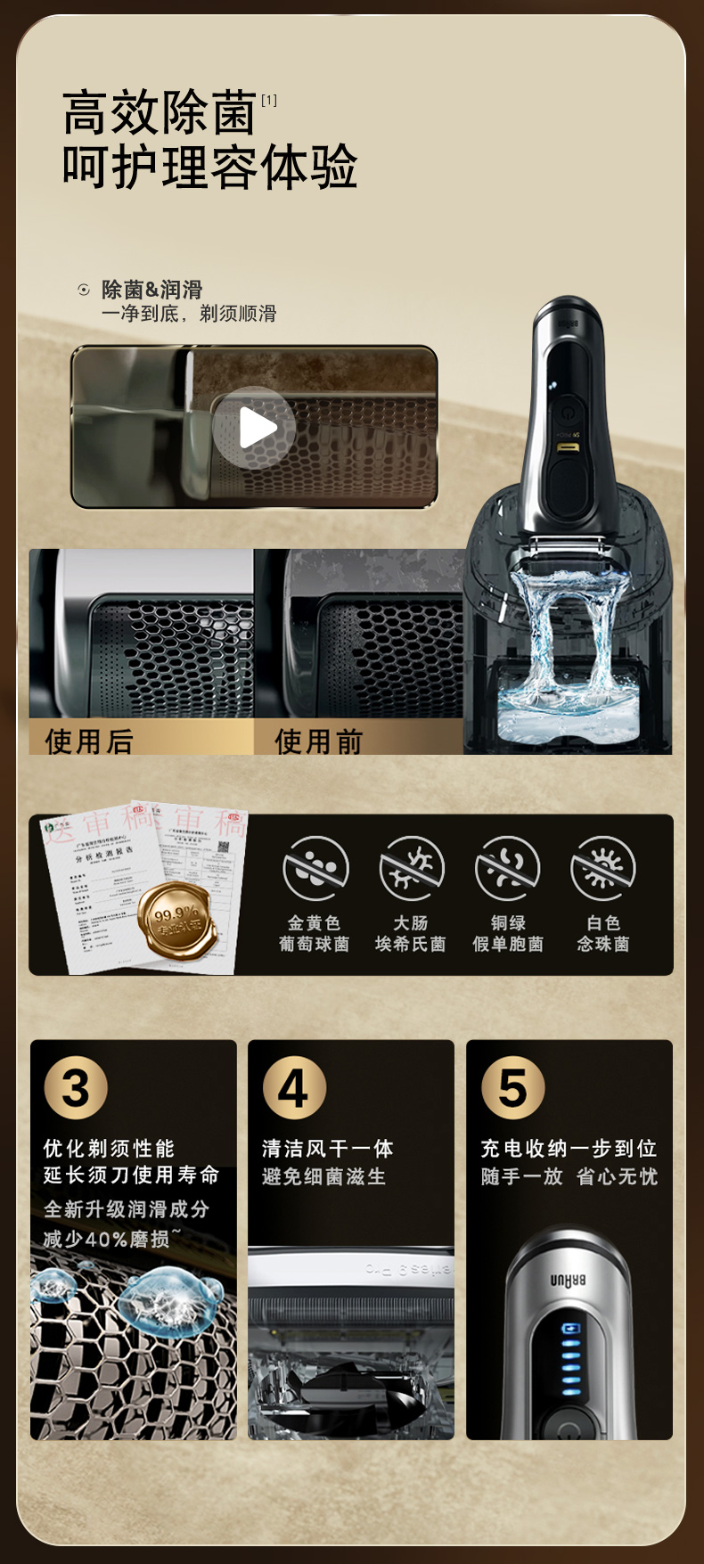Braun博朗新9系9697cc电动剃须刀 往复式便携刮胡刀