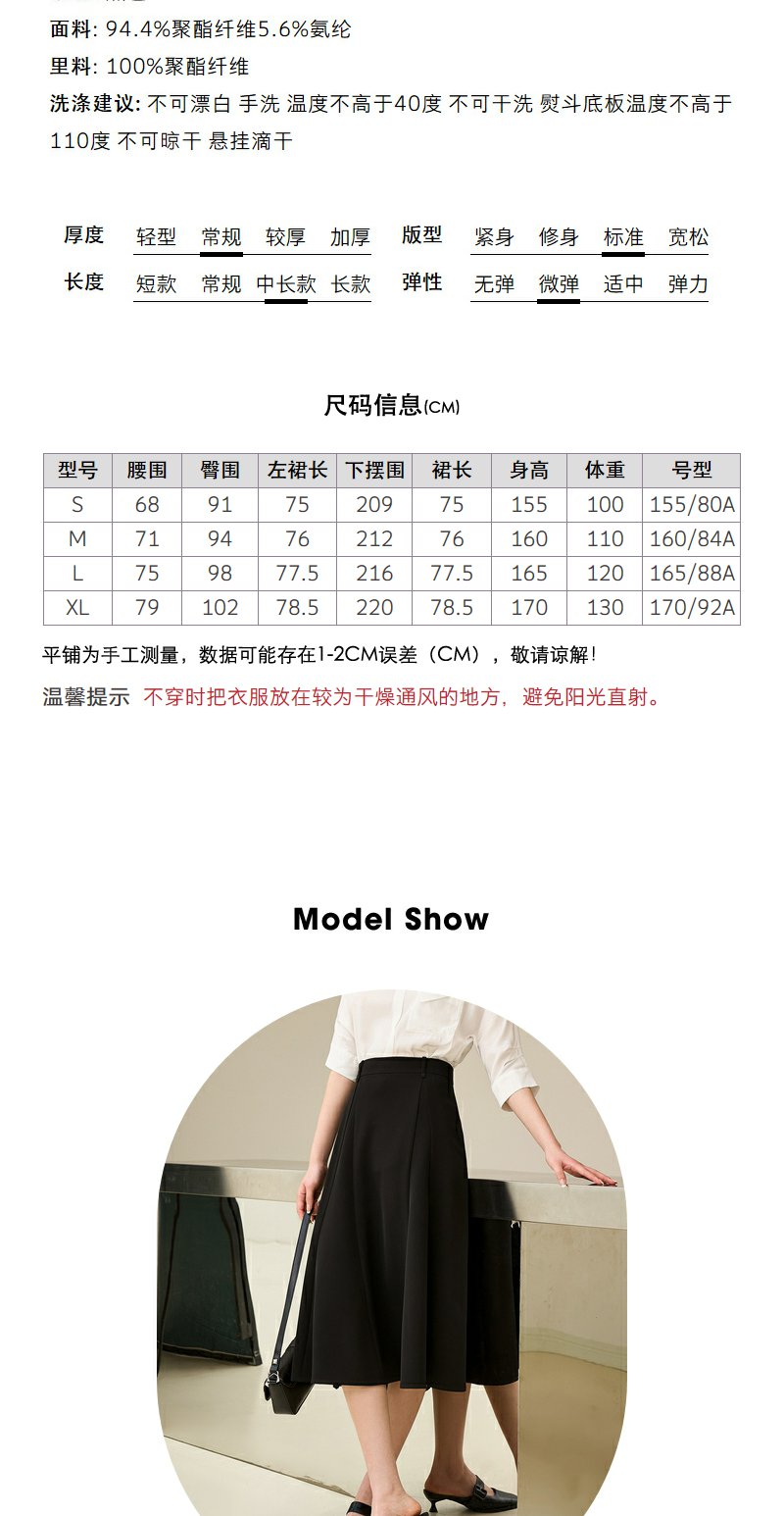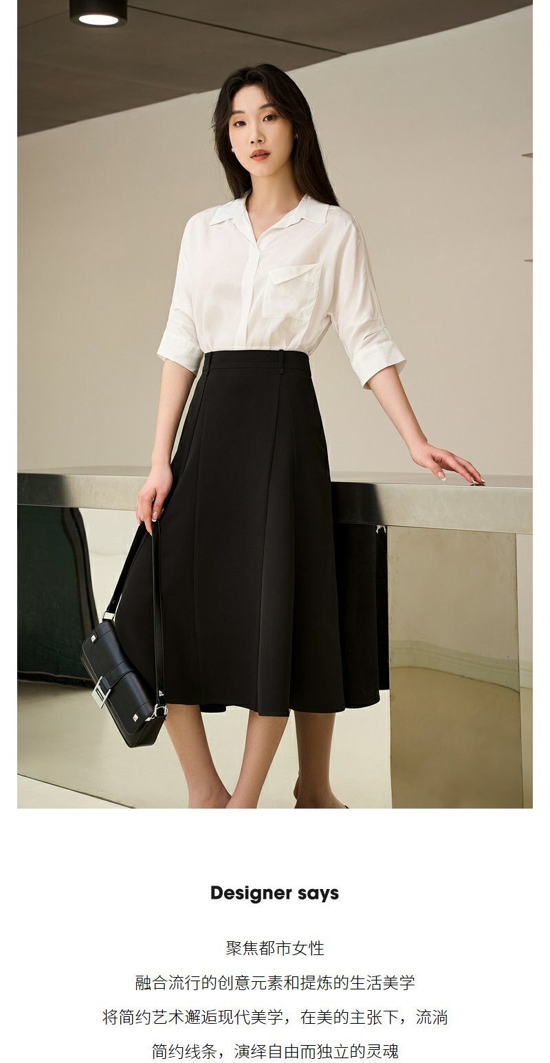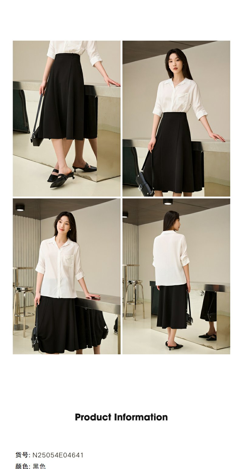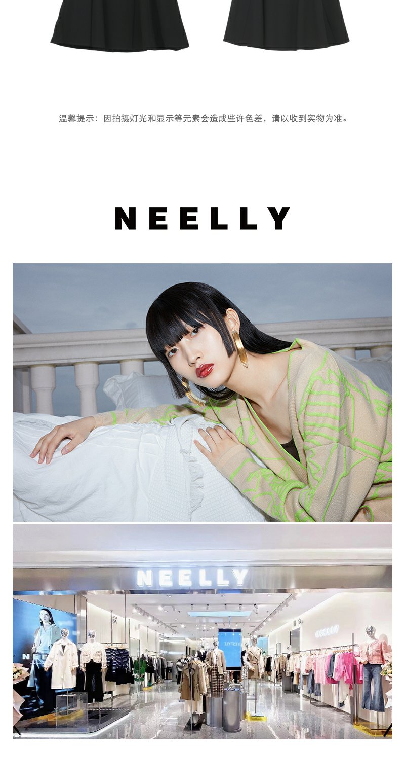 NEELLY纳俪商场同款夏新款高腰黑色显瘦赫本风半身裙女百搭A字裙N25054C04654