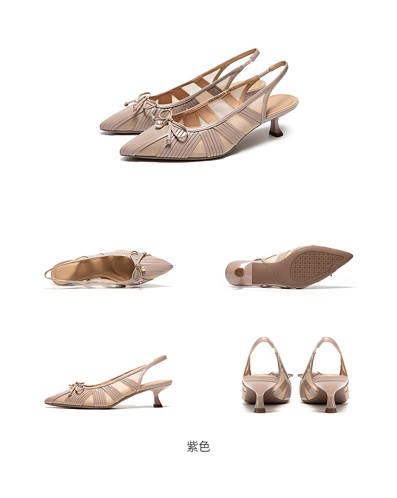 MIO米奥夏季新款尖头细跟凉鞋蝴蝶结抽带搭扣甜美时装凉鞋M252254707