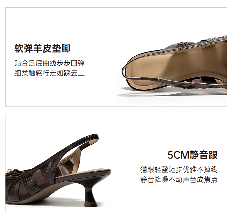 【静音系列】千百度小猫跟时装凉鞋女2026夏季新款细跟网纱凉拖鞋A26285633