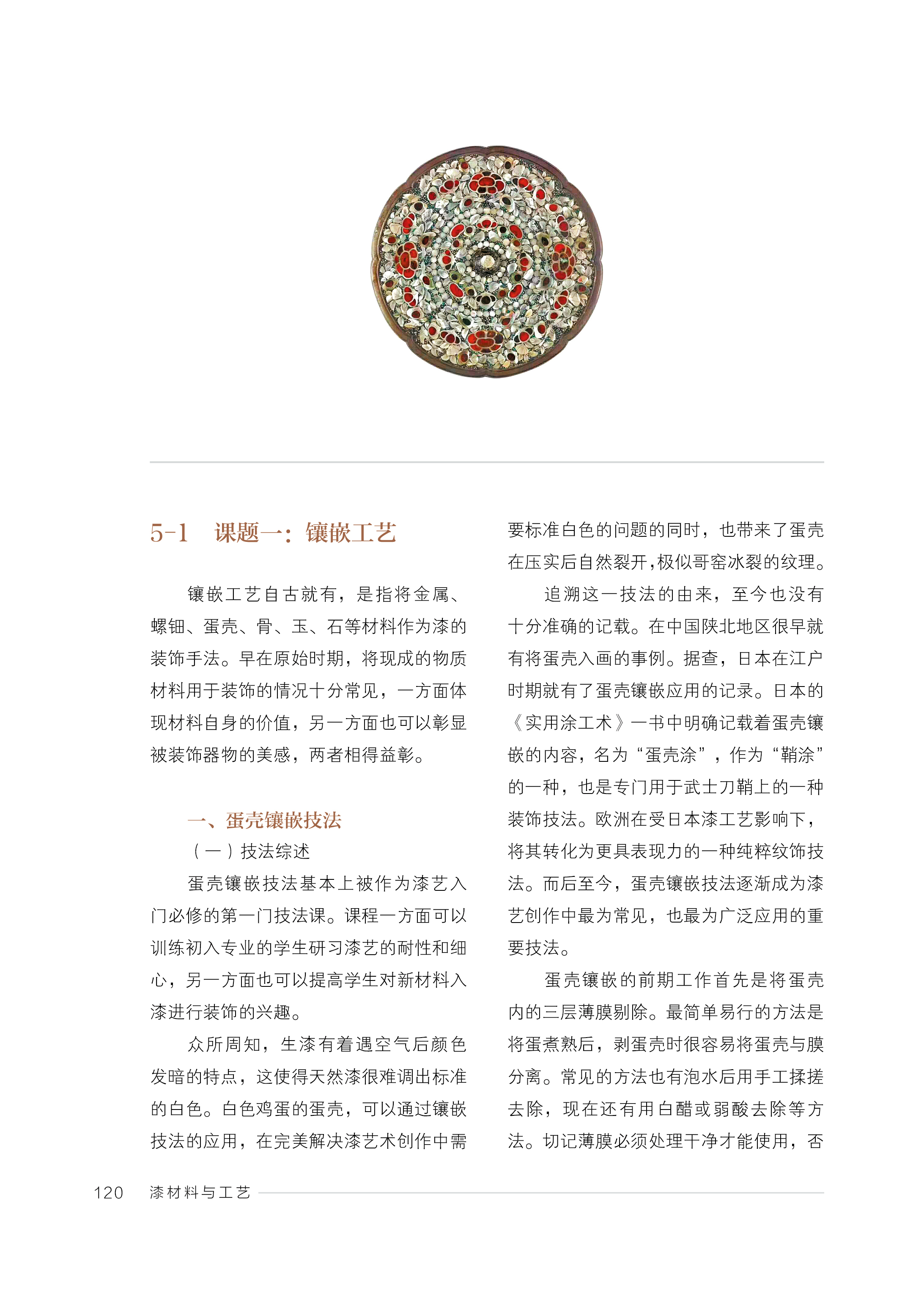 内容简介:《漆材料与工艺》由南京艺术学院周勇老师编撰,本教材立足于《漆材料与工艺》课程获得首批江苏省级一流本科课程和第二批国家一流线下课程的基础上而编写。教材紧贴学院“实验性教学方式致力于创新型漆艺专业人才的培养的课程体系”,通过对传统生漆与现代漆材工艺方法理论的梳理和表述、以及对相关案例分析和正对性实践练习作业的编排和设计,来指导学生学习漆艺术的基本原理、工艺种类及材料表现。