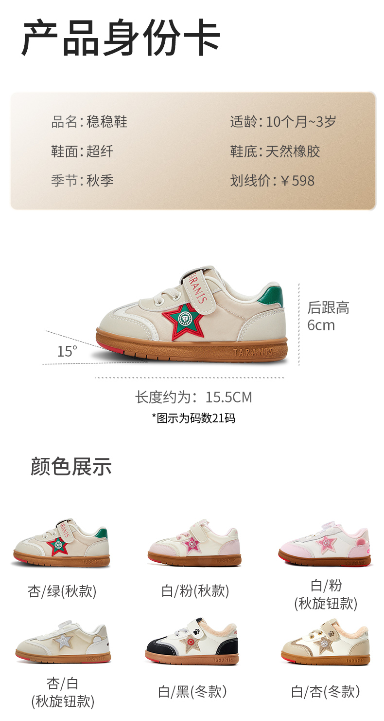 泰兰尼斯稳稳鞋男宝宝秋季新款童鞋多密度鞋底防滑机能鞋学步鞋女 T02B3C1588