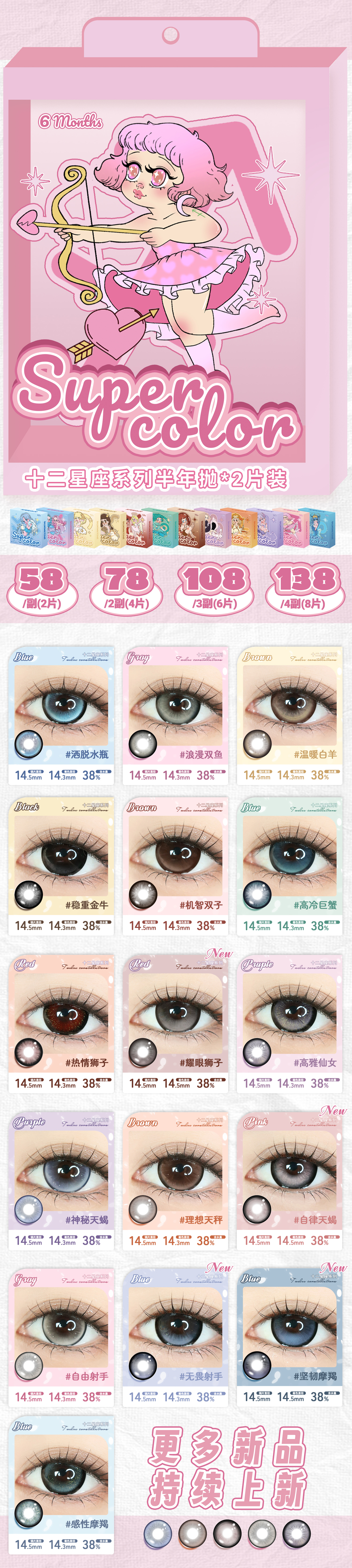 【活动】Supercolor半年抛 新品 十二星座 洒脱水瓶/浪漫双鱼/温暖白羊/稳重金牛/机智双子/高冷巨蟹/耀眼狮子/高雅仙女/理想天秤/自律天蝎/自由射手/感性摩羯 自然日常锁边 大直径美瞳