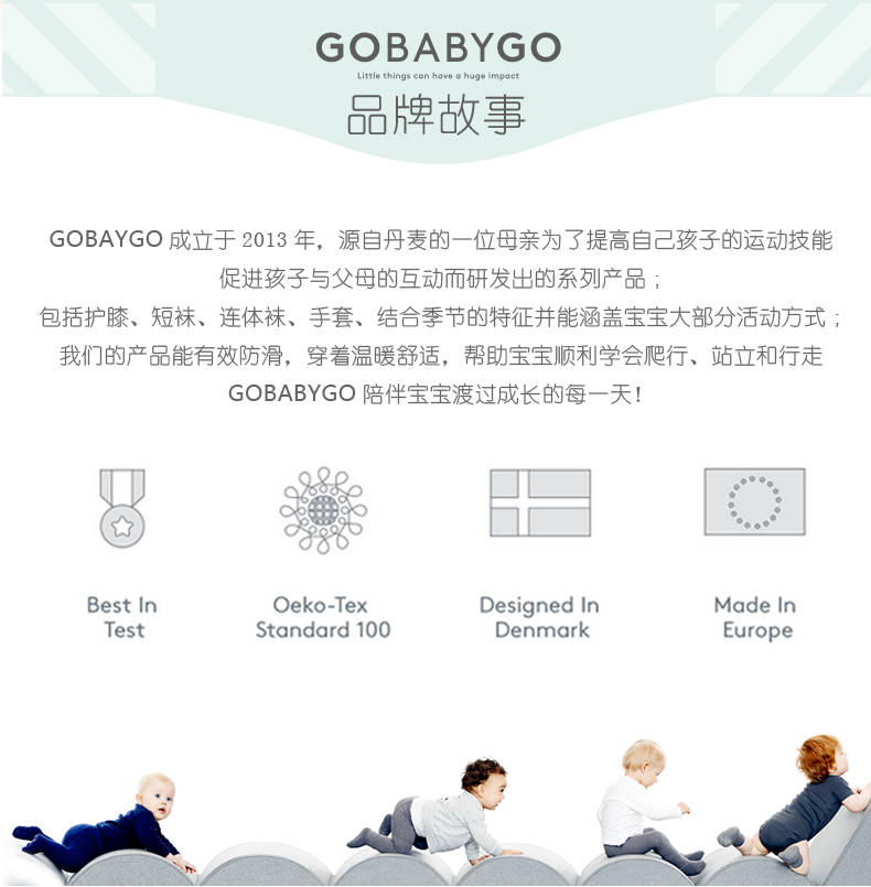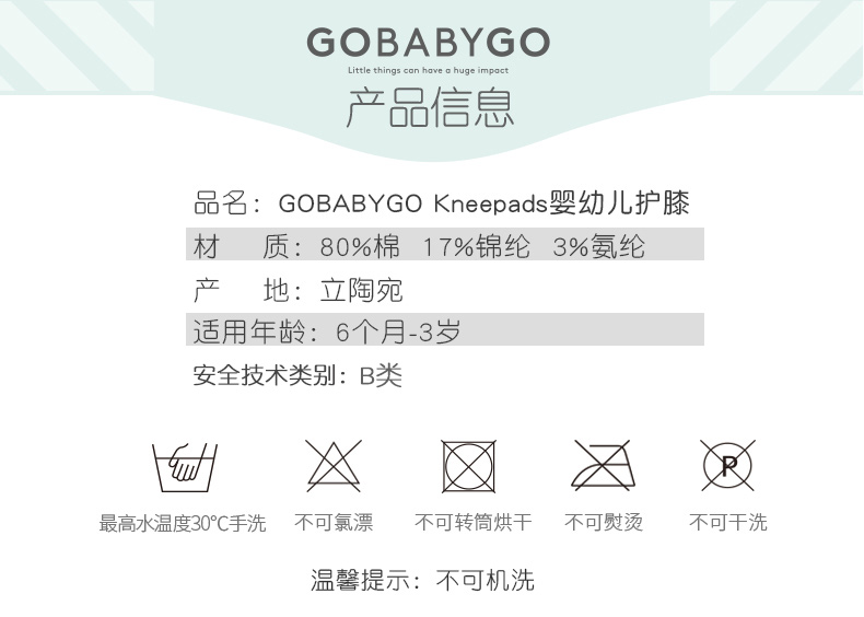 丹麦Gobabygo儿童护膝秋冬季宝宝小孩学步婴幼儿棉质爬行室内防摔