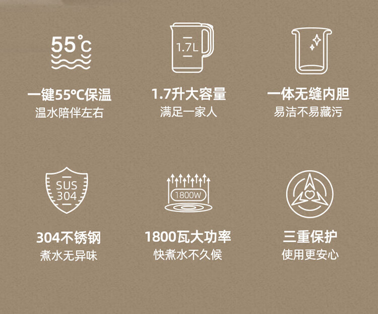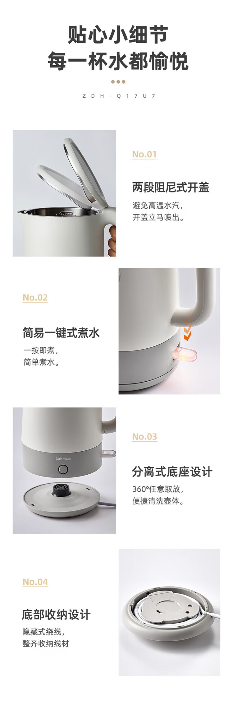 小熊 ZDH-Q17U7 电水壶保温壶电热水壶开水壶 大容量养生 1.7L