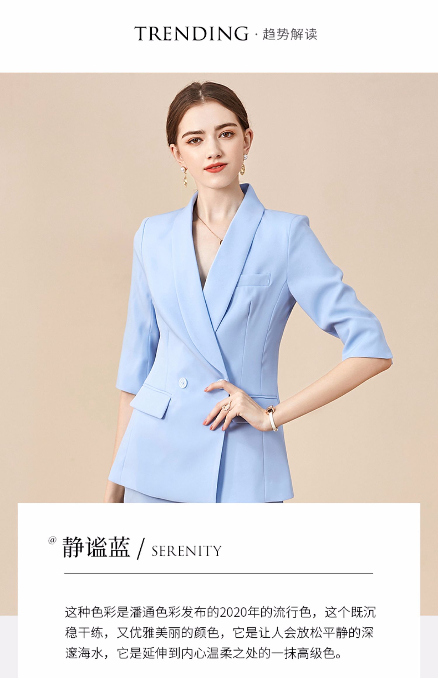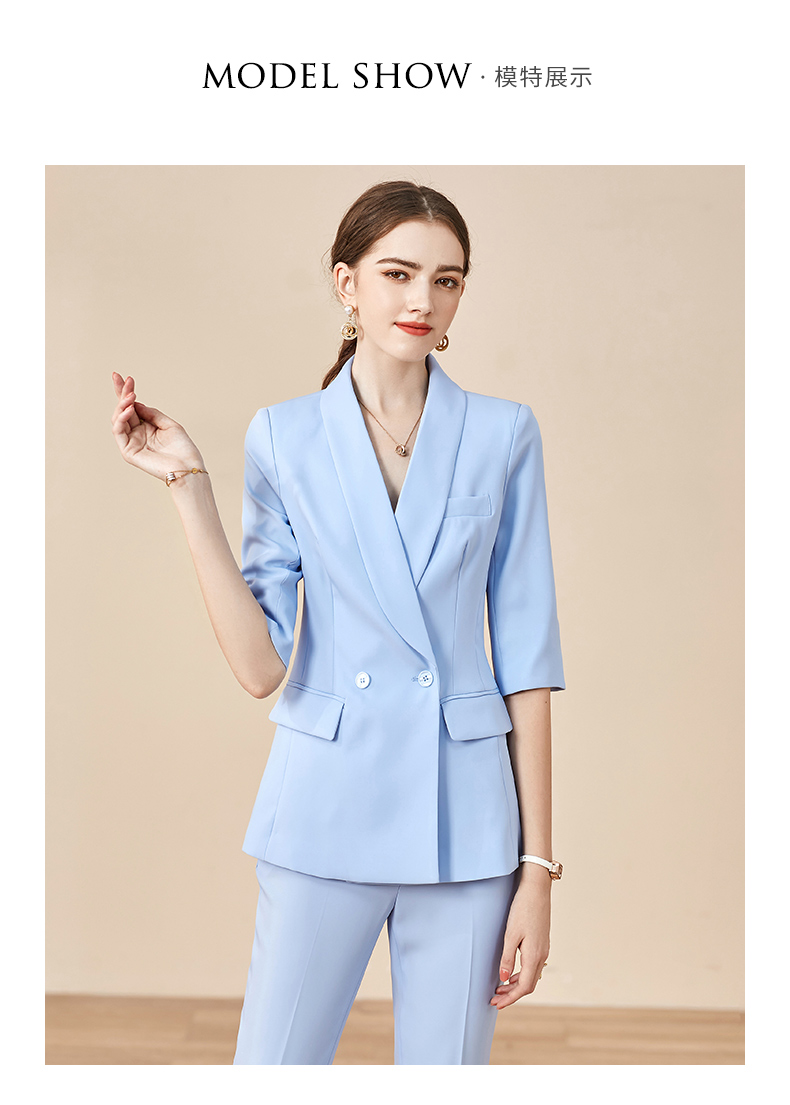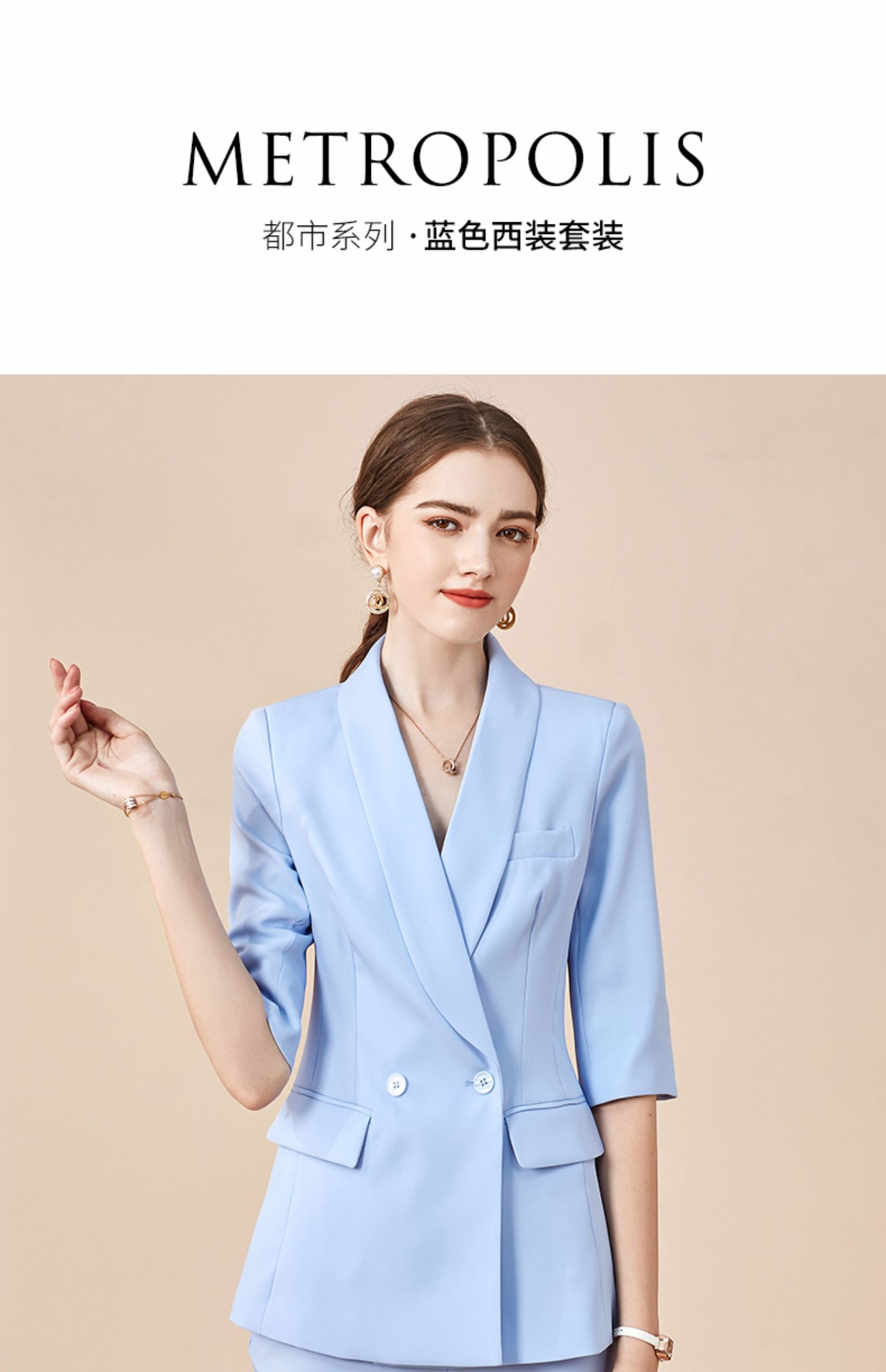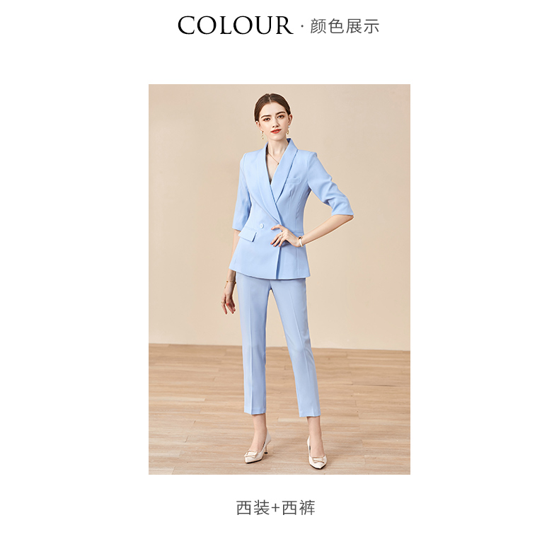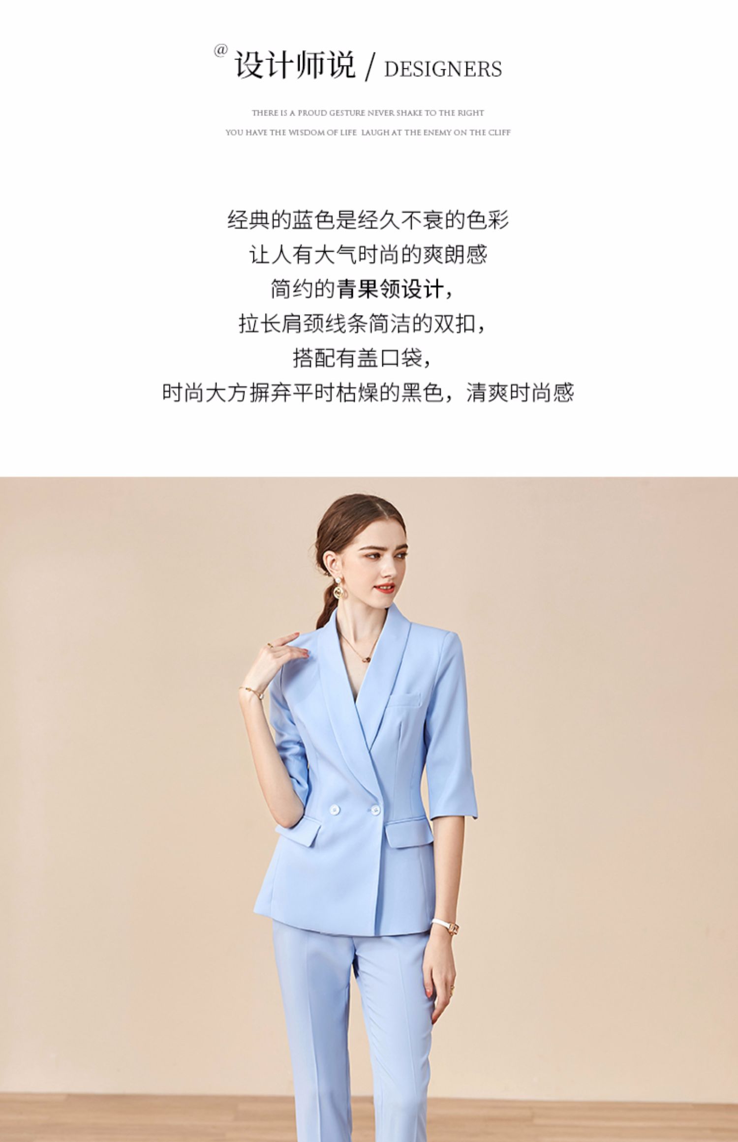 IWY/高端时尚正装蓝色西装套装职场女装五分袖通勤气质西服套裤职业装CP10226蓝色