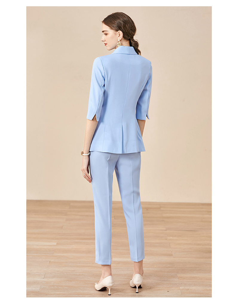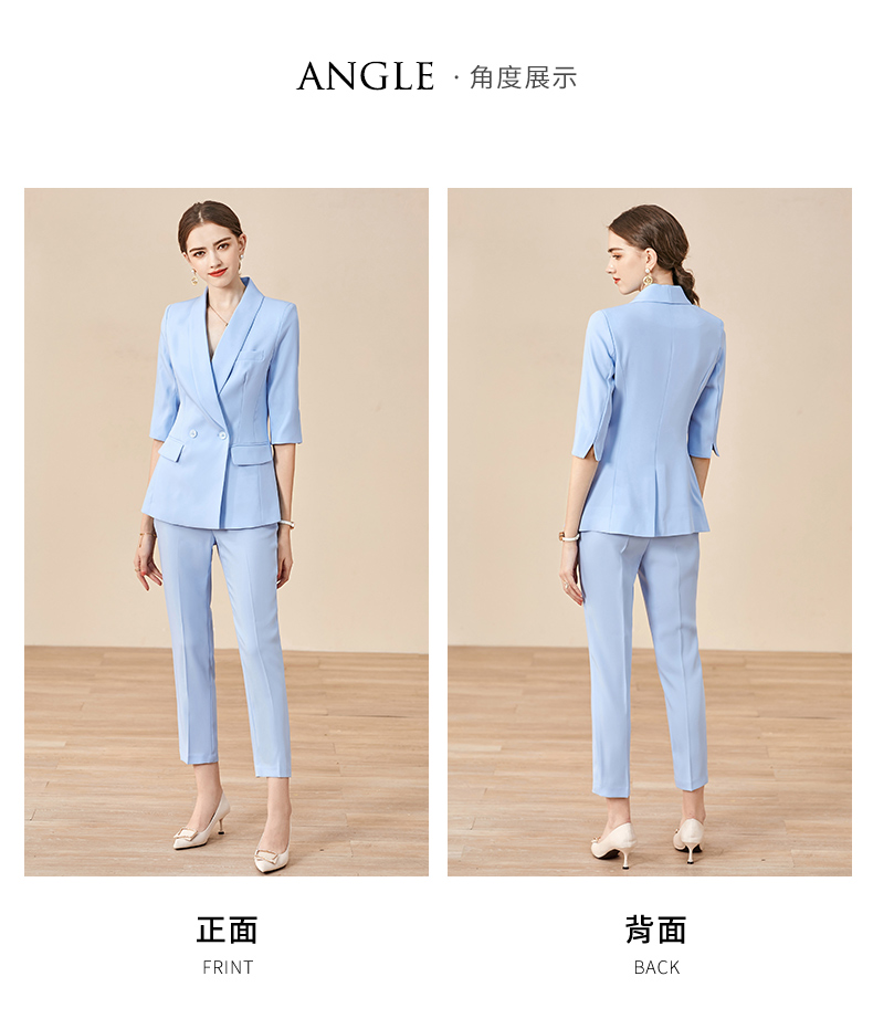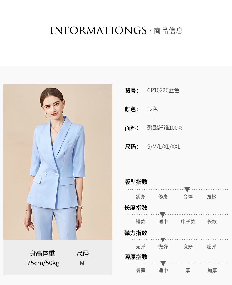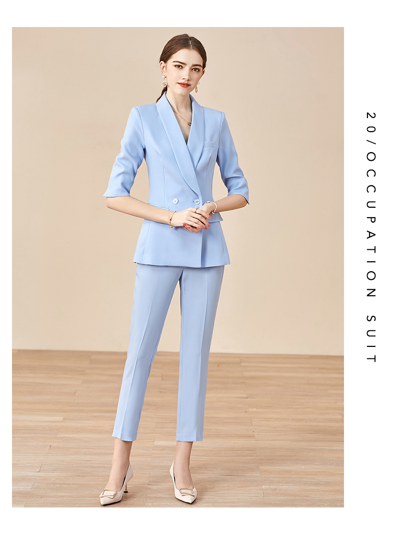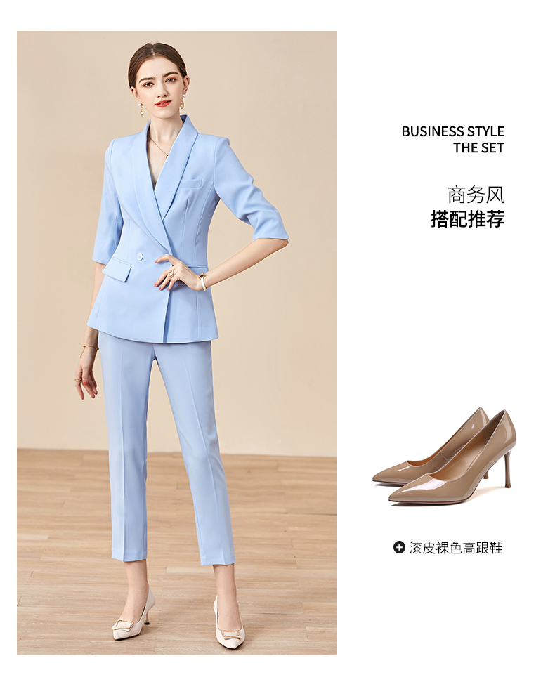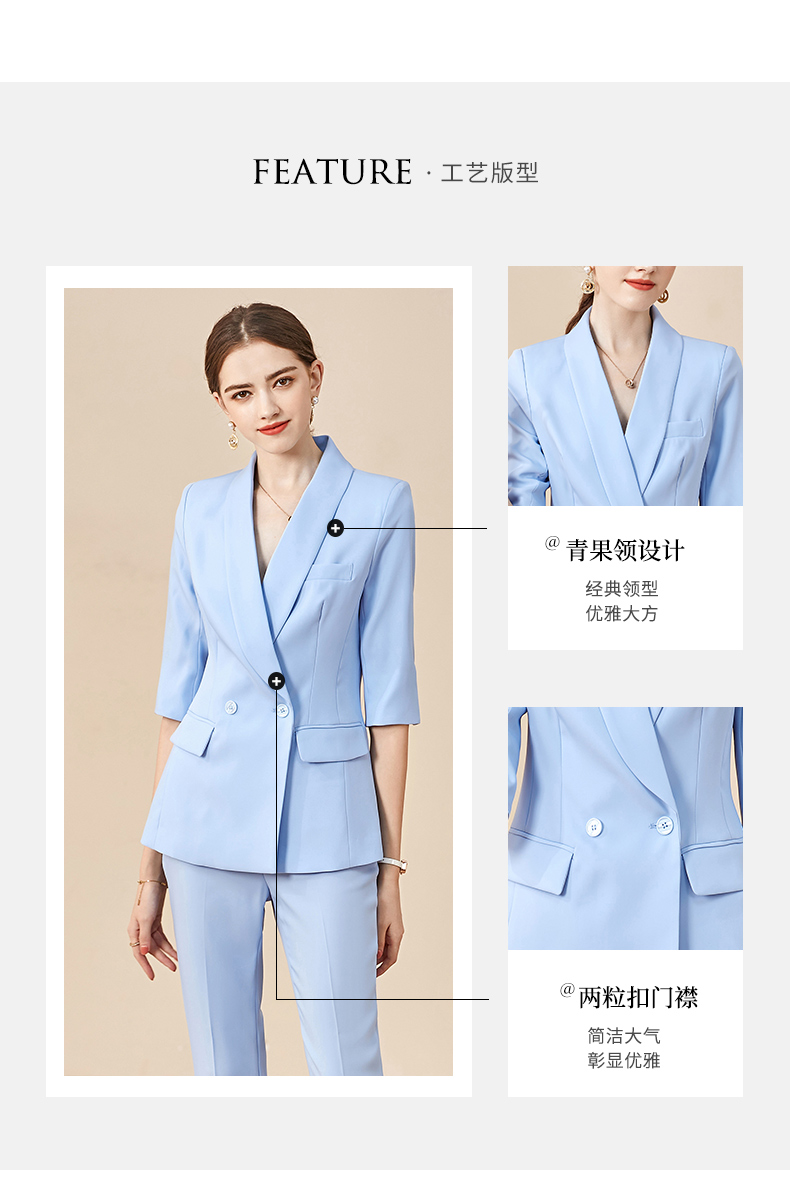 IWY/高端时尚正装蓝色西装套装职场女装五分袖通勤气质西服套裤职业装CP10226蓝色