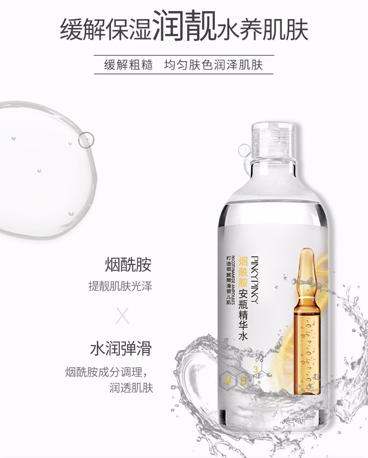 【一般贸易】【2瓶装组合】PINKYPINKY/缤肌 玻尿酸烟酰胺大安瓶精华水爽肤水500ml+500ml