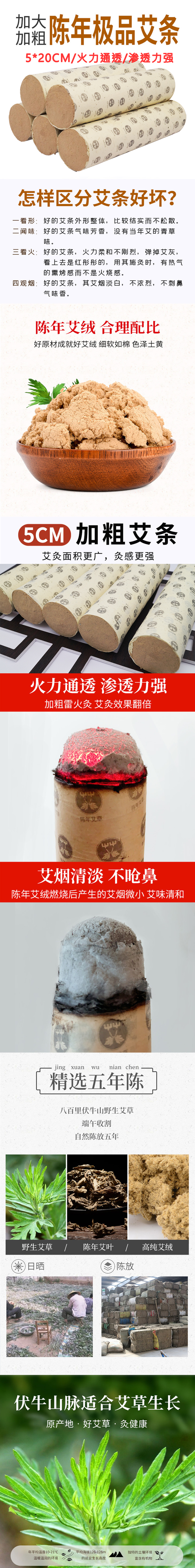陈年极*品艾条 5x20cm【艾绒纸卷制 烟小 燃烧渗透力强】