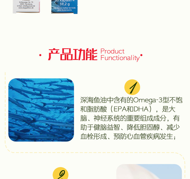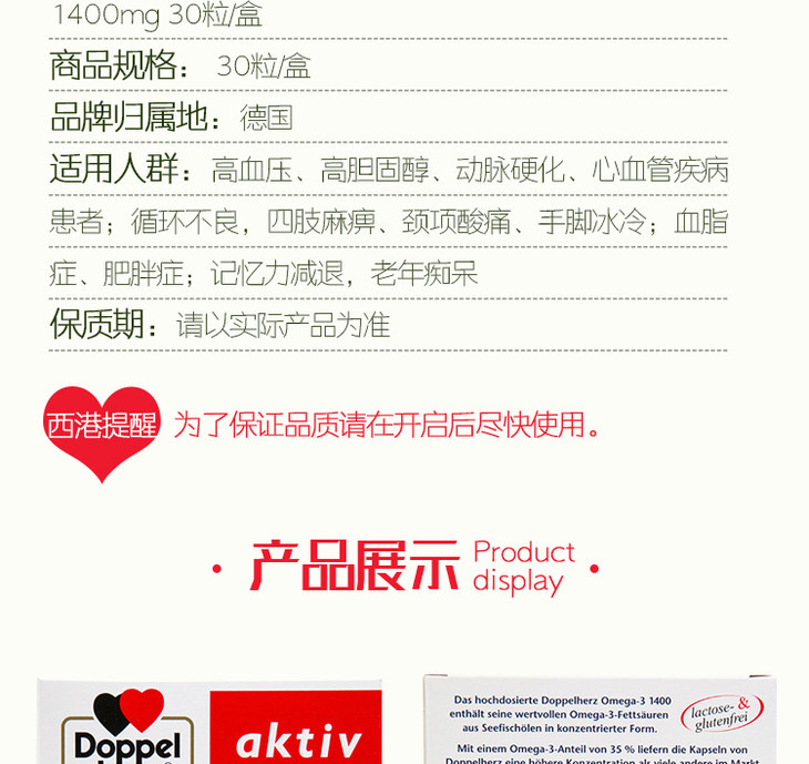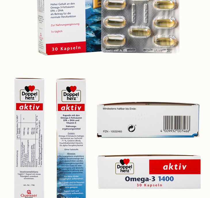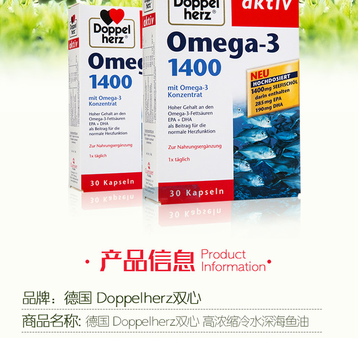 【保税仓】德国 Doppelherz双心 高浓缩冷水深海鱼油1400mg 30粒/盒 商品图0