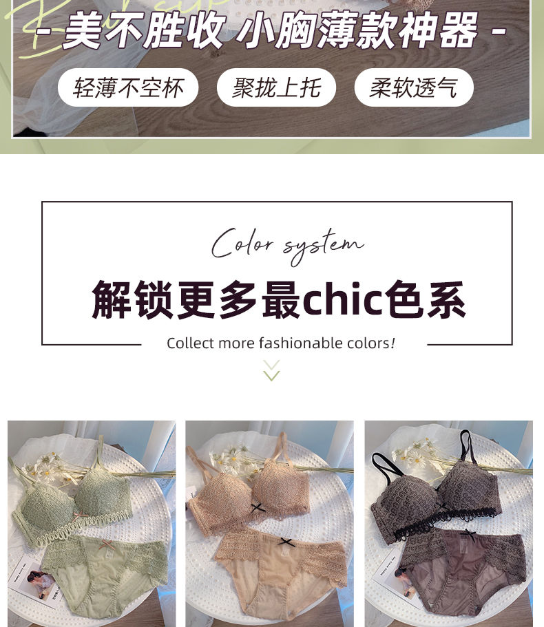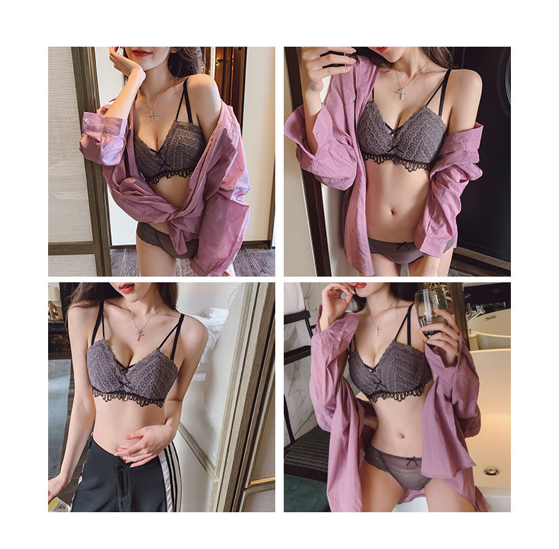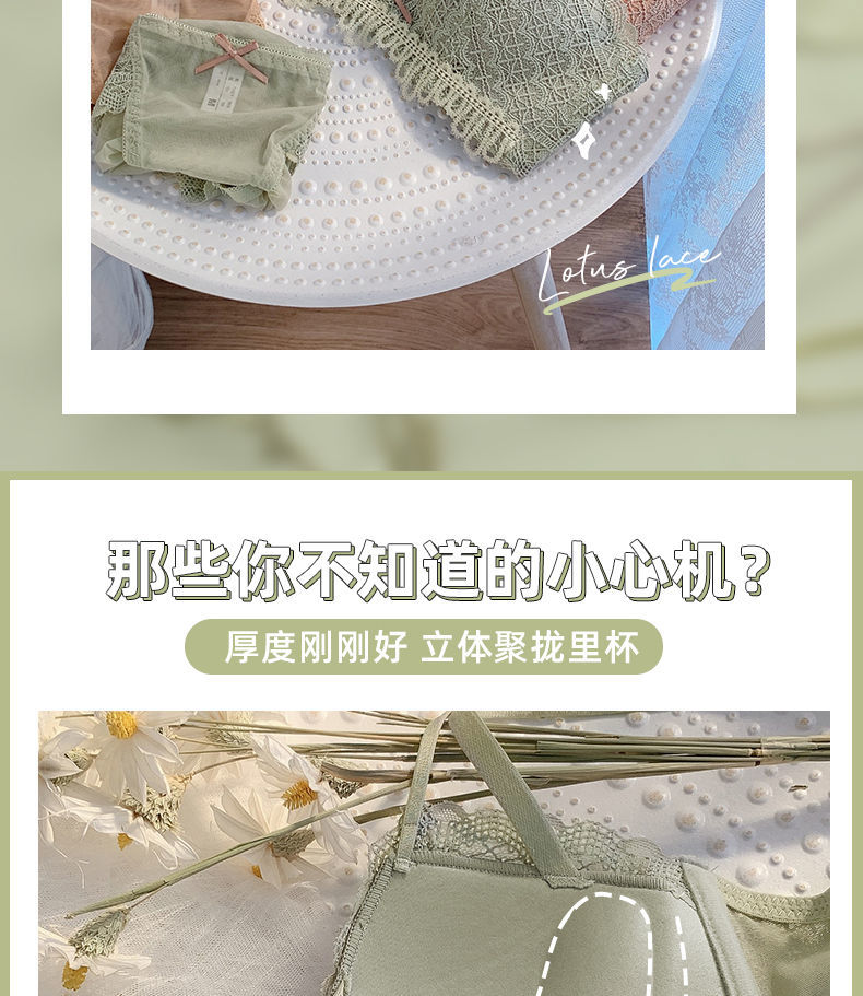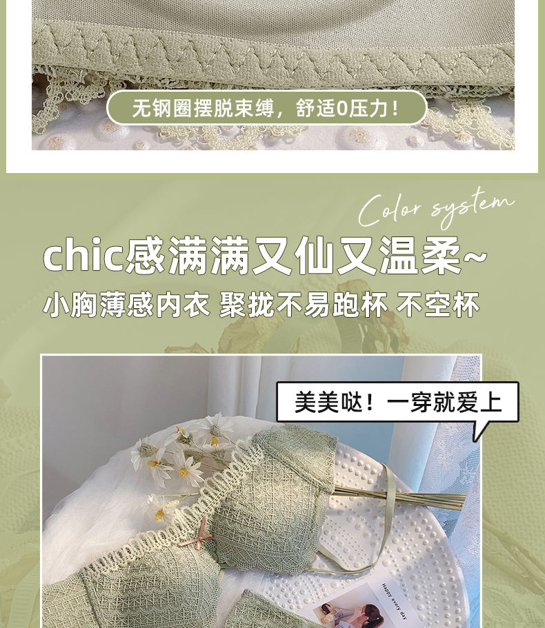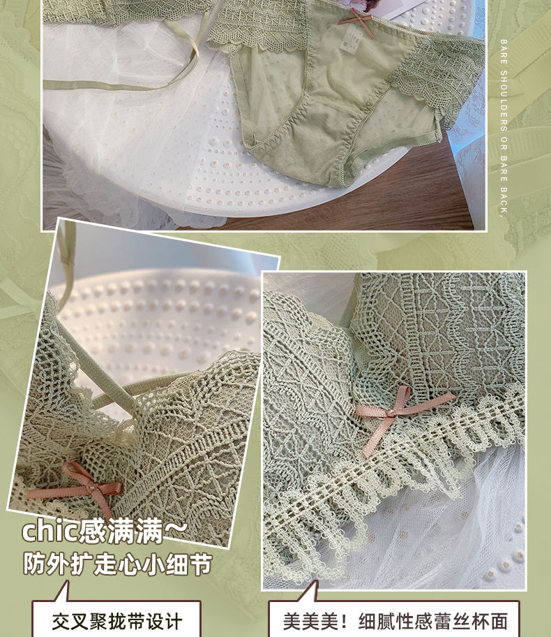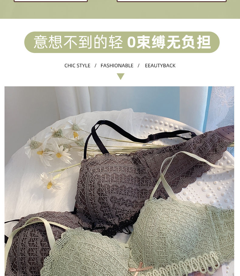 黛唯梵新款美背内衣女学生日系性感甜美文胸小平胸聚拢调整型无钢圈运动文胸内衣内裤套装