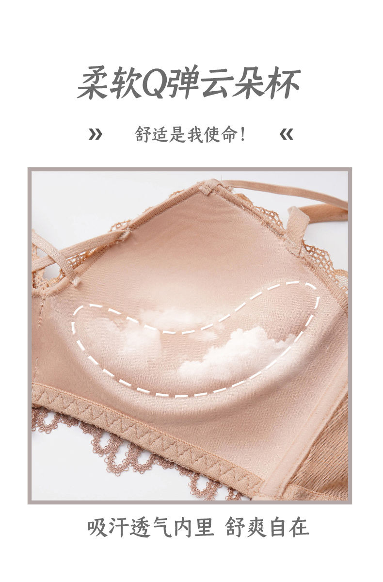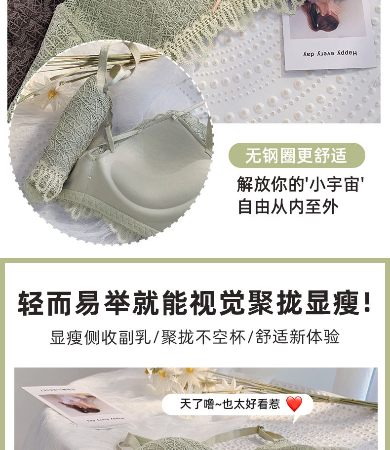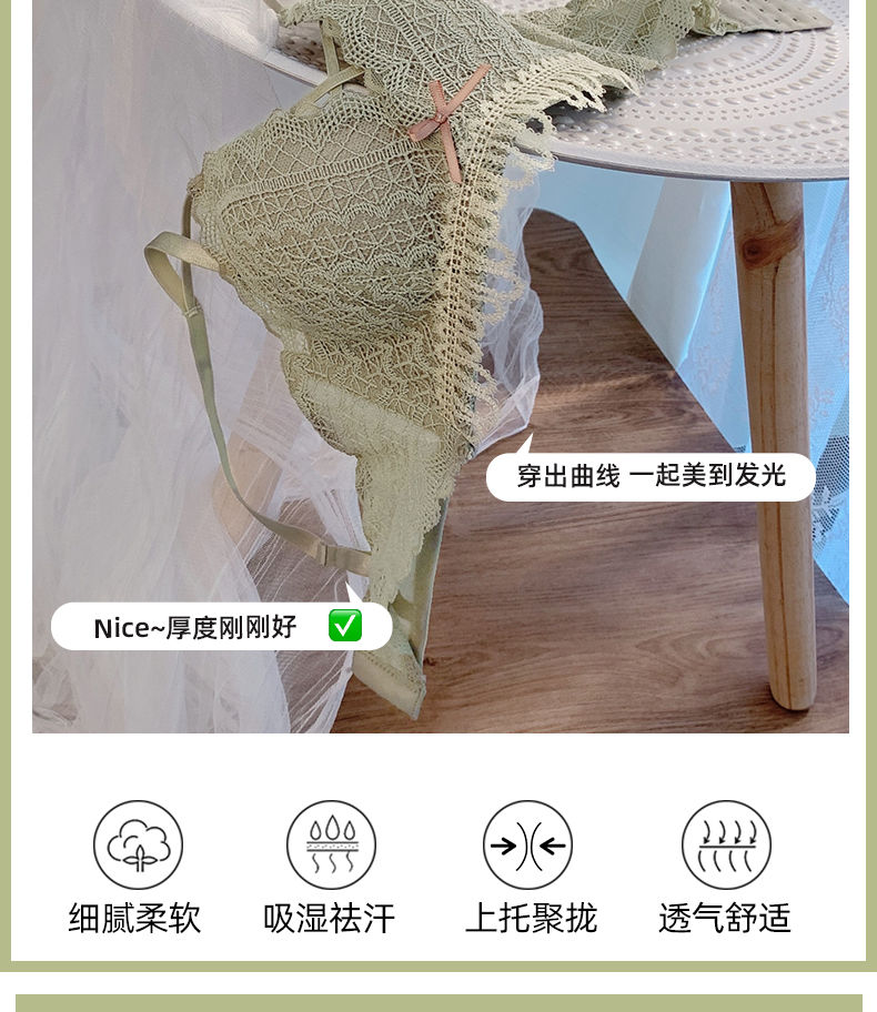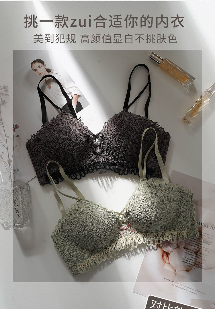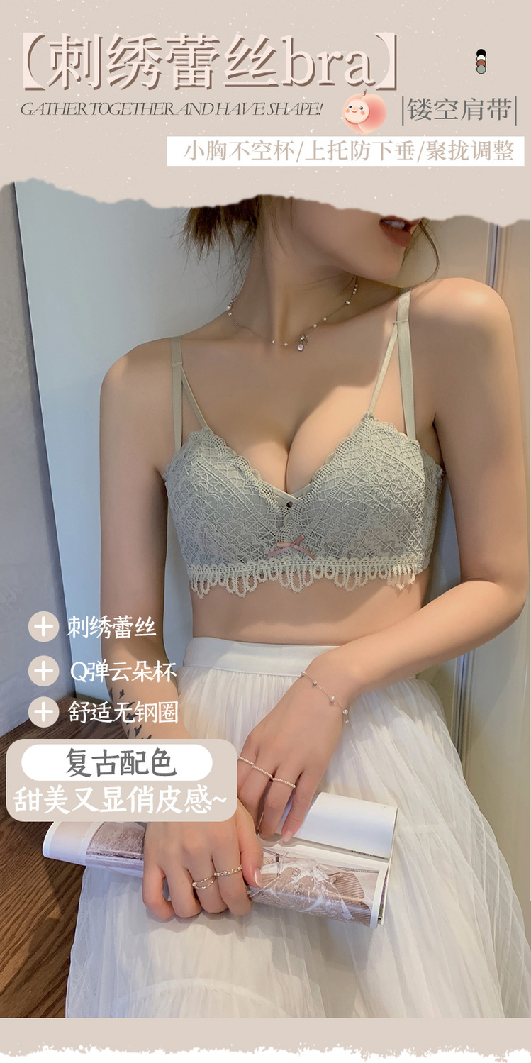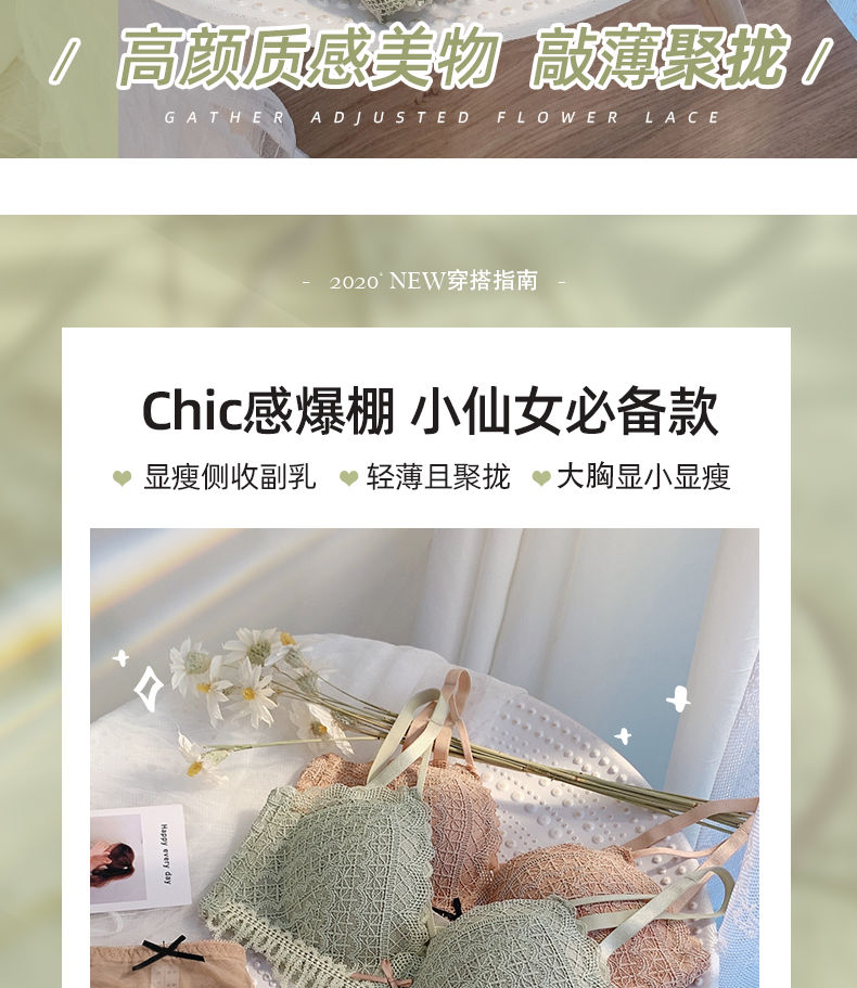 黛唯梵新款美背内衣女学生日系性感甜美文胸小平胸聚拢调整型无钢圈运动文胸内衣内裤套装