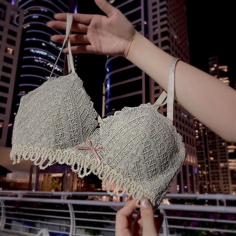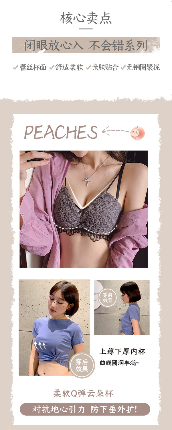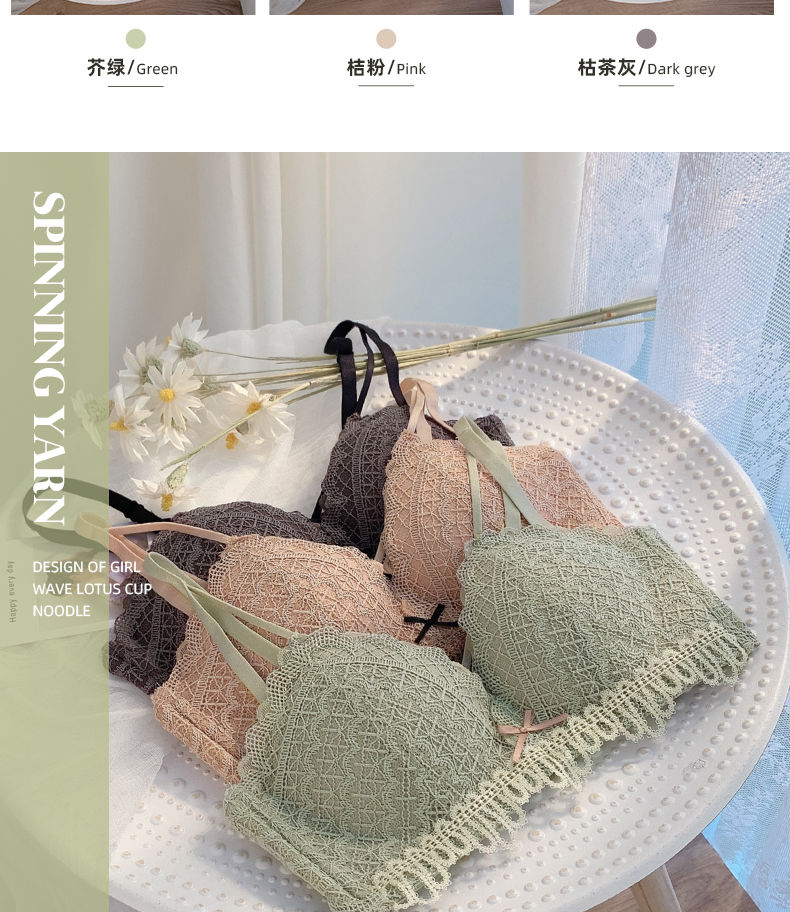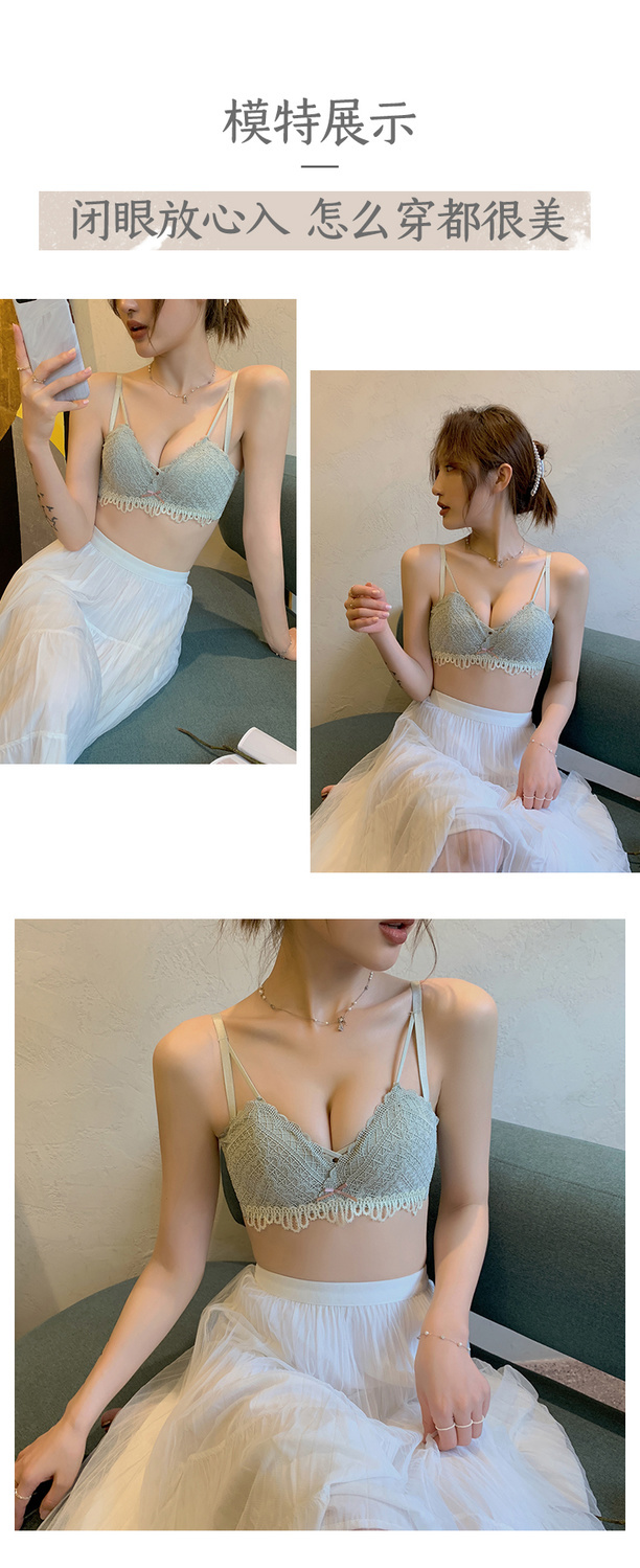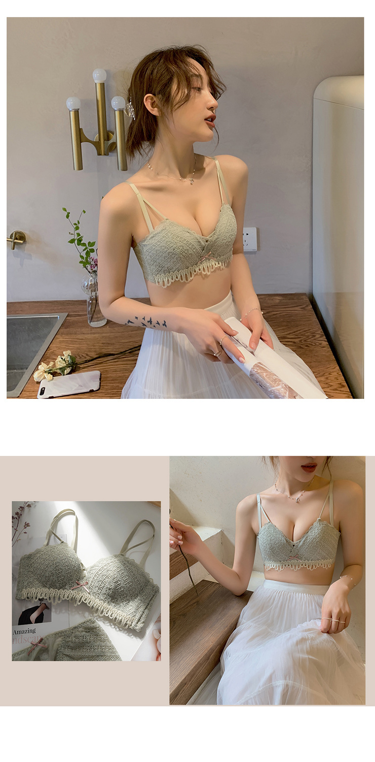 黛唯梵新款美背内衣女学生日系性感甜美文胸小平胸聚拢调整型无钢圈运动文胸内衣内裤套装