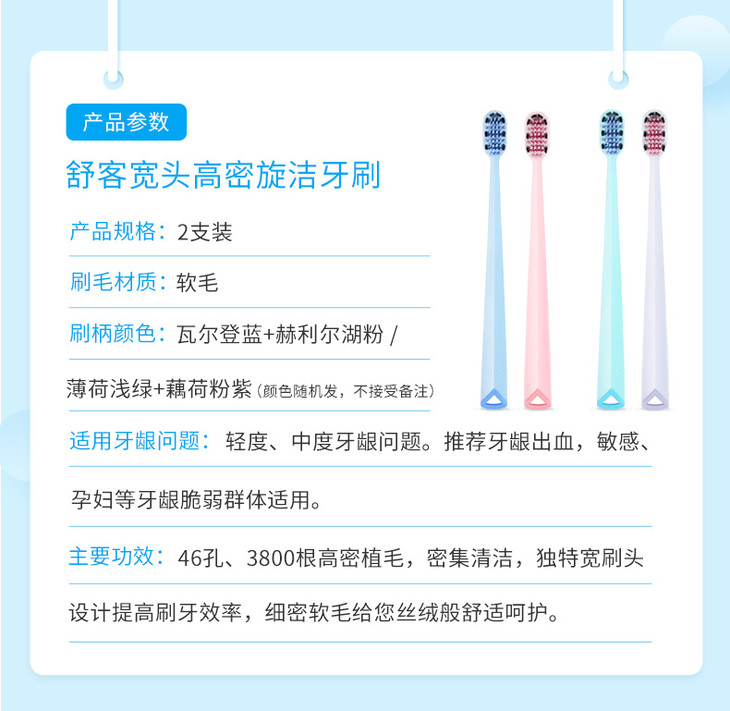 【限时折扣】舒客软刷毛细毛宽头高密旋洁舒适清洁牙刷 2支特惠装-颜色随机发