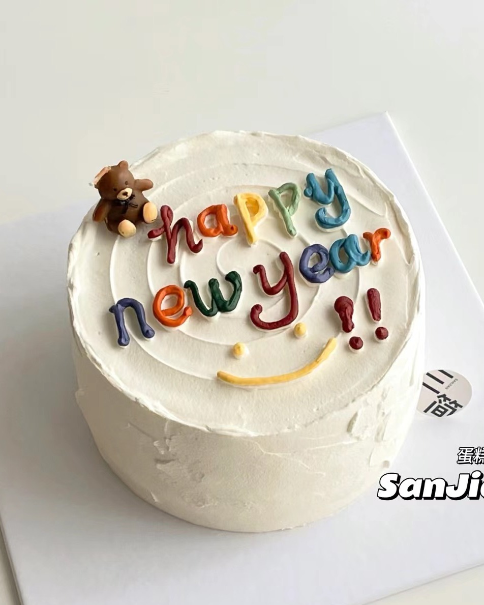 INS简约手绘元旦跨年新年蛋糕【happy new year】