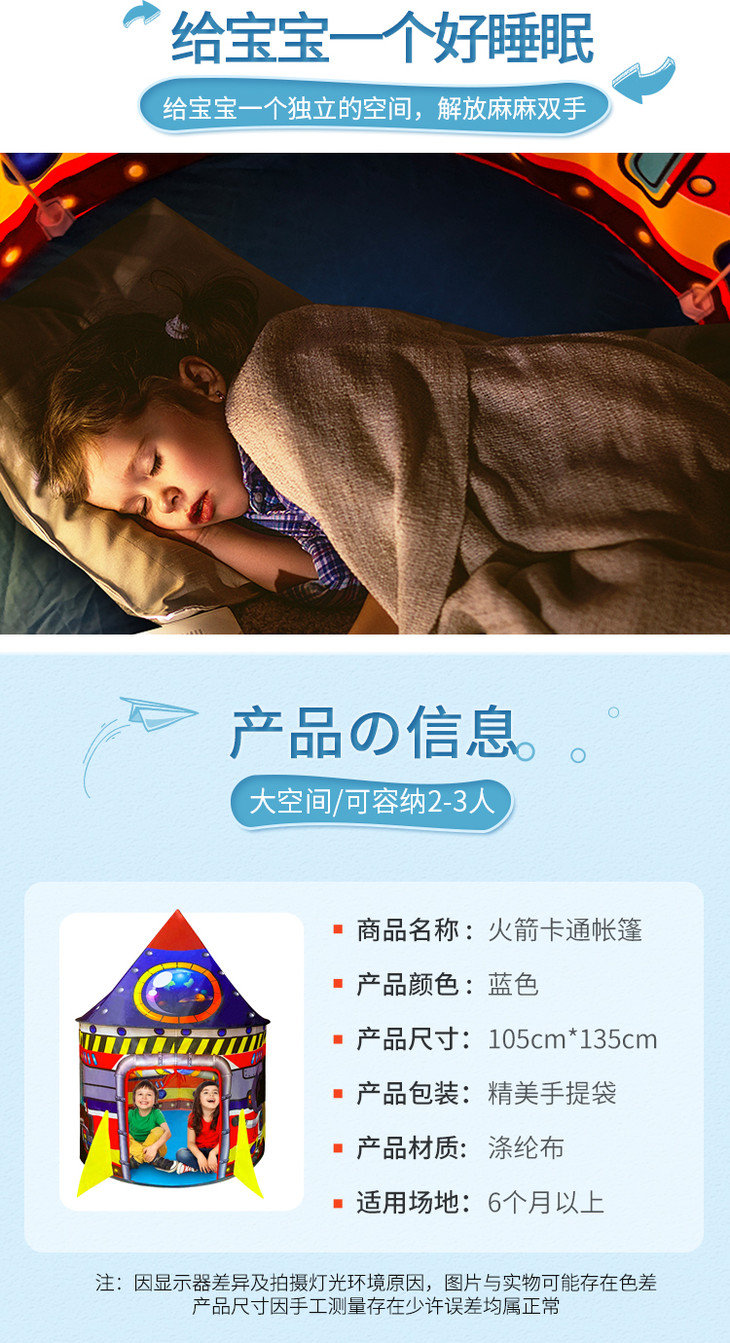 儿童帐篷室内玩具屋公主男女孩城火箭龙蒙古包小孩过家家分床神器