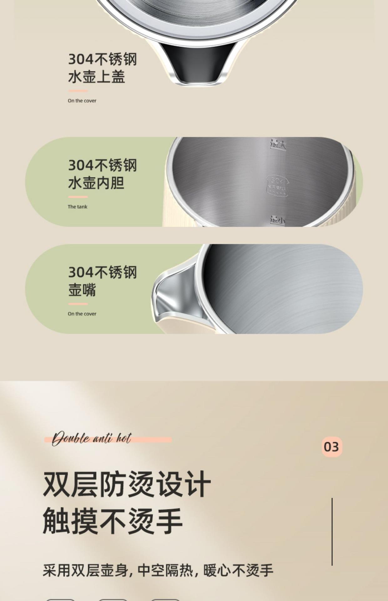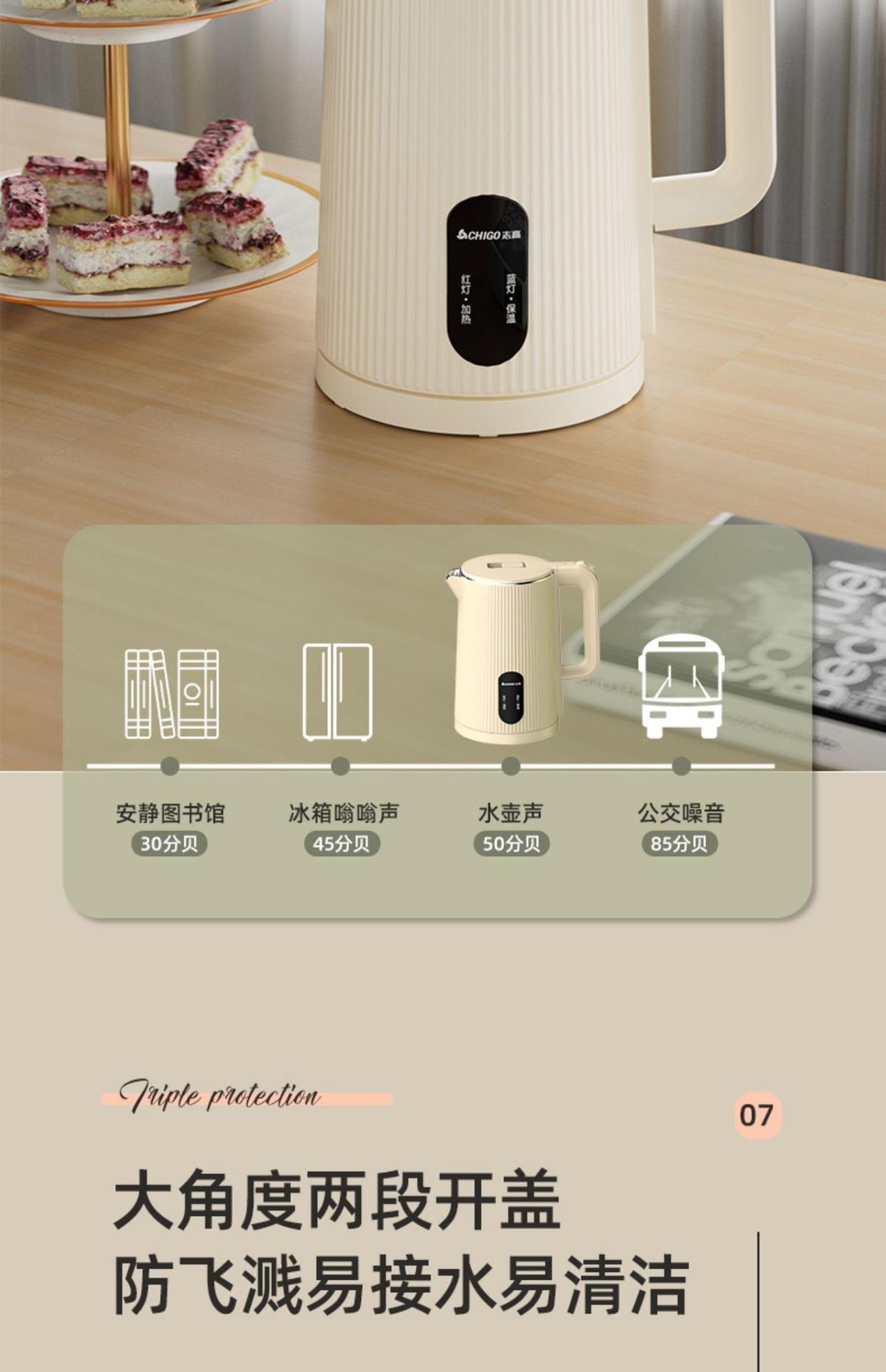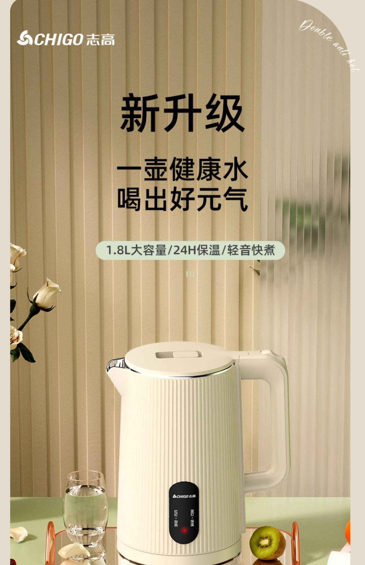 志高电热水壶家用烧水壶保温自动断电不锈钢大容量热水壶