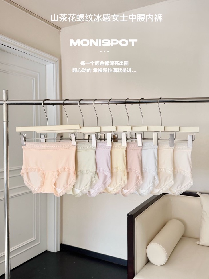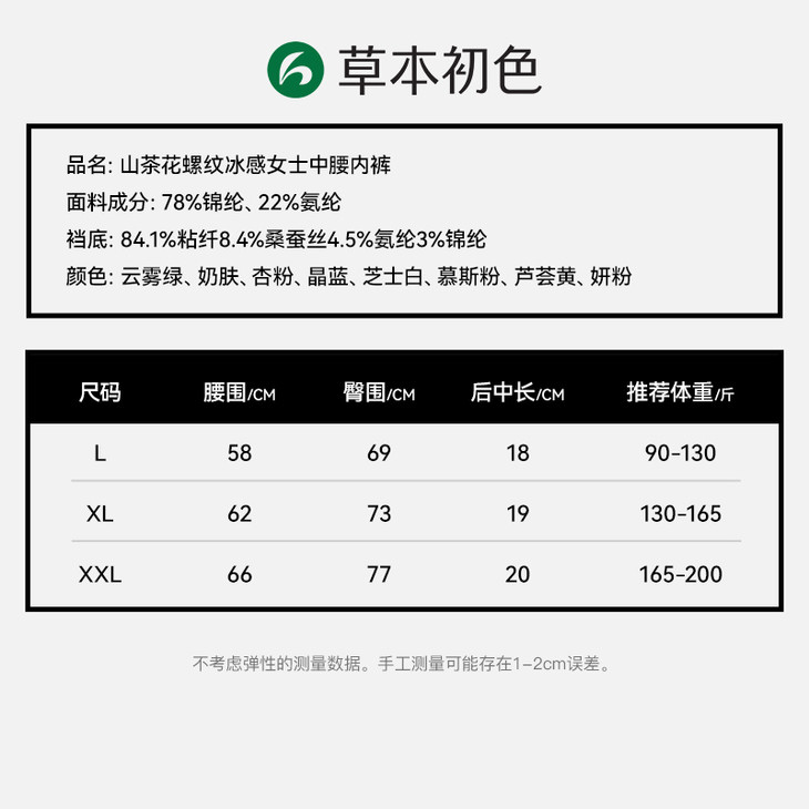 草本初色 山茶花螺纹冰感女士中腰内裤632款
