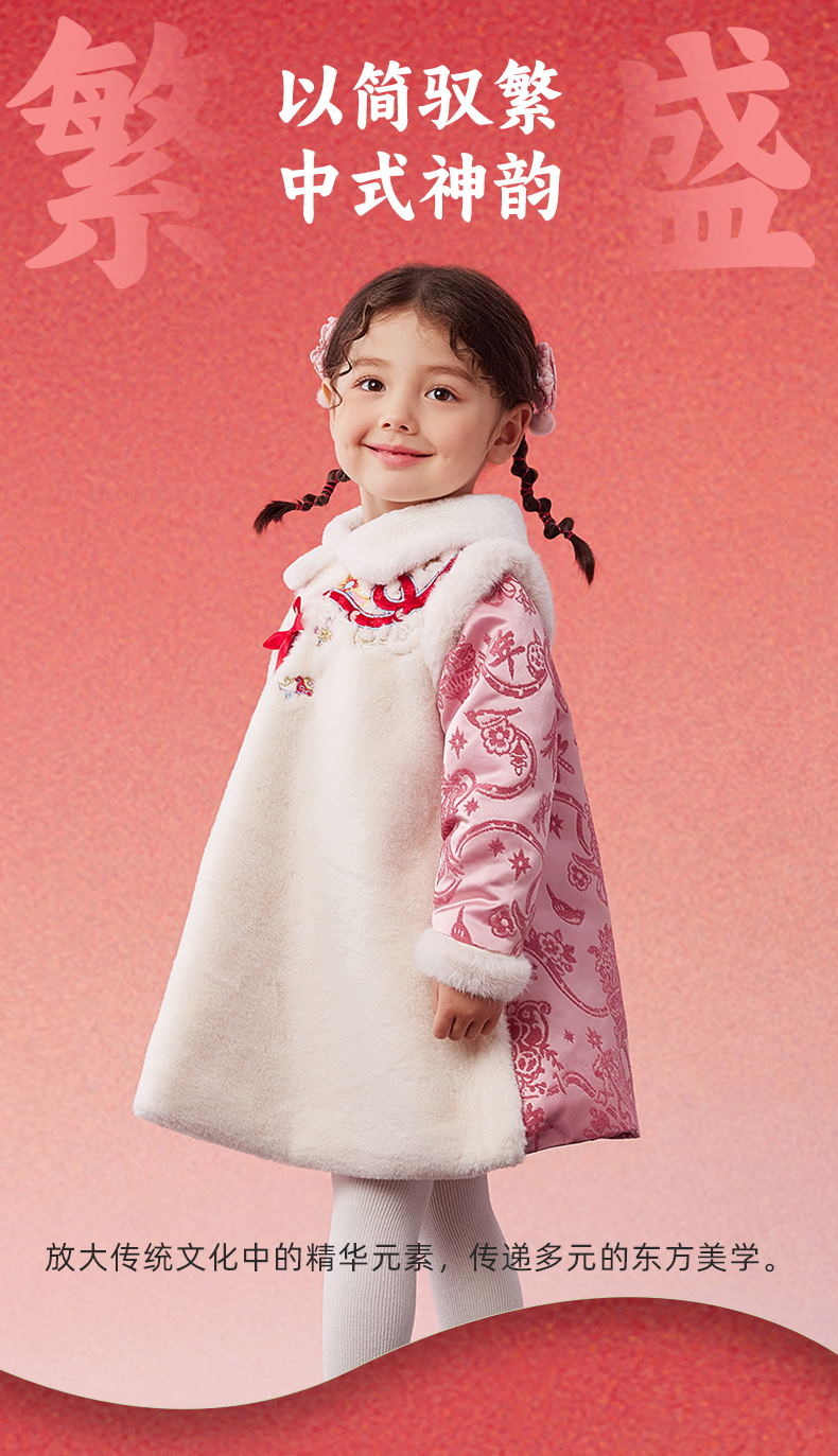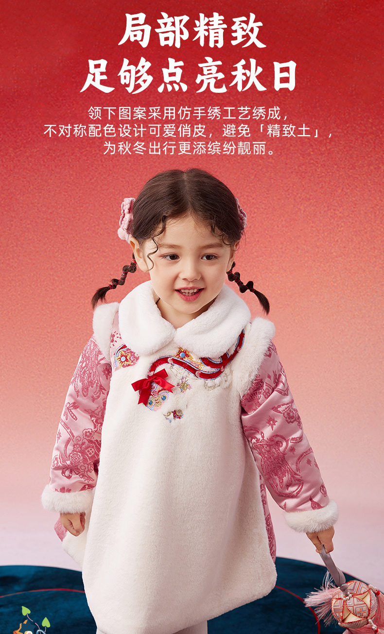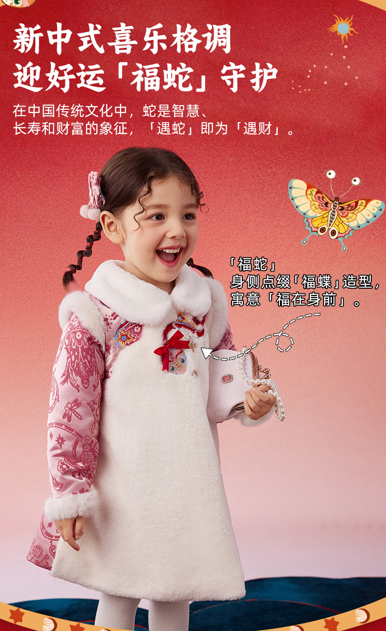 【品牌优选】年衣童装女童连衣裙冬新款儿童娃娃领甜美裙子宝宝拜年服新年礼服福蛇环绕旗袍裙