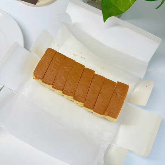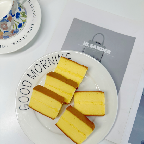 口感棒极了👏😋温润轻盈,柔软,浓郁醇香 高级进口原材,全程不添加一滴水 日式水浴烘焙制作工艺 棕黄色的表皮,焦黄绵嫩的糕身 蛋香浓郁,奶味清新 一口一块,好满足😋