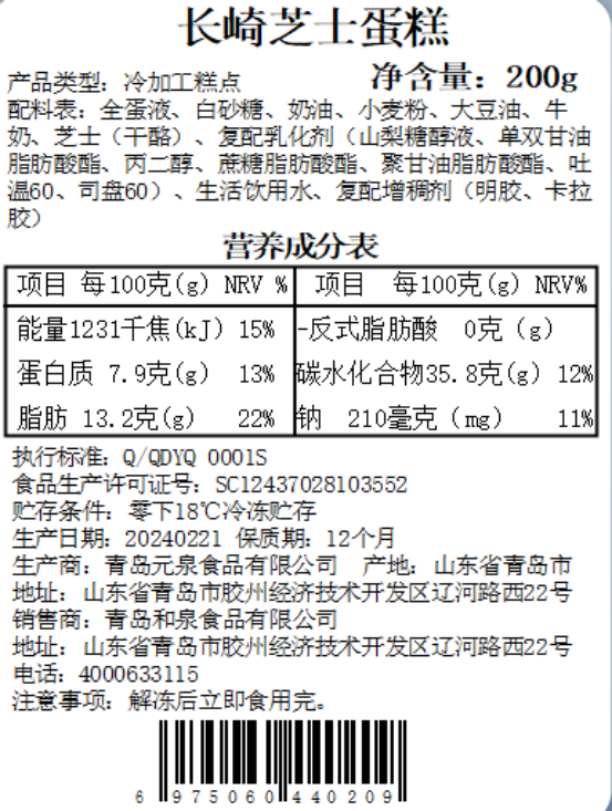 ✅经典日式长崎蛋糕,加入香浓进口芝士增添奶香与绵密口感,吃起来软软糯糯 ✅选用进口安佳芝士、大豆油、牛奶等,细致融合,口感丰富多层次 ✅在十万级无菌车间环境生产,多道工序层层把控,打造安心美味好产品 ✅日式风味:适度火候水浴烘焙制作出的蛋糕,入口温润轻盈,配料中不加一滴水,纯牛奶制成顺滑蛋糕糊。 ✅湿润、柔软、醇香。温润口感、细腻鲜甜。柔软不失弹性的诱惑焙香。深棕色的表皮,焦黄绵嫩的糕身,蛋香浓郁,奶味清新。