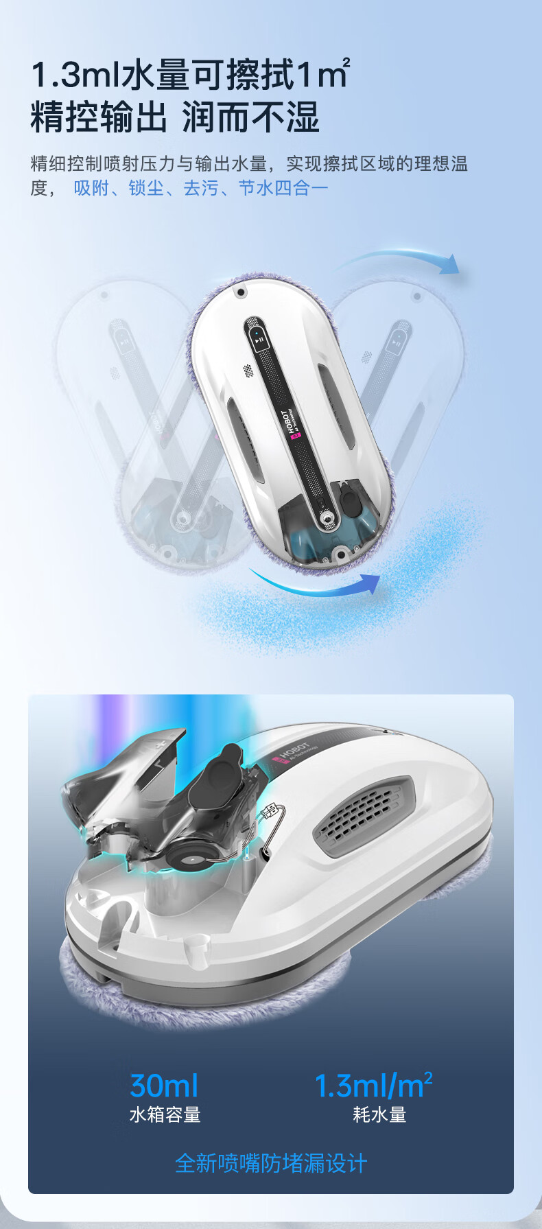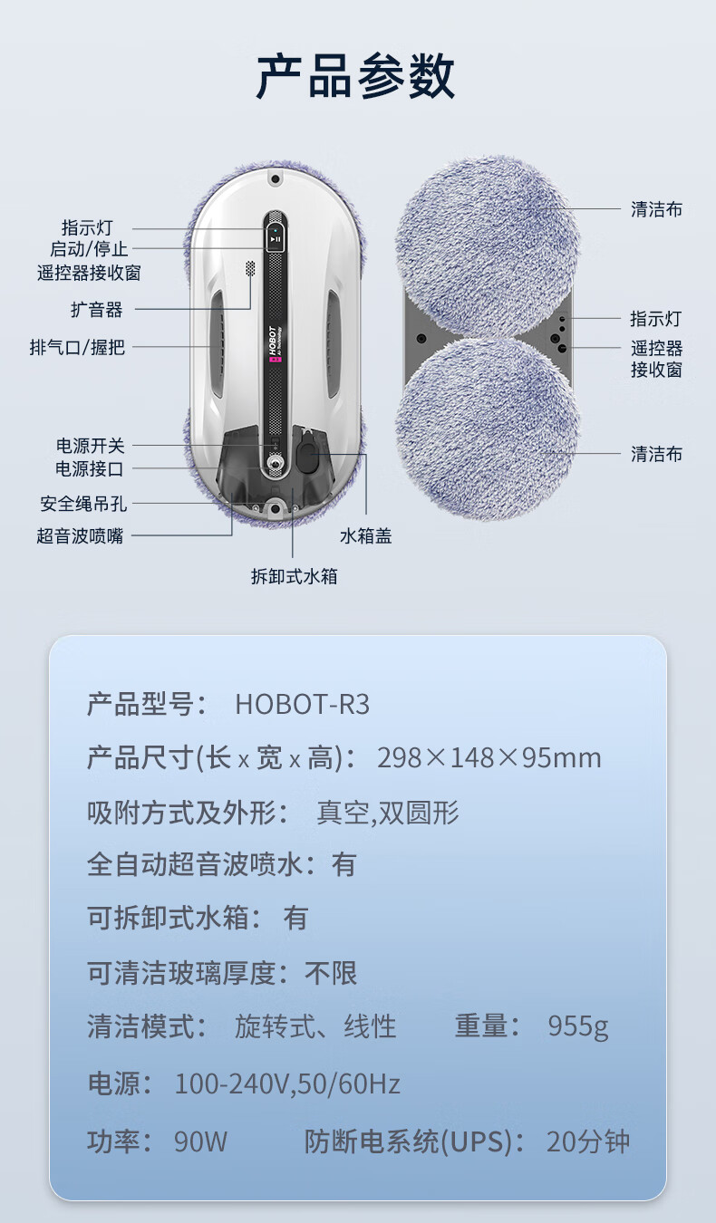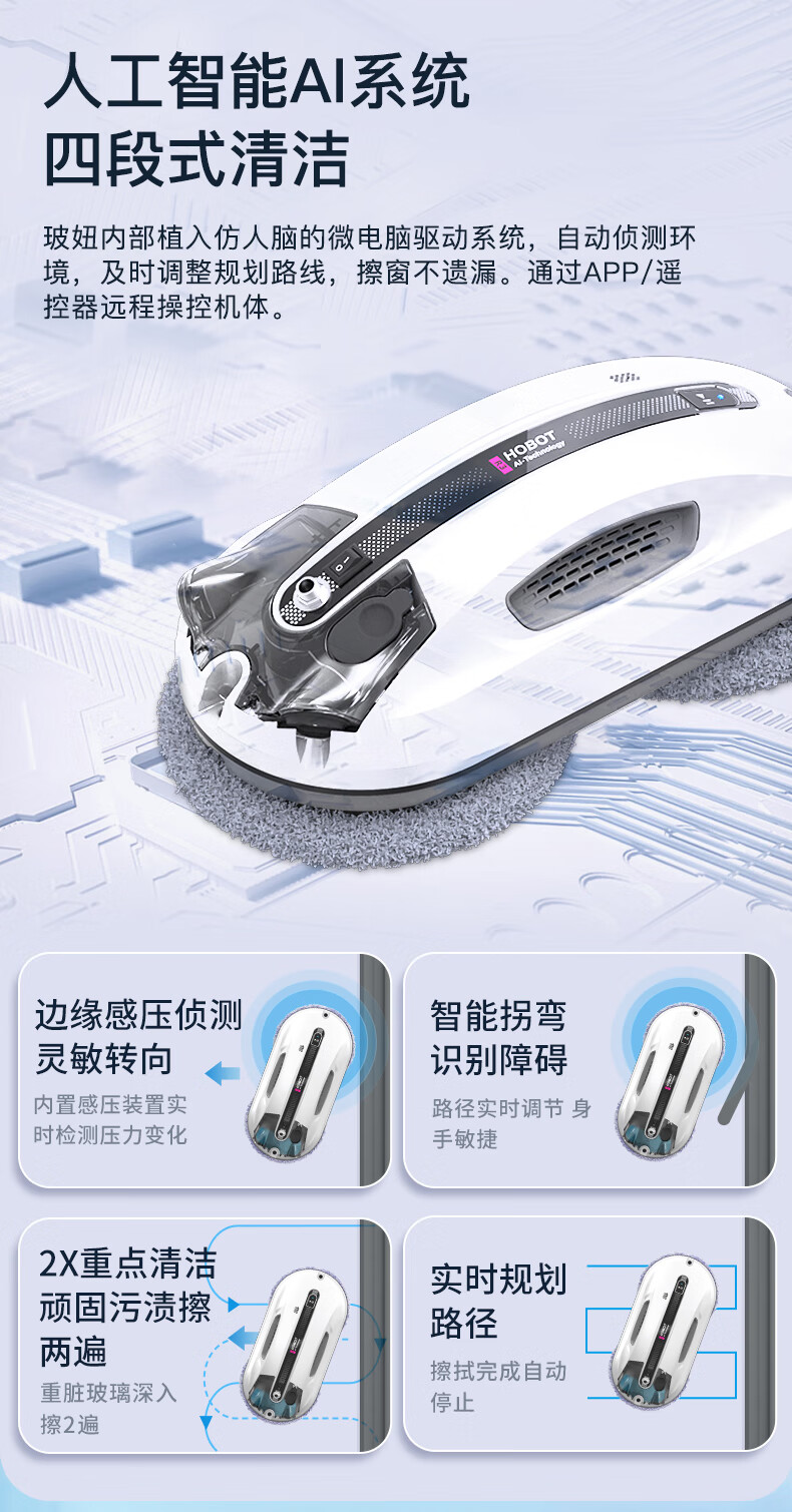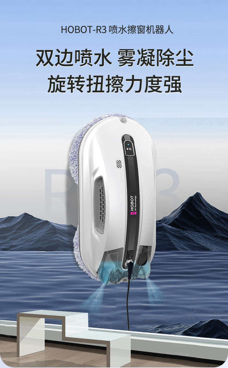 玻妞(HOBOT)全自动家用双向喷水擦窗机器人波妞擦玻璃机器人 干湿两用擦窗神器 玻妞R3