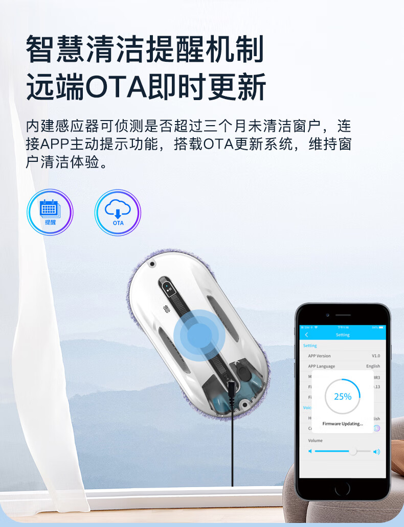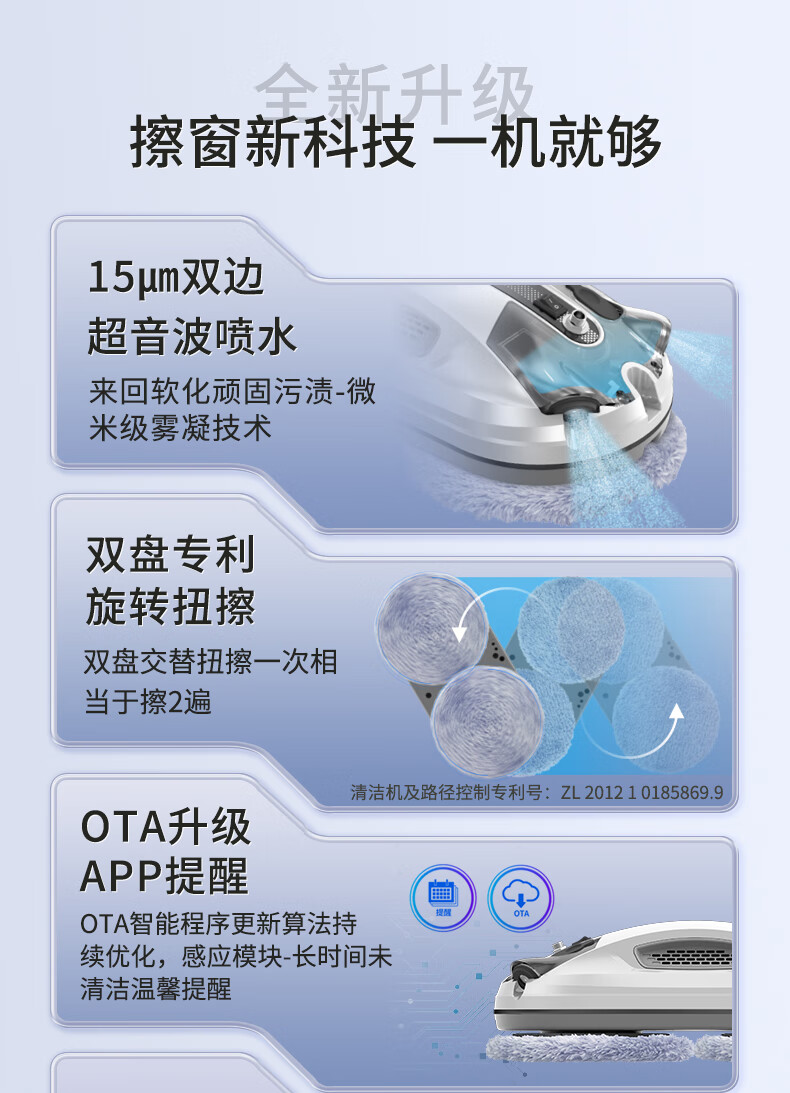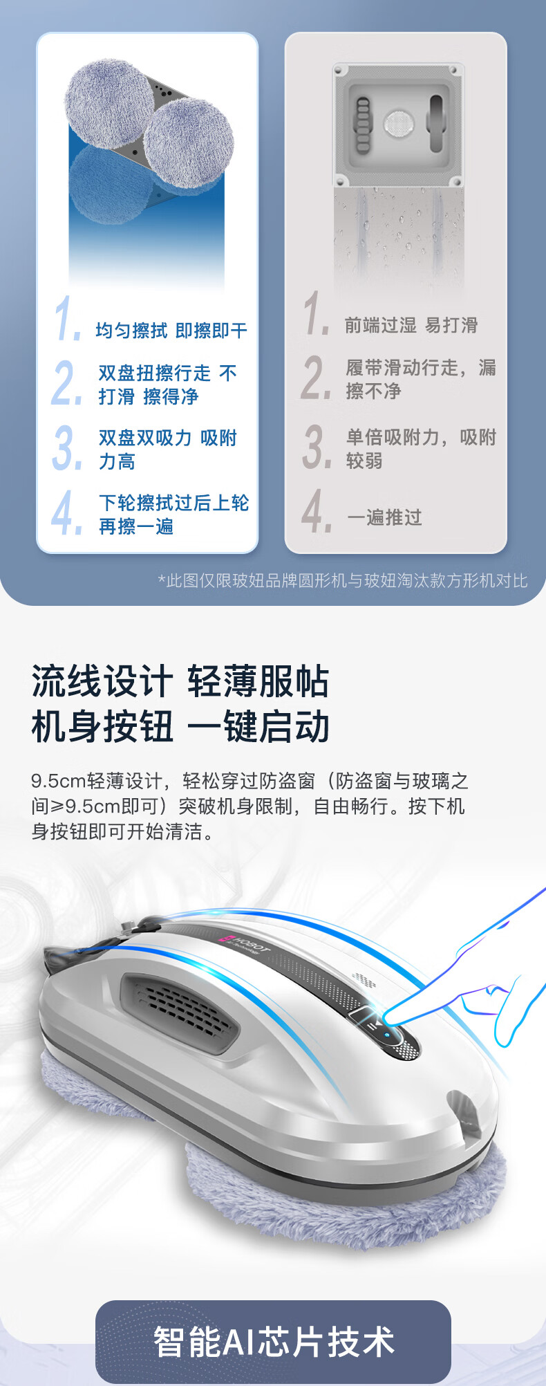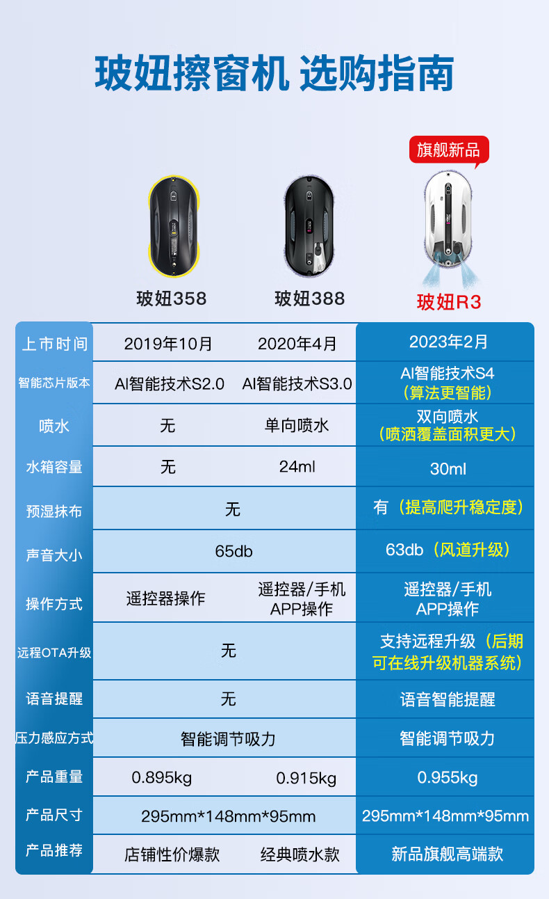 玻妞(HOBOT)全自动家用双向喷水擦窗机器人波妞擦玻璃机器人 干湿两用擦窗神器 玻妞R3