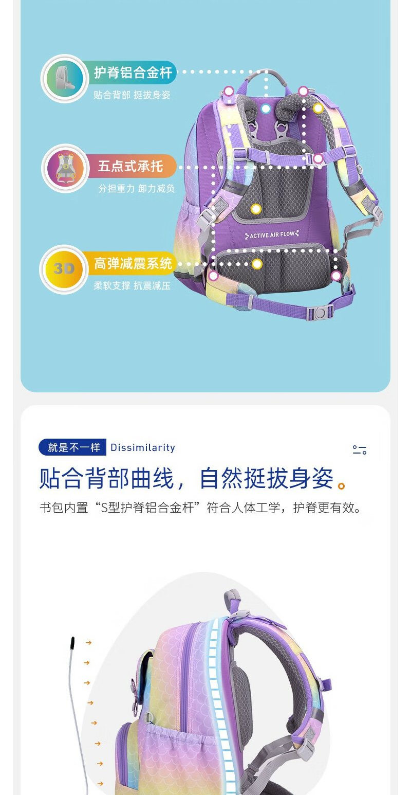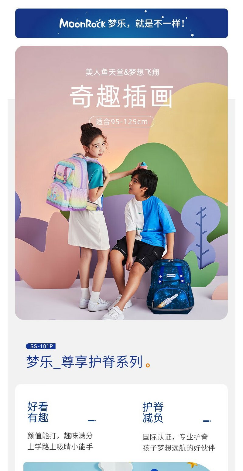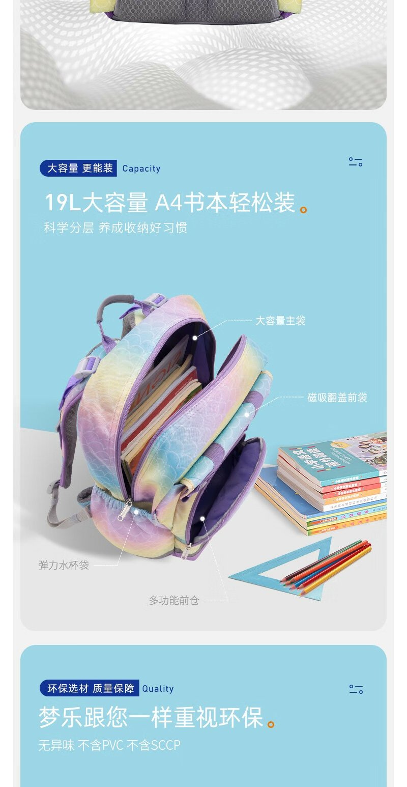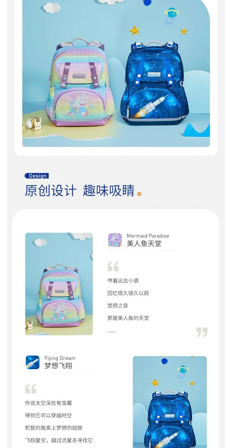 【护童】B座8F | 梦乐(MoonRock)儿童小学生书包轻便护脊减负透气防泼水一二三年级背包开学礼物 彩虹色(美人鱼天堂)