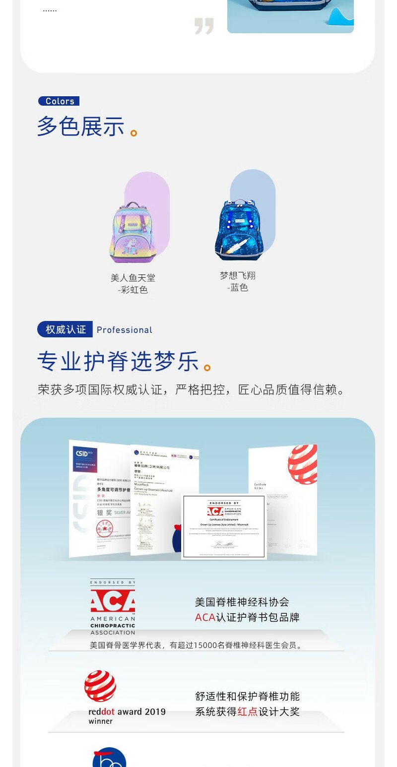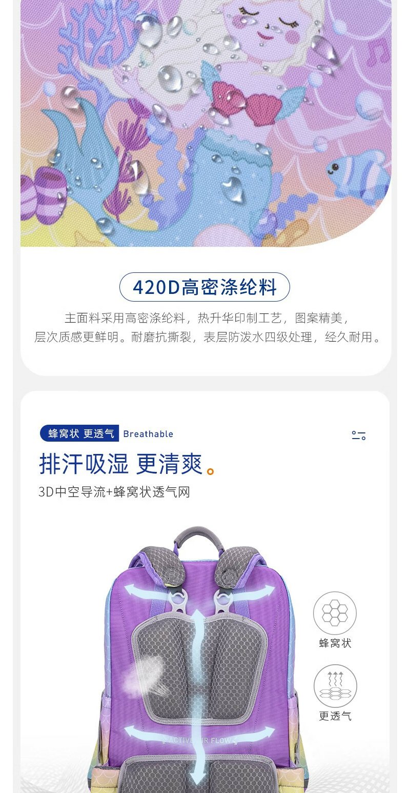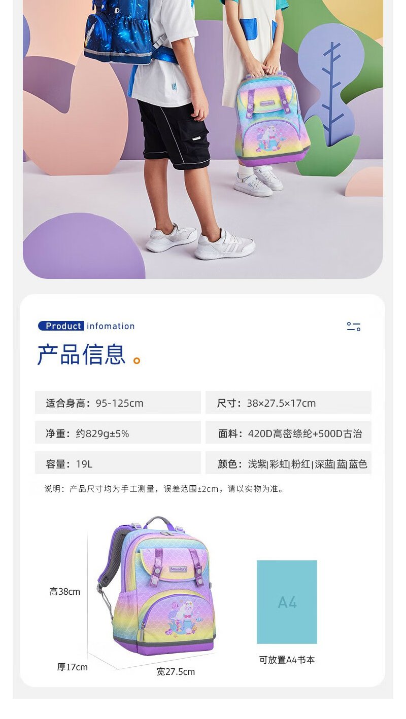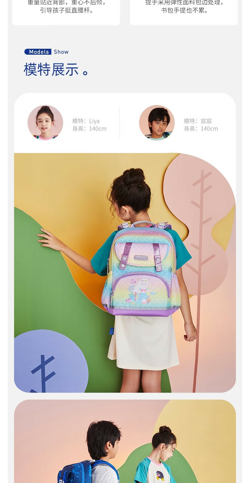 【护童】B座8F | 梦乐(MoonRock)儿童小学生书包轻便护脊减负透气防泼水一二三年级背包开学礼物 彩虹色(美人鱼天堂)