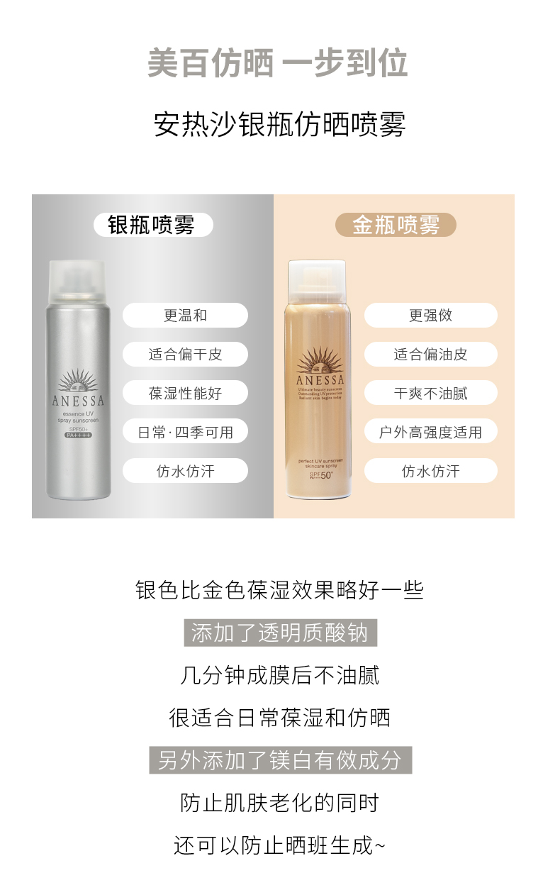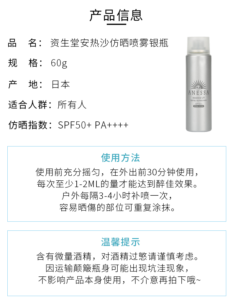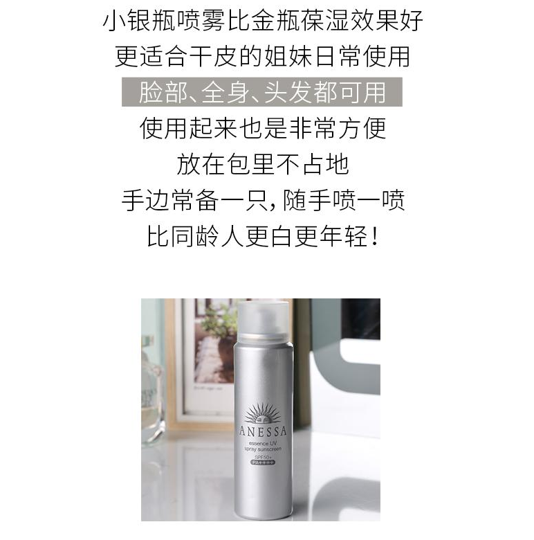 【爆款超低价预售 急单慎拍】日本资生堂ANESSA安热沙防晒耐晒霜 安耐晒喷雾银瓶装60g 银色