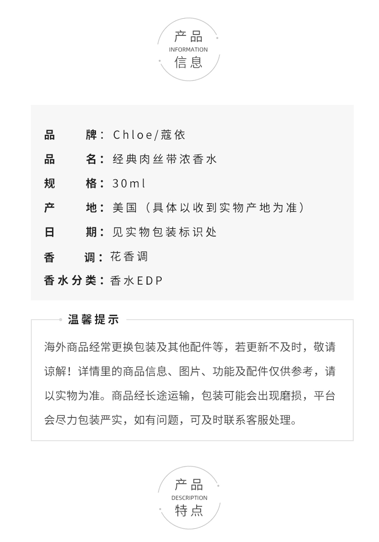 Chloe蔻依女士 浓香水 同名肉丝带香水女士香水EDP30ml/50ml 送香水礼品袋【CDF】