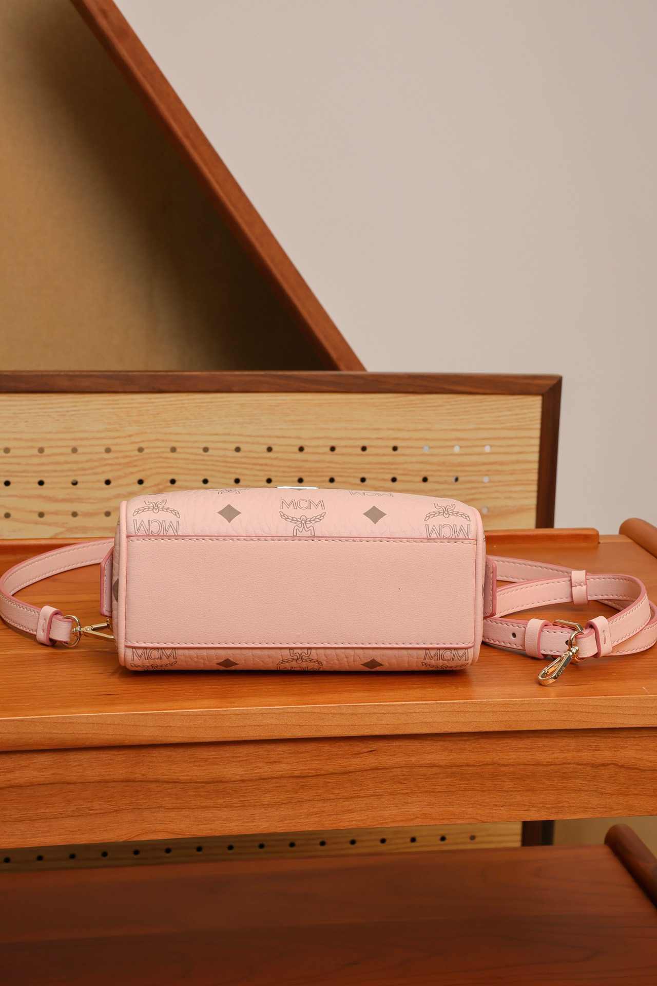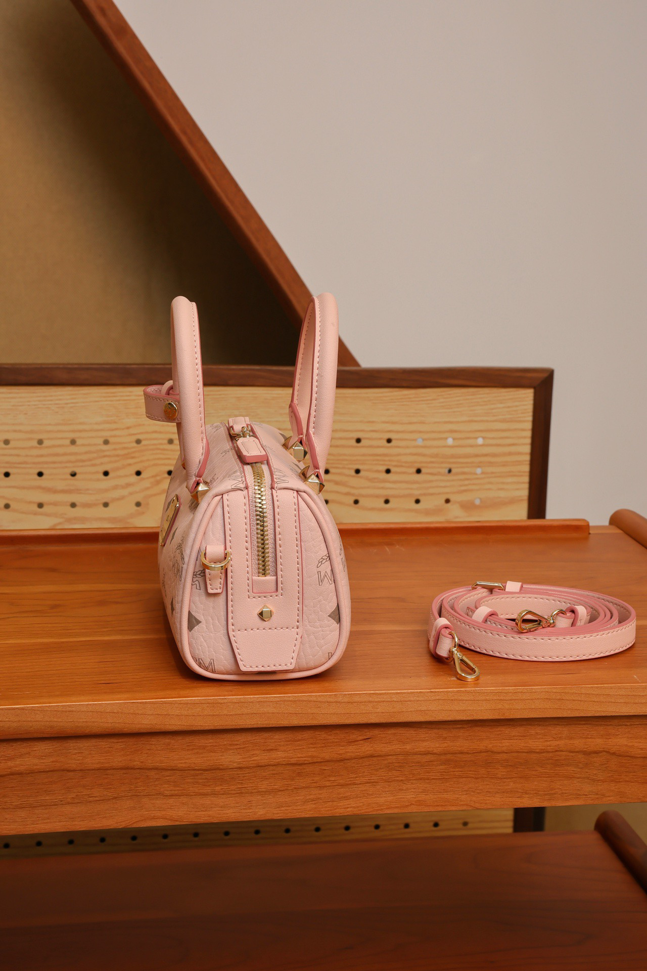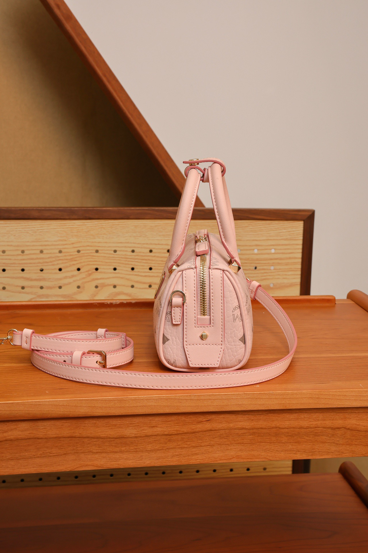 秋冬特惠💰760 原单MCM 原厂皮 樱花粉迷你𝗠𝗶𝗻𝗶波士顿枕头包MWBAASE03CO001 老花满印 🉑️单肩🉑️斜挎🉑️手拧 这款mini波士顿包