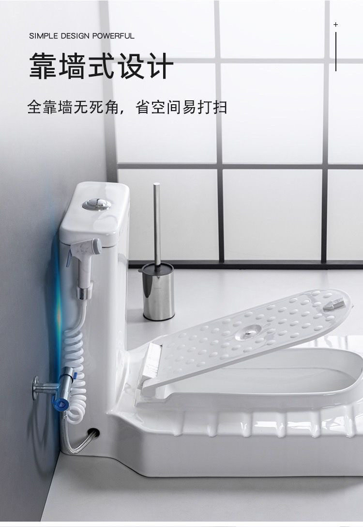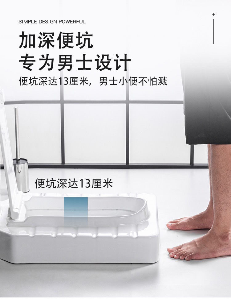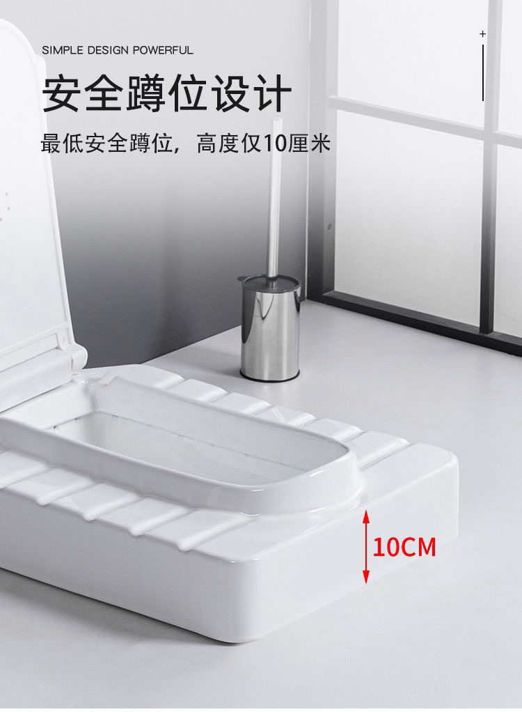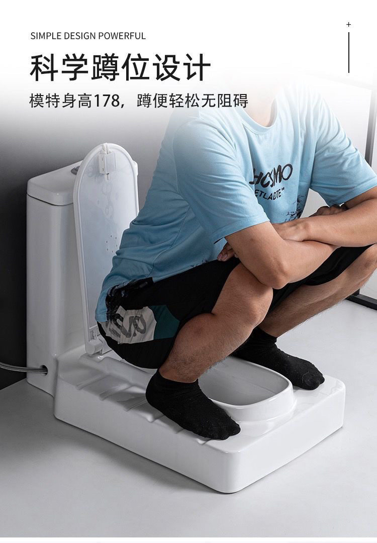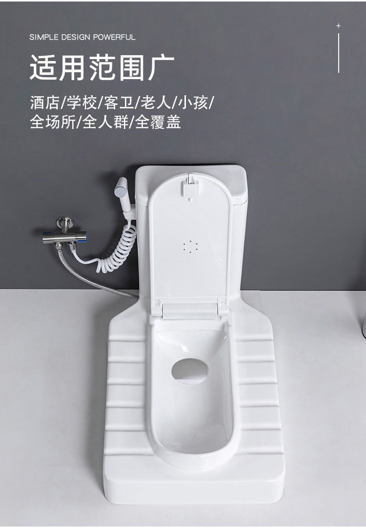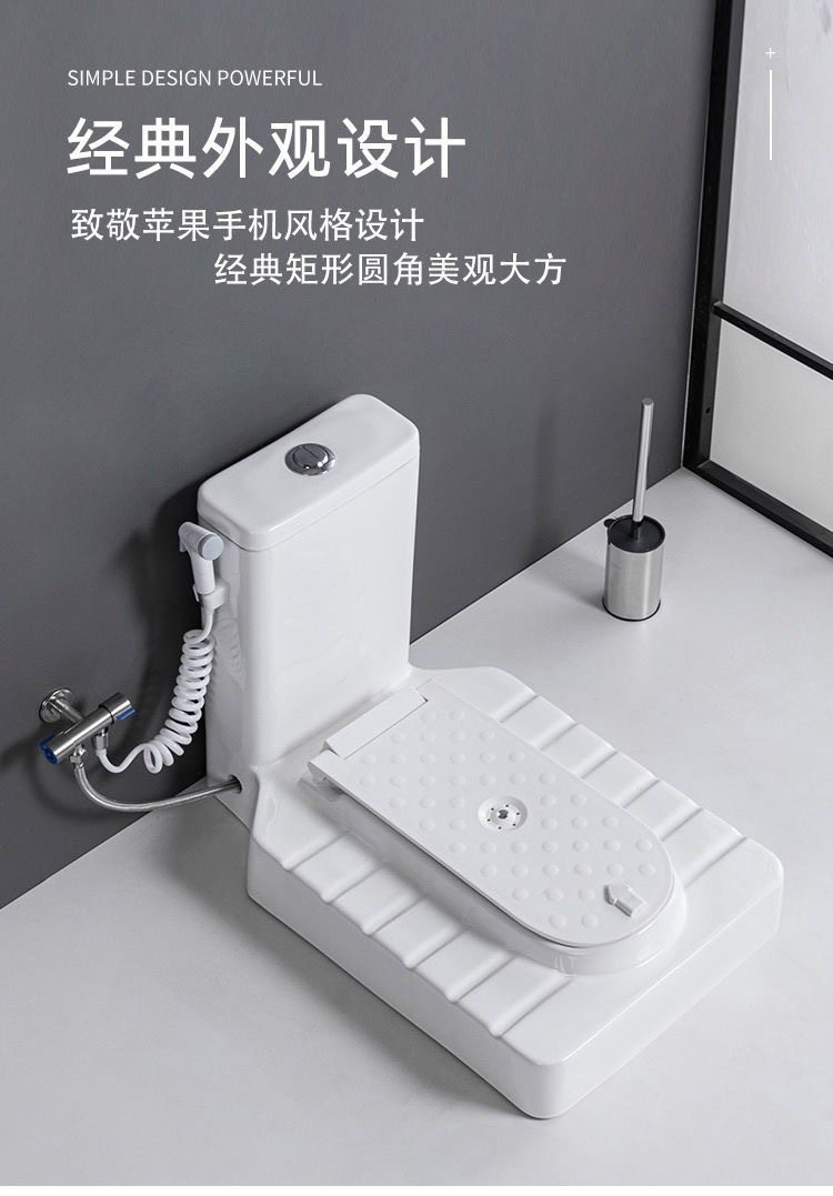 一体免蹲坑便器蹲厕家用蹲陶瓷防臭免砌改坐便器马桶挖坑台式明装