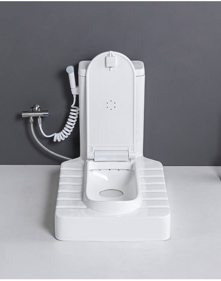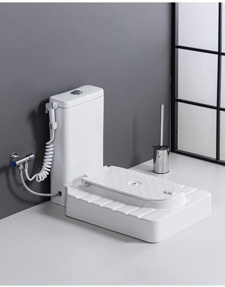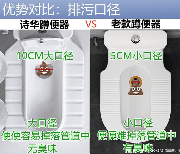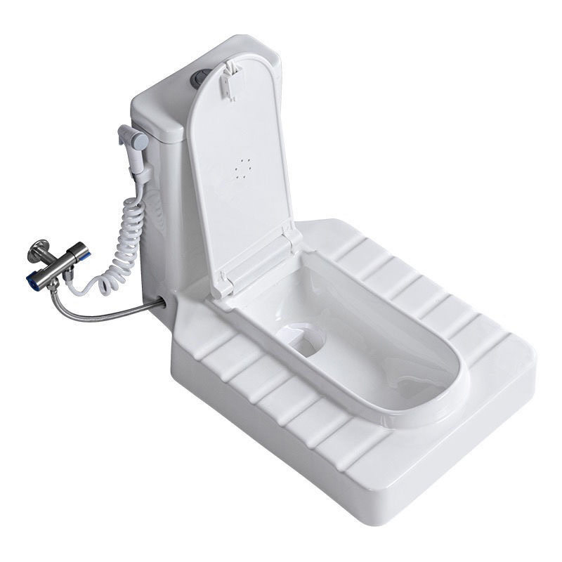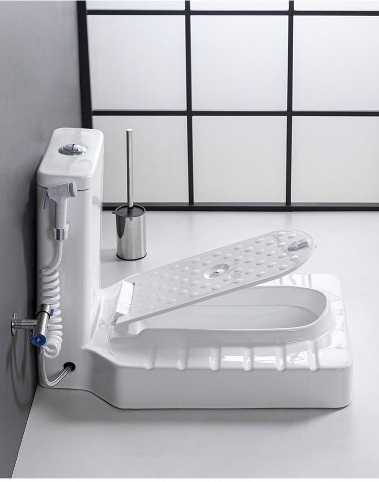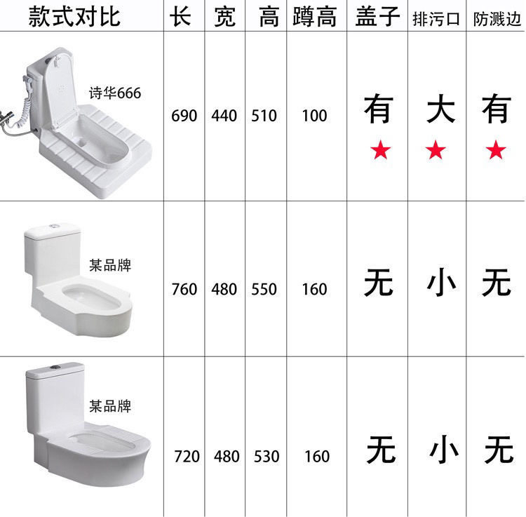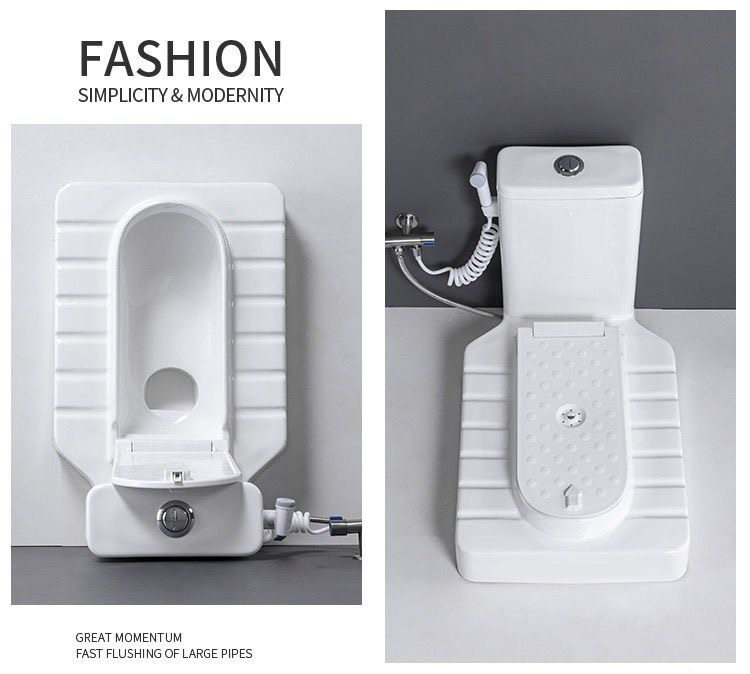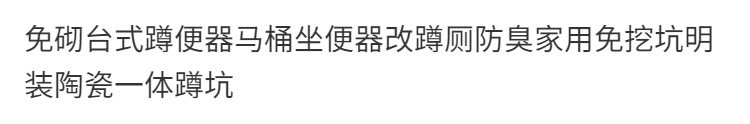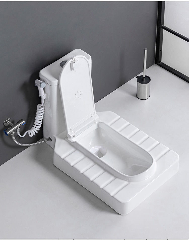 一体免蹲坑便器蹲厕家用蹲陶瓷防臭免砌改坐便器马桶挖坑台式明装