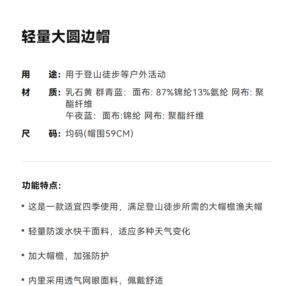 KAILAS凯乐石 大圆边帽 KF2521201【Z】