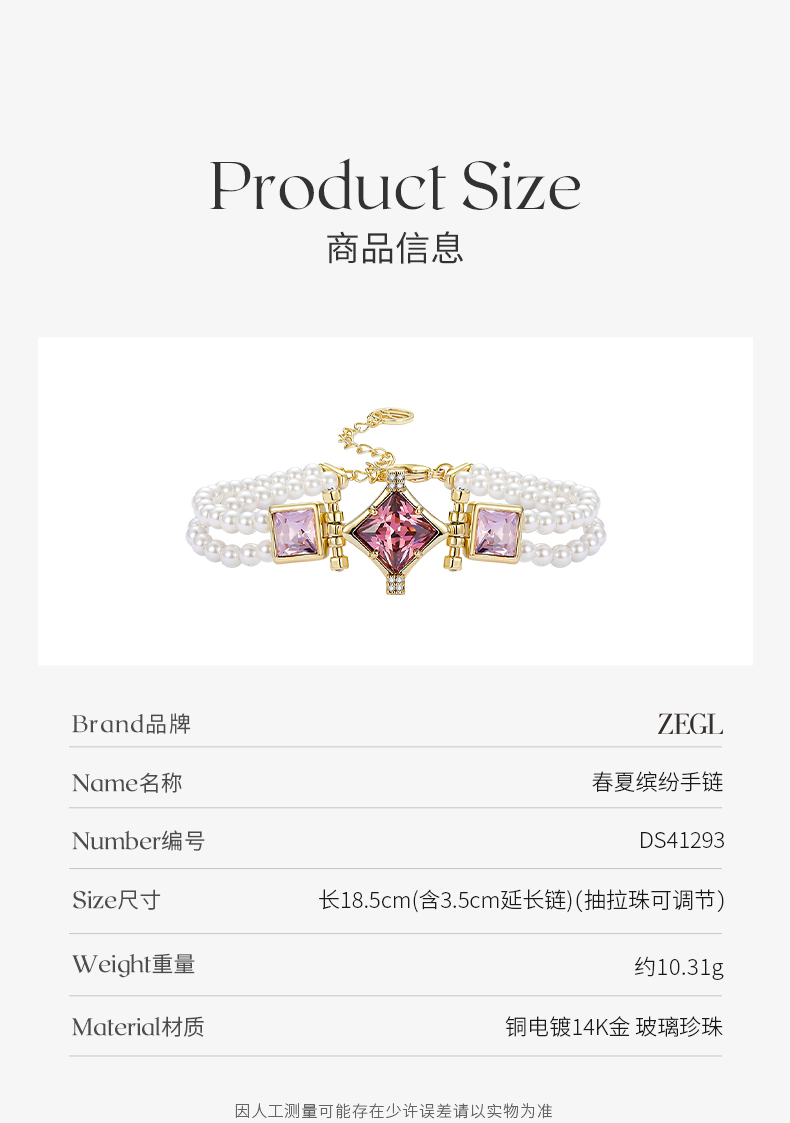 ZEGL设计师春夏缤纷系列复古几何手链女轻奢小众精致人造珍珠手饰