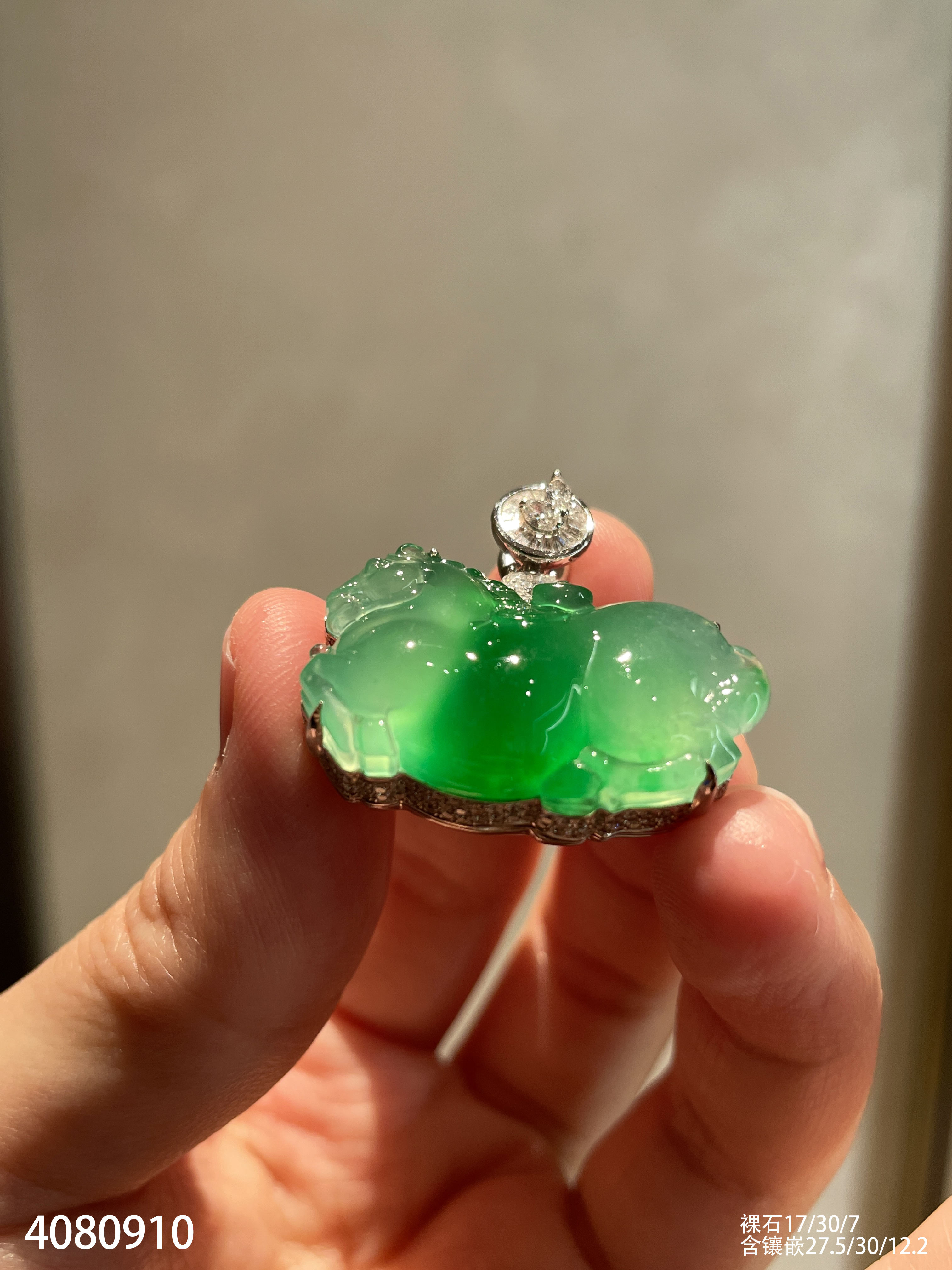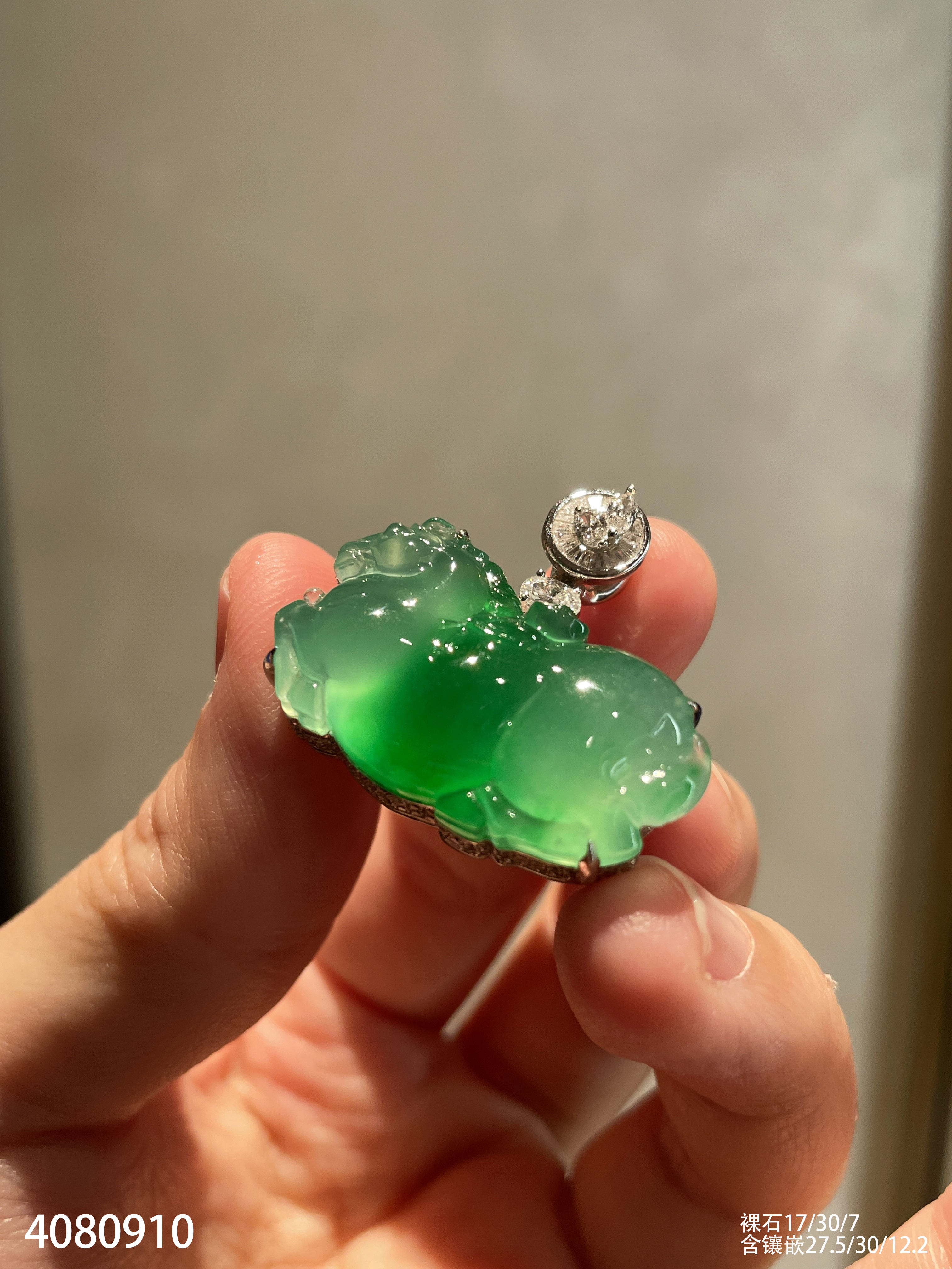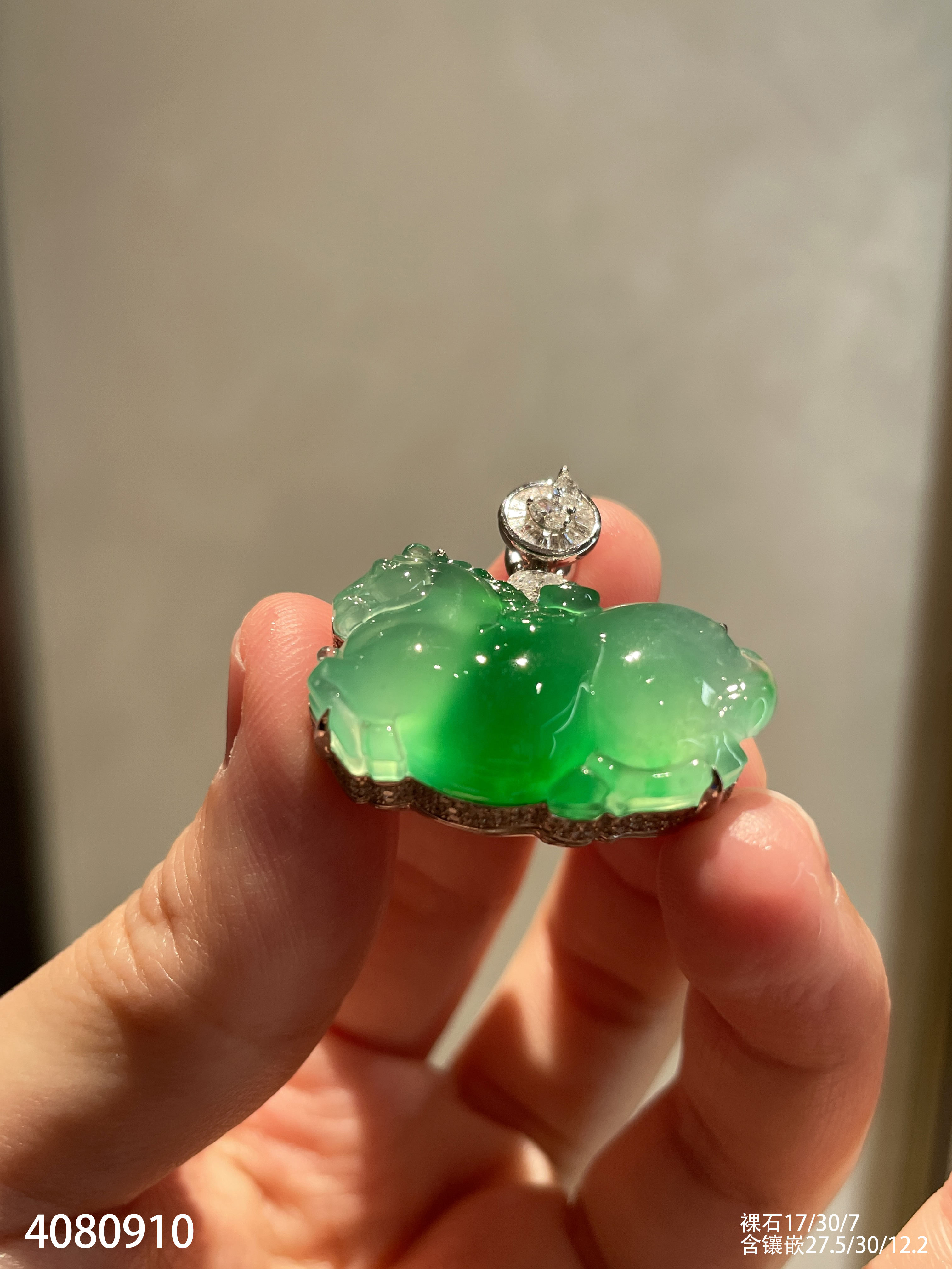 高冰艳绿马上有钱吊坠【4080910】具体价格微信咨询