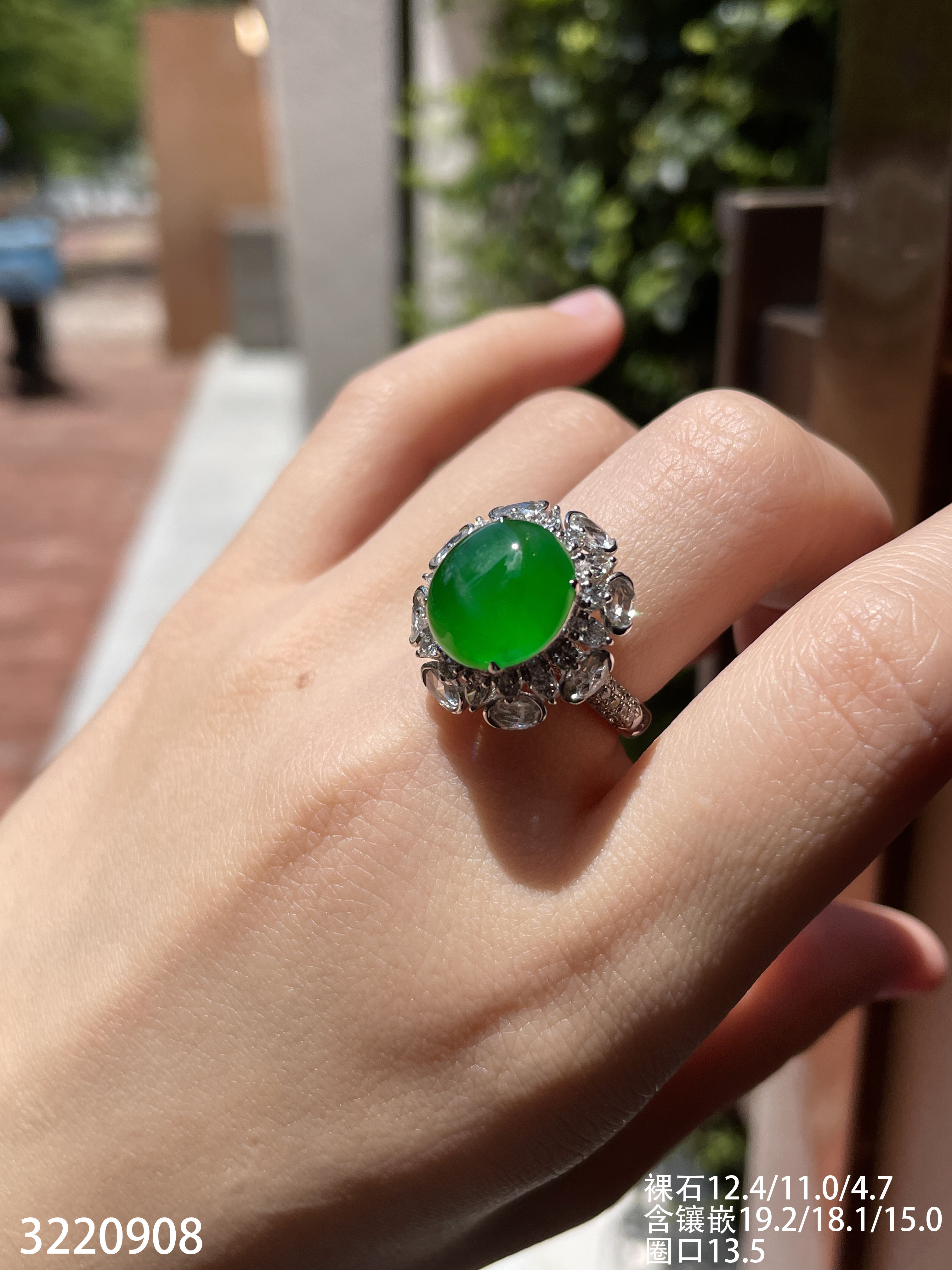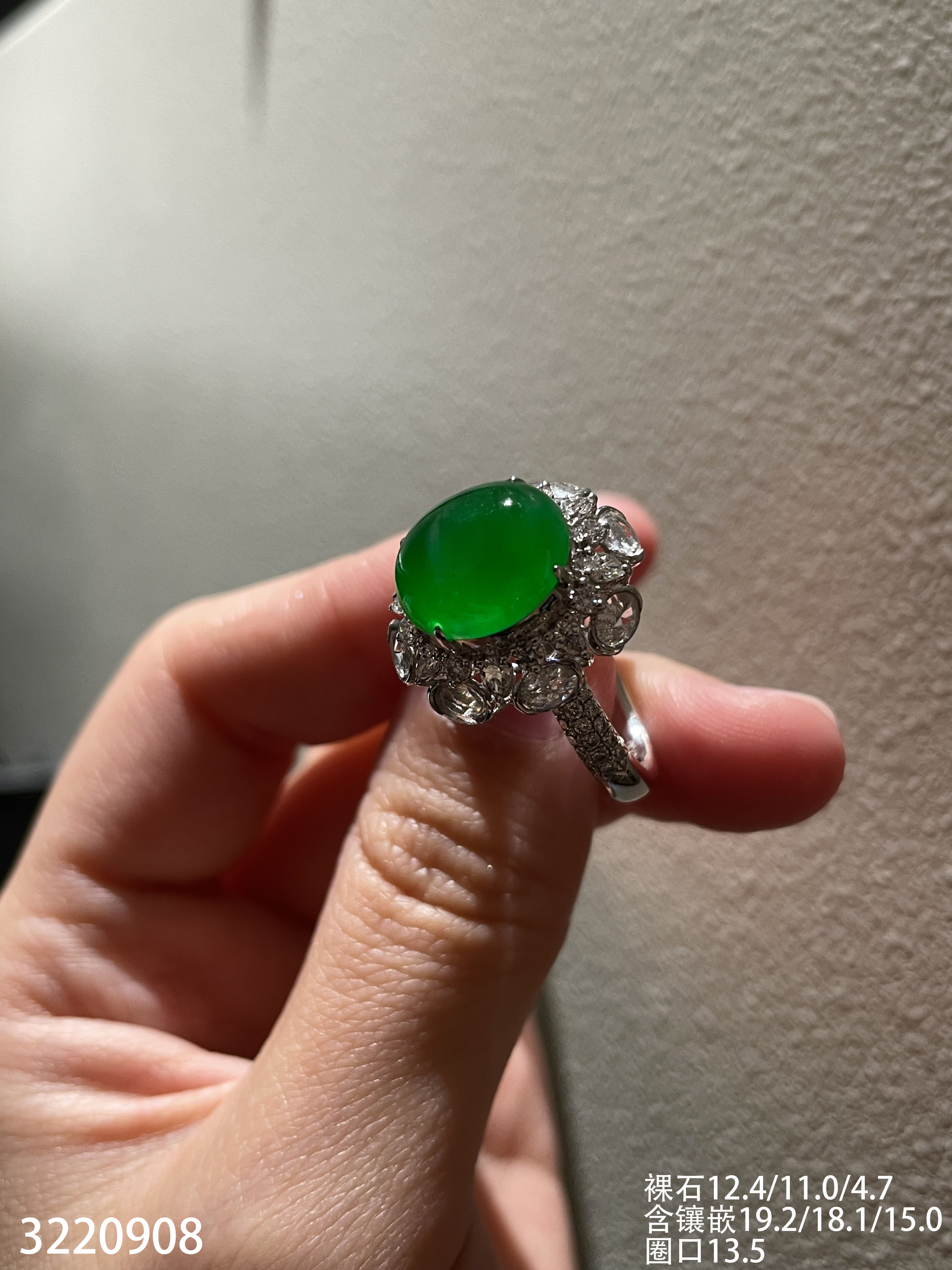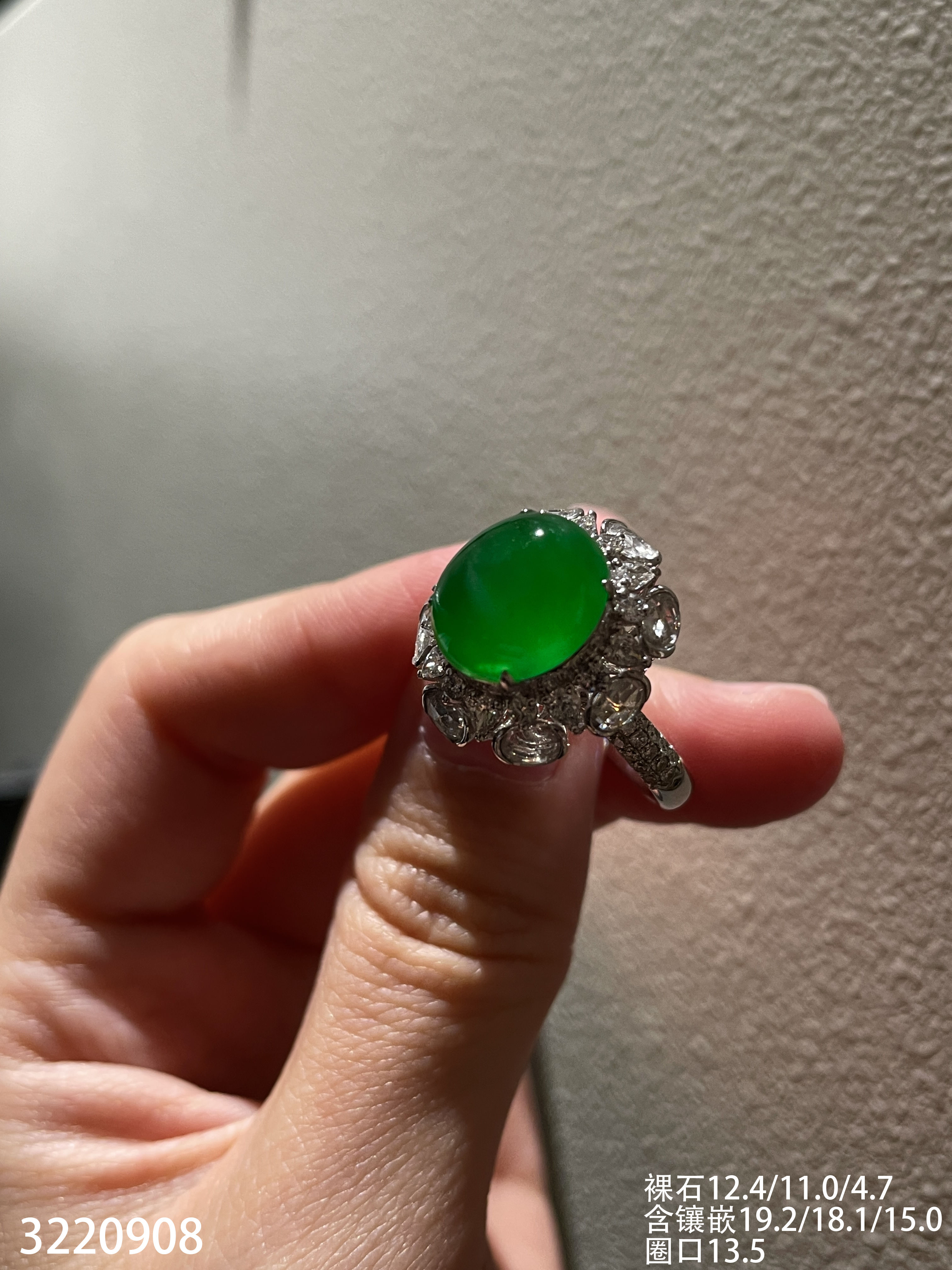 老坑高冰艳绿蛋面戒指【3220908】具体价格微信咨询