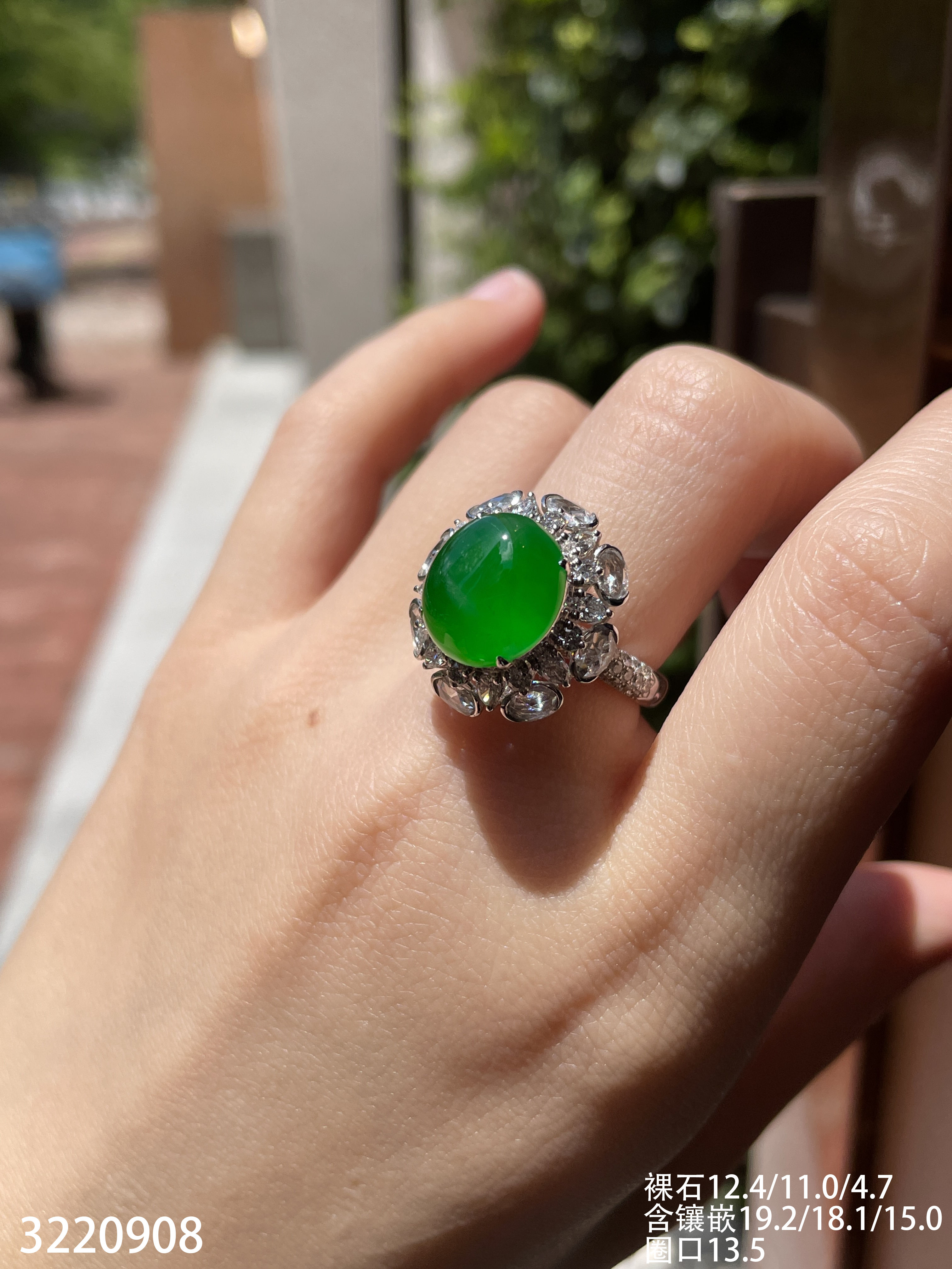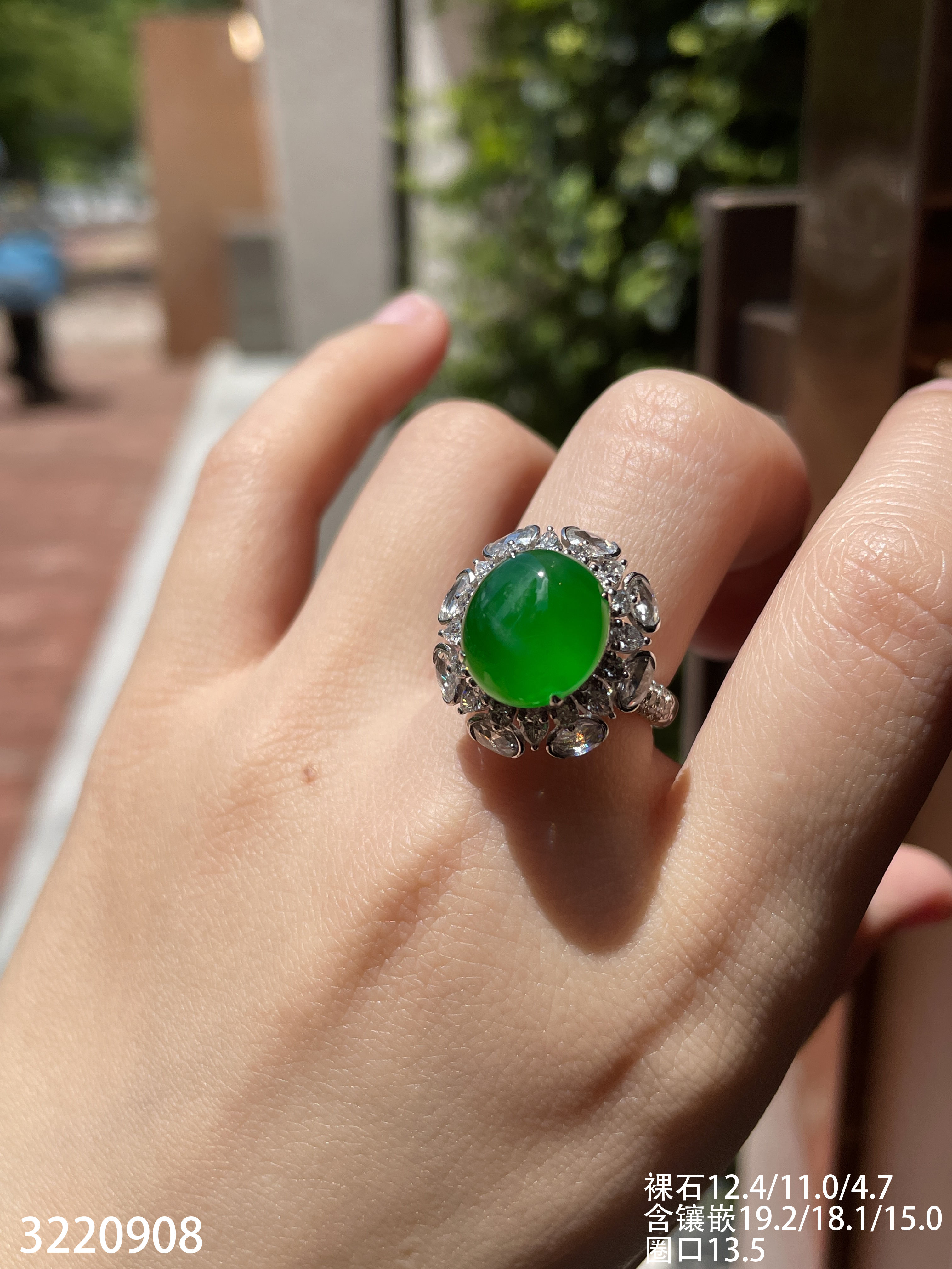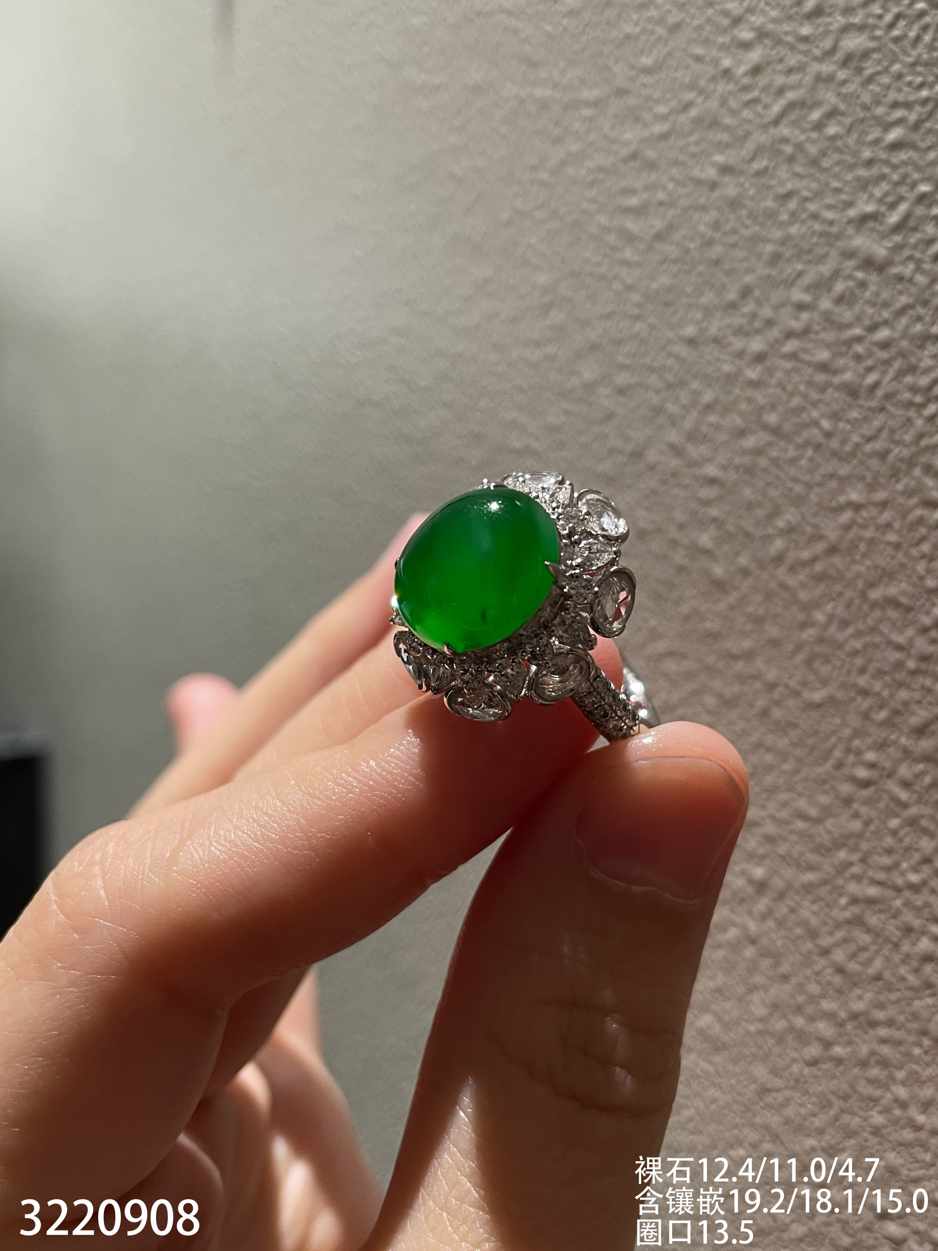 老坑高冰艳绿蛋面戒指【3220908】具体价格微信咨询