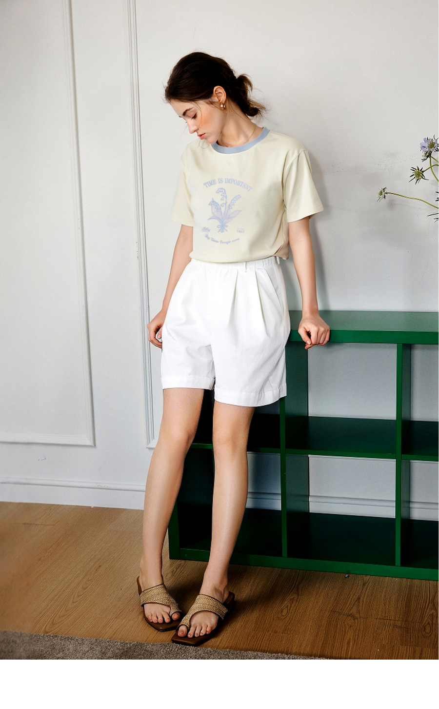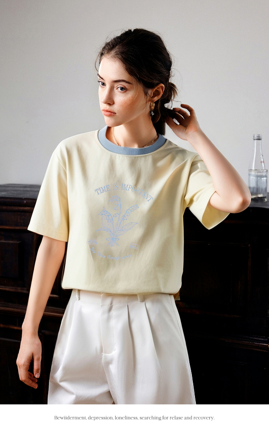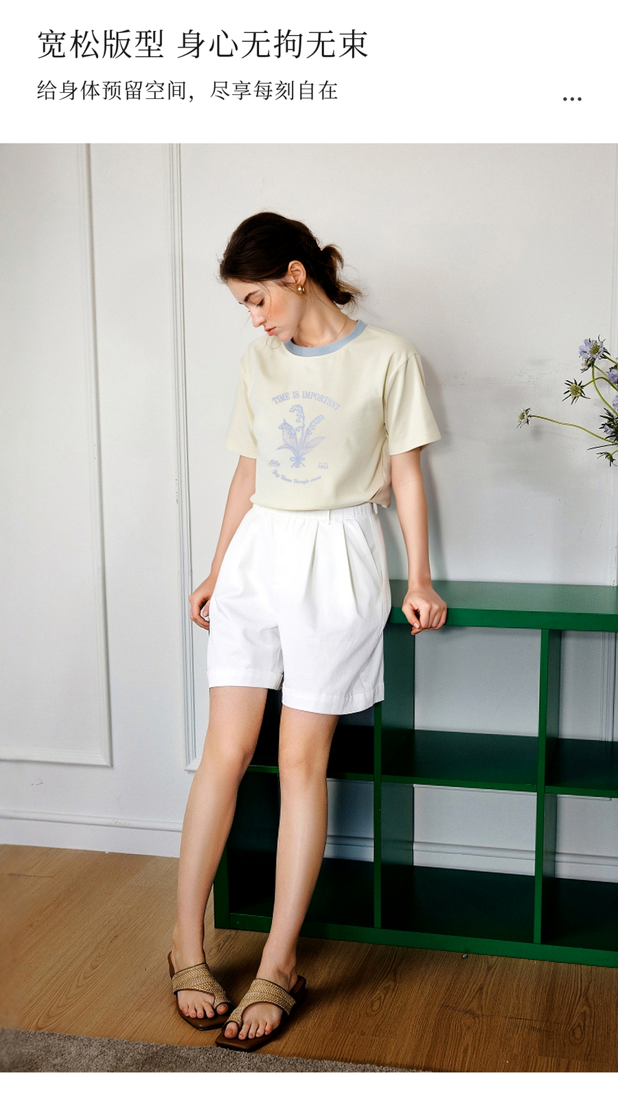 OLrain欧芮儿撞色印花图案宽松休闲T恤女夏季2025年新款短袖上衣