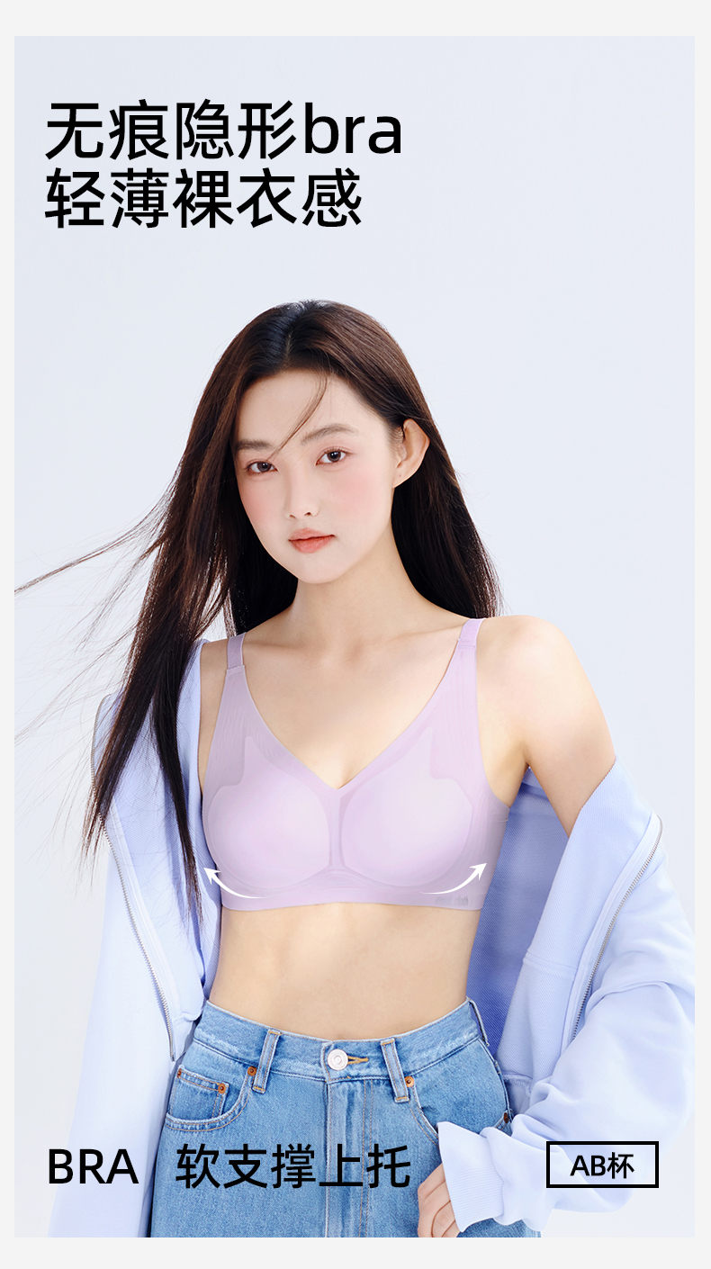 熳洁儿无痕光面内衣女半固定杯轻薄舒适文胸面膜布小凉风软支撑聚拢内衣23261529