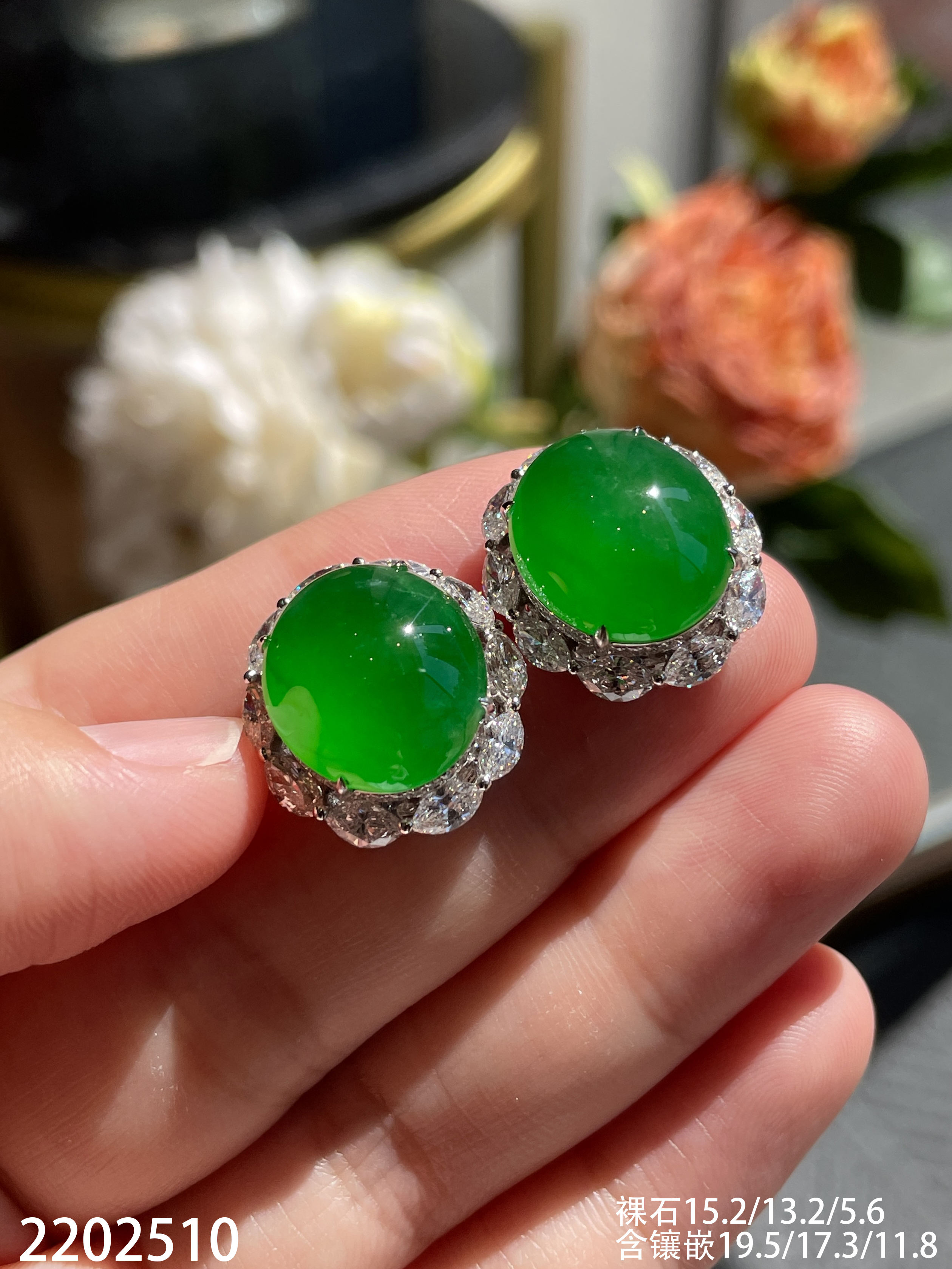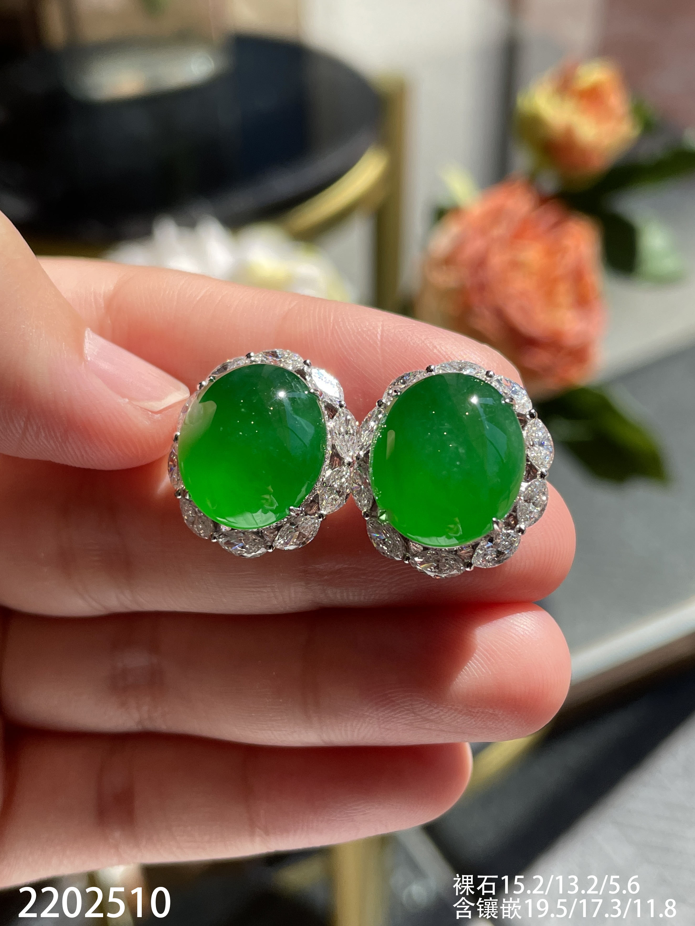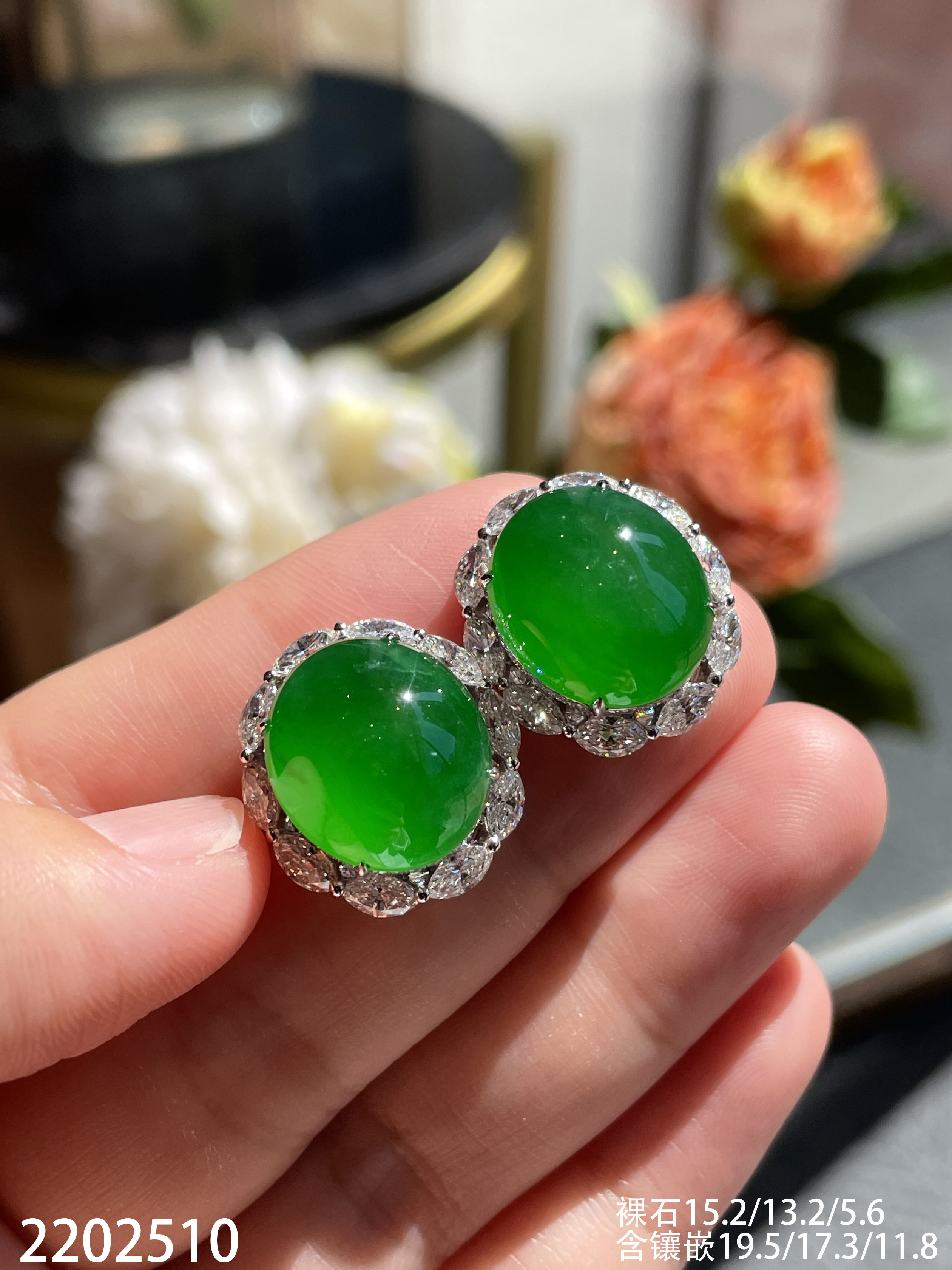 老坑帝王绿蛋面耳钉【2202510】具体价格微信咨询