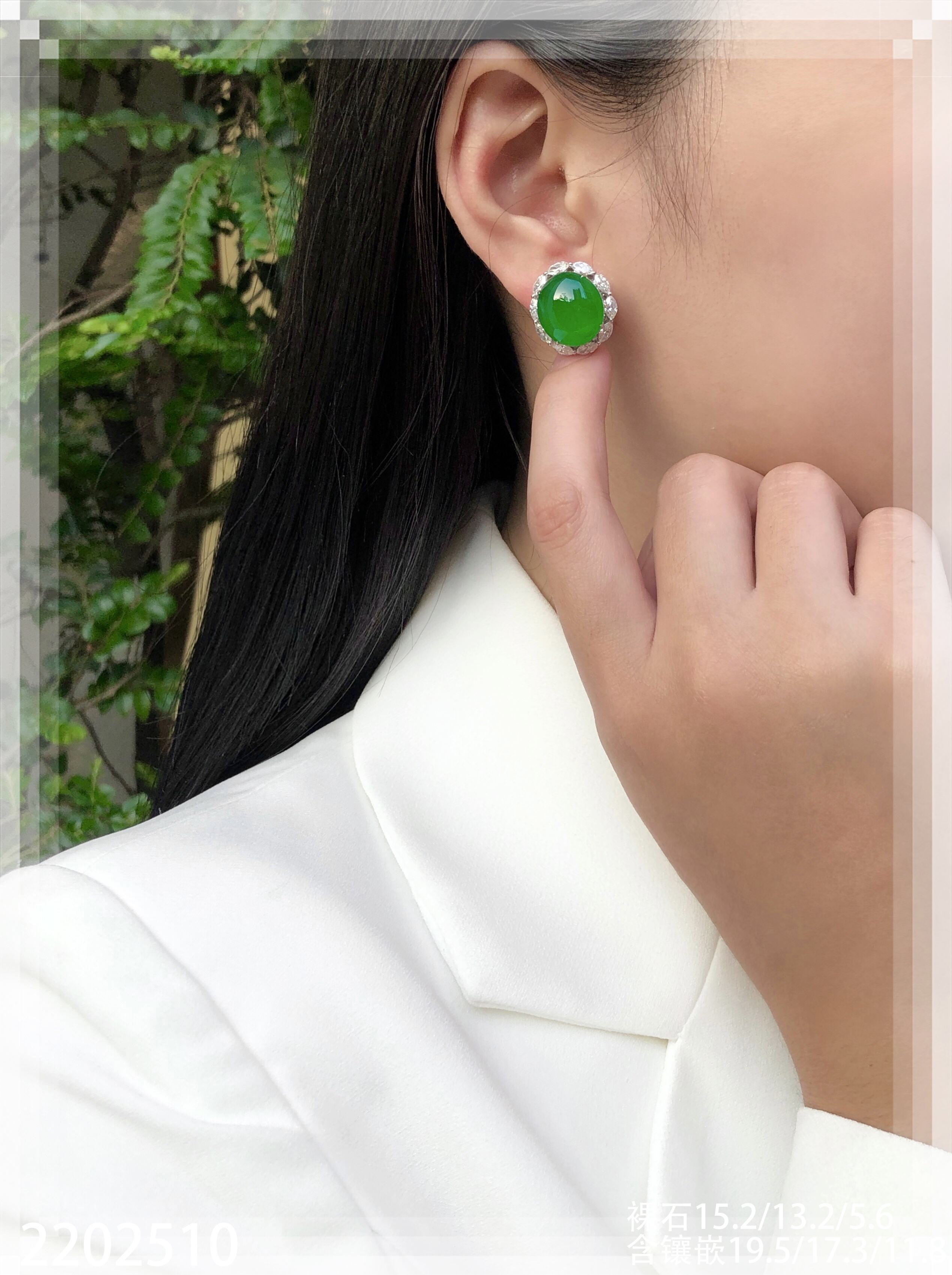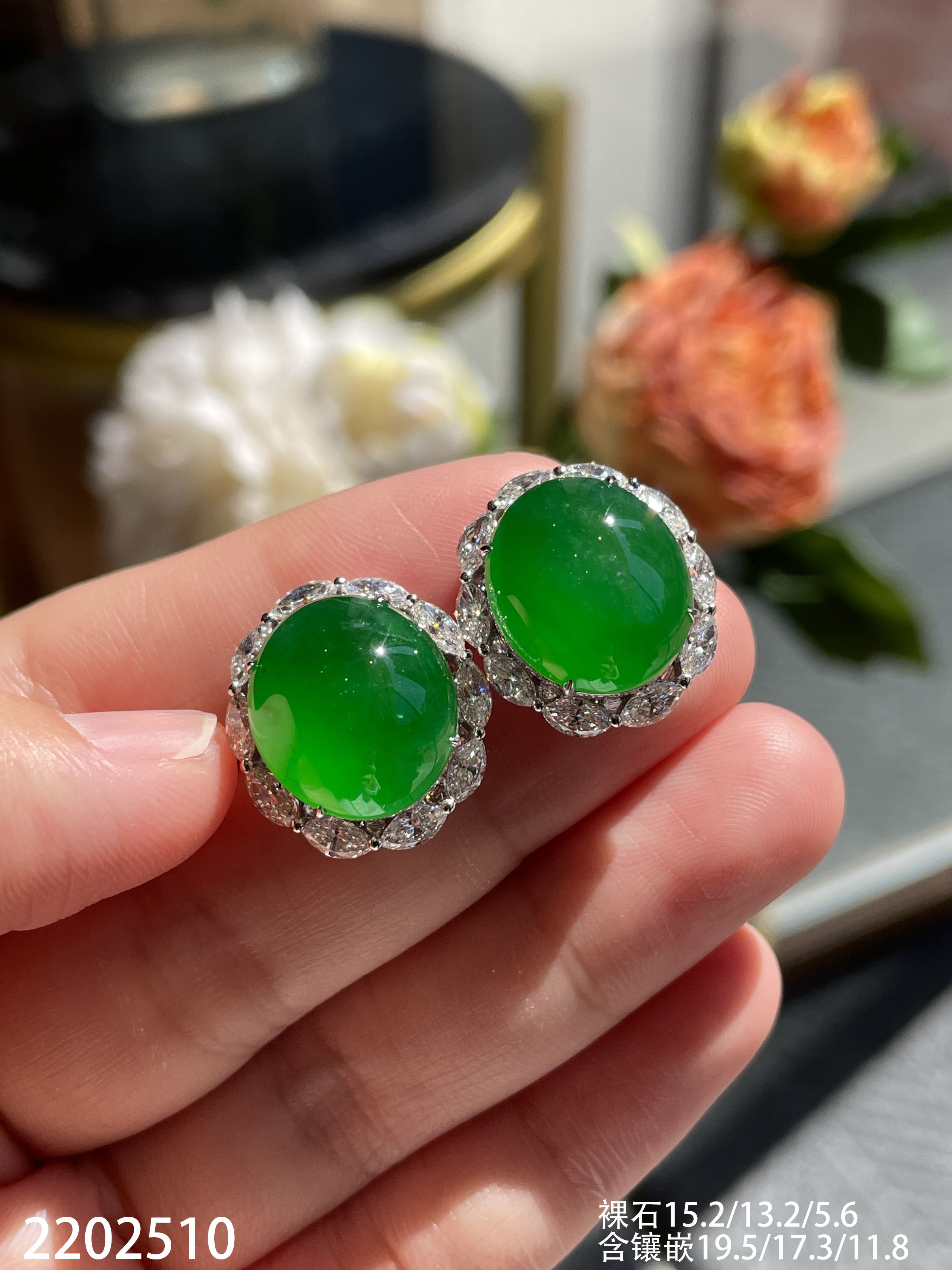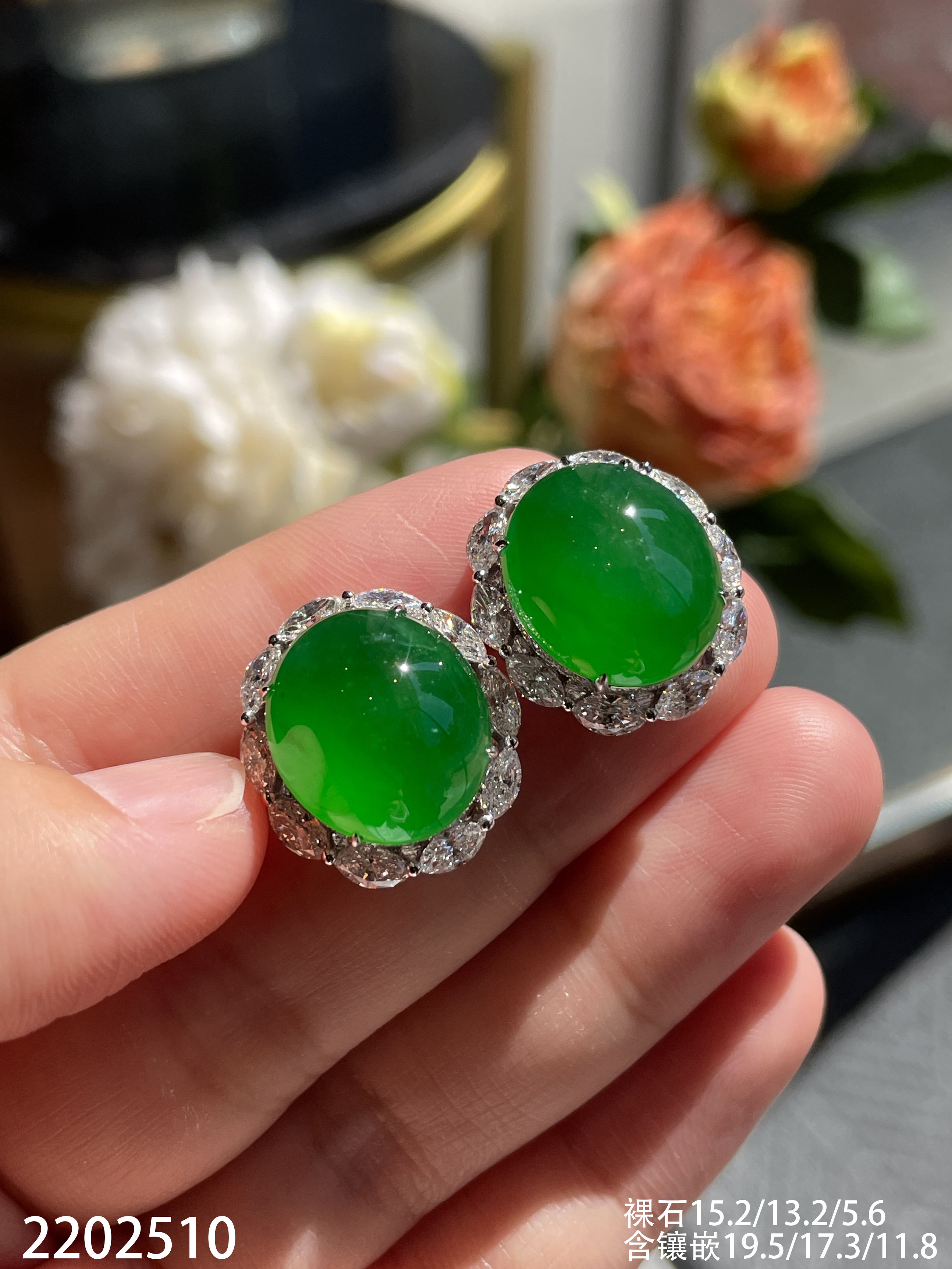老坑帝王绿蛋面耳钉【2202510】具体价格微信咨询