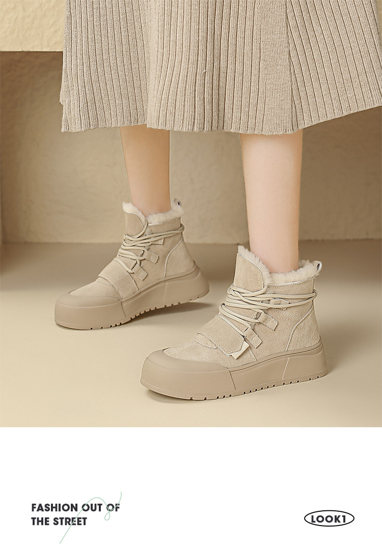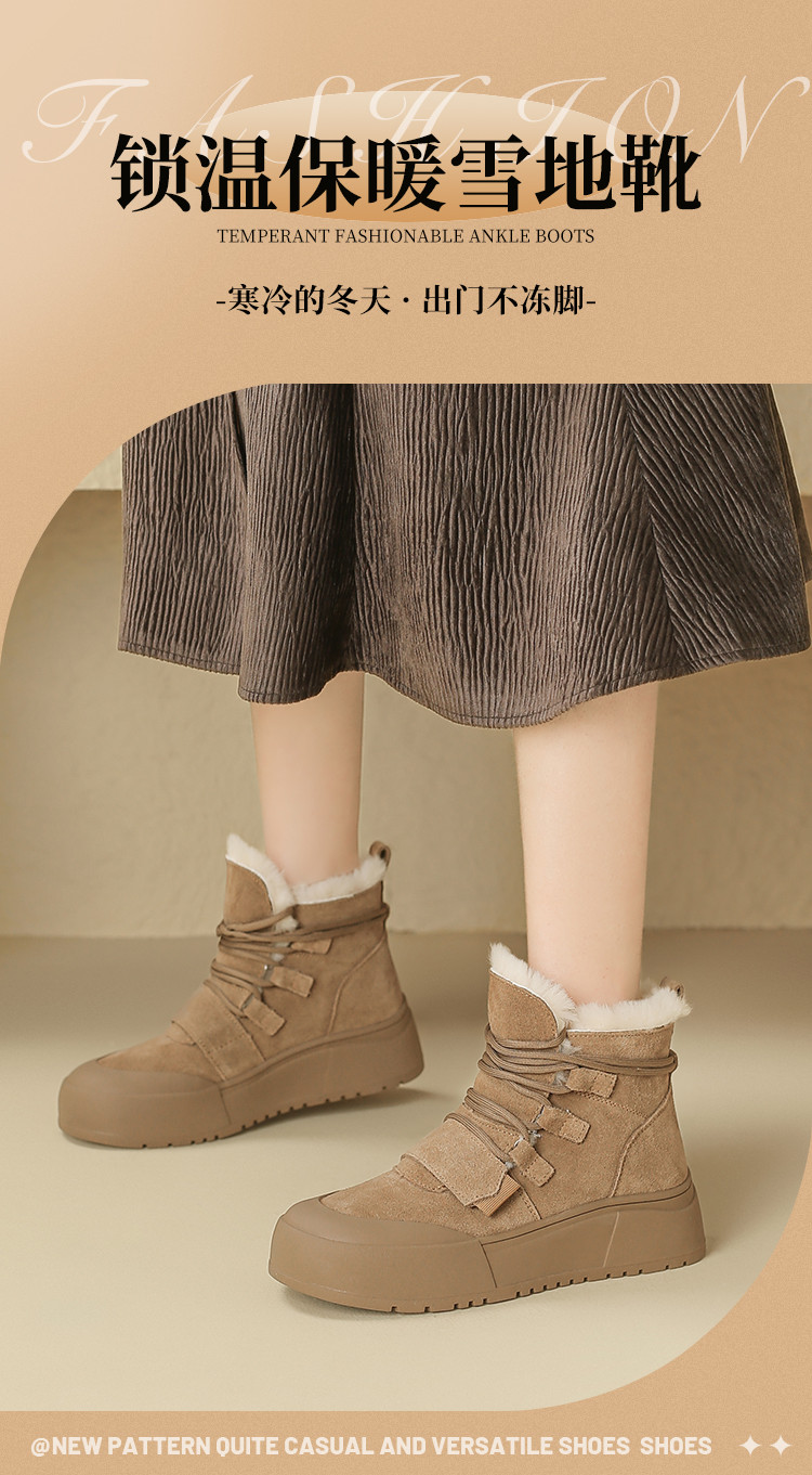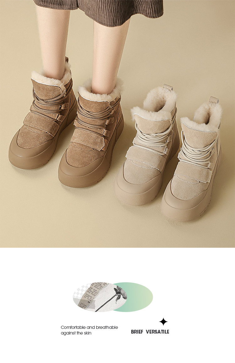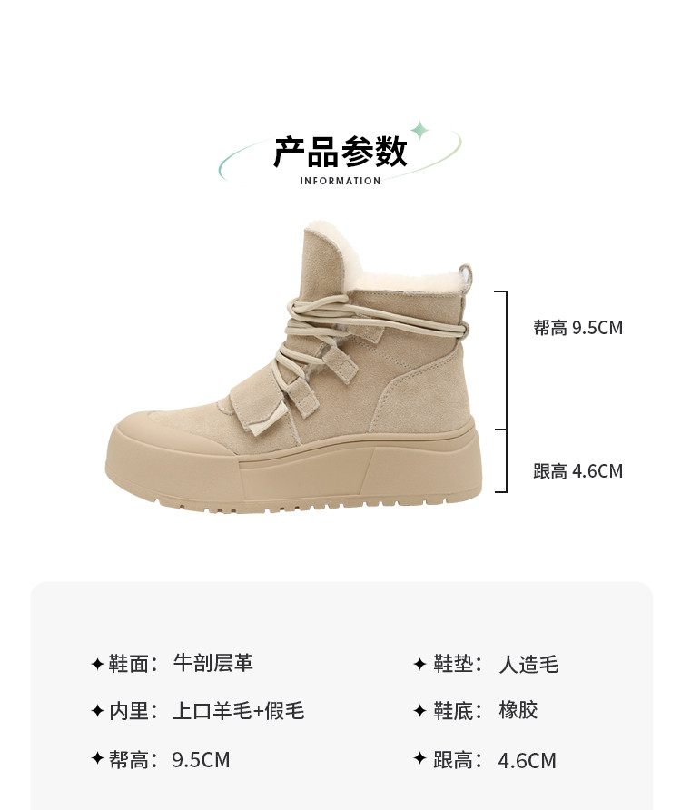 品质好货 | Safiya/索菲娅2023新款加绒绑带靴口羊毛雪地靴 SF3411A722