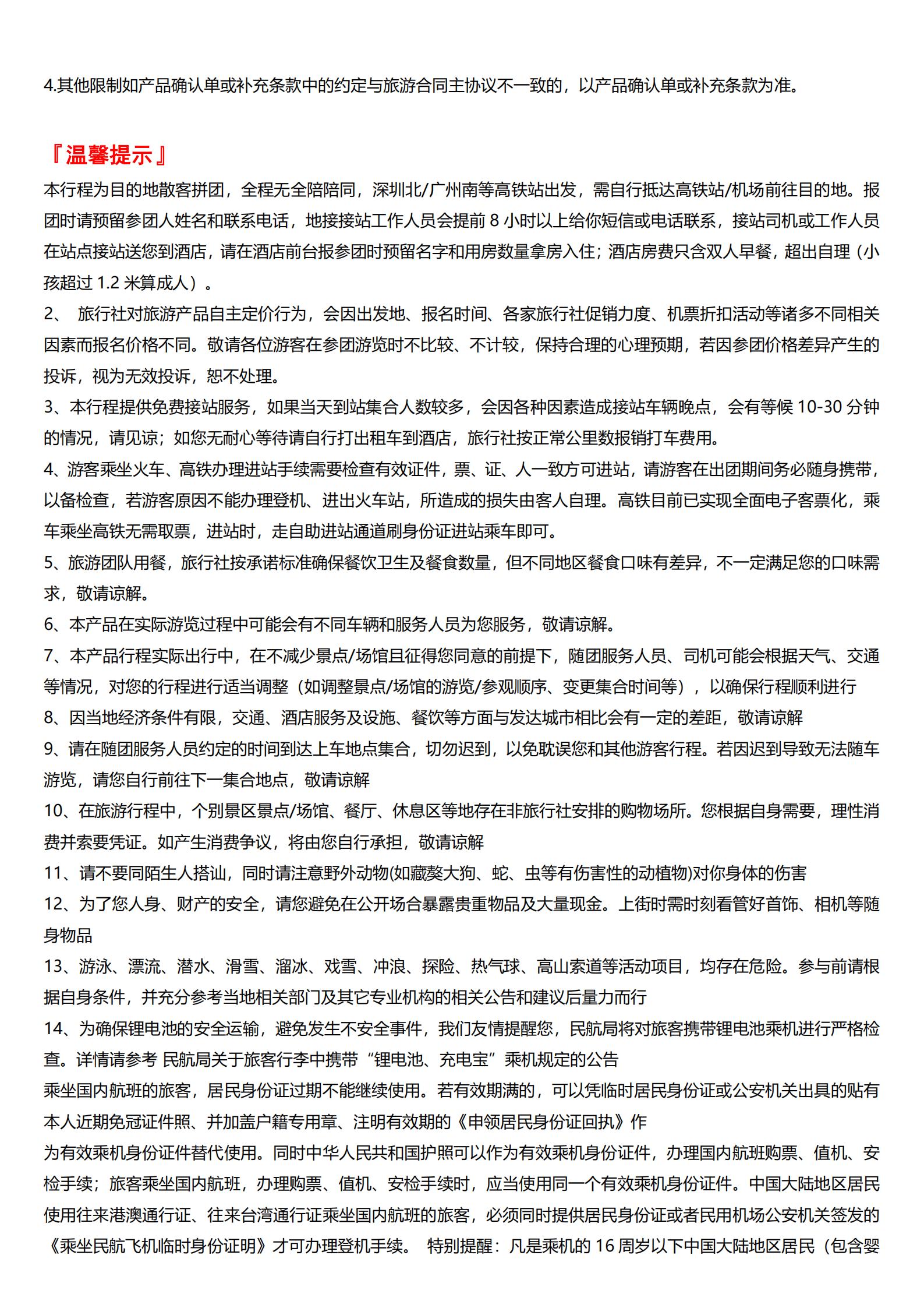 * 此行程非本社独立成团,均为与其他旅行社拼团出行。