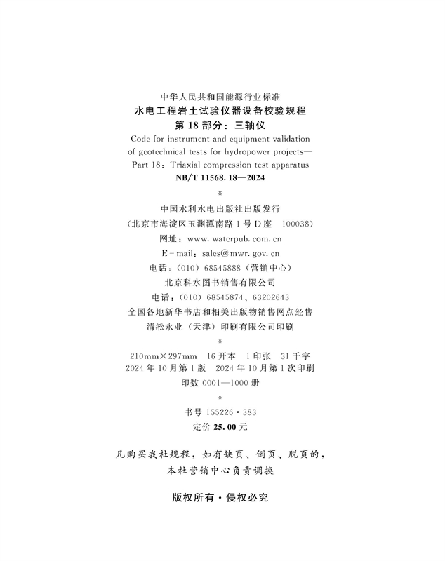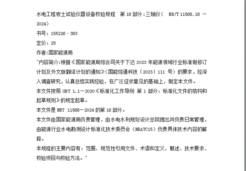 水电工程岩土试验仪器设备校验规程 第18部分:三轴仪( NB/T 11568.18 —2024)